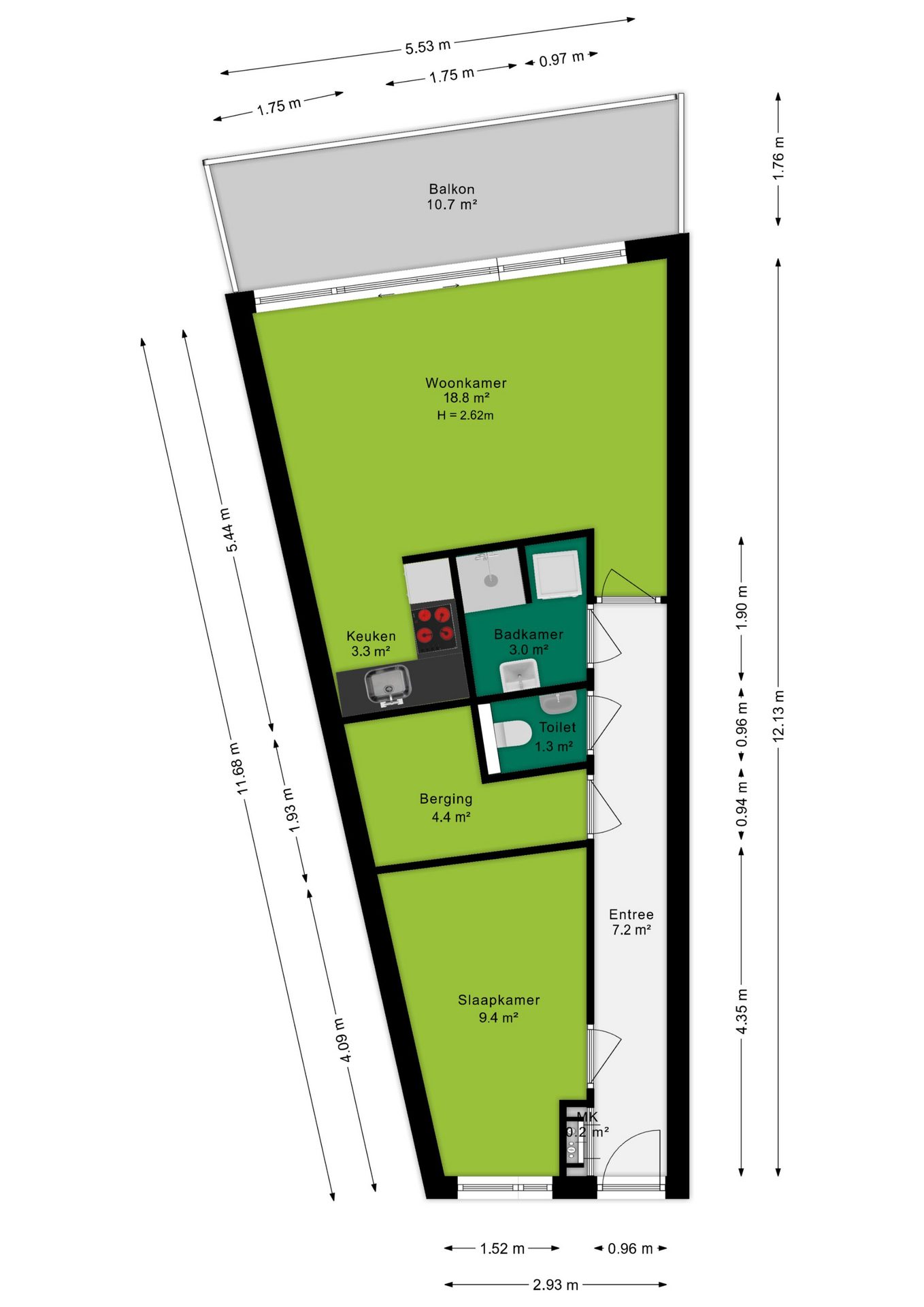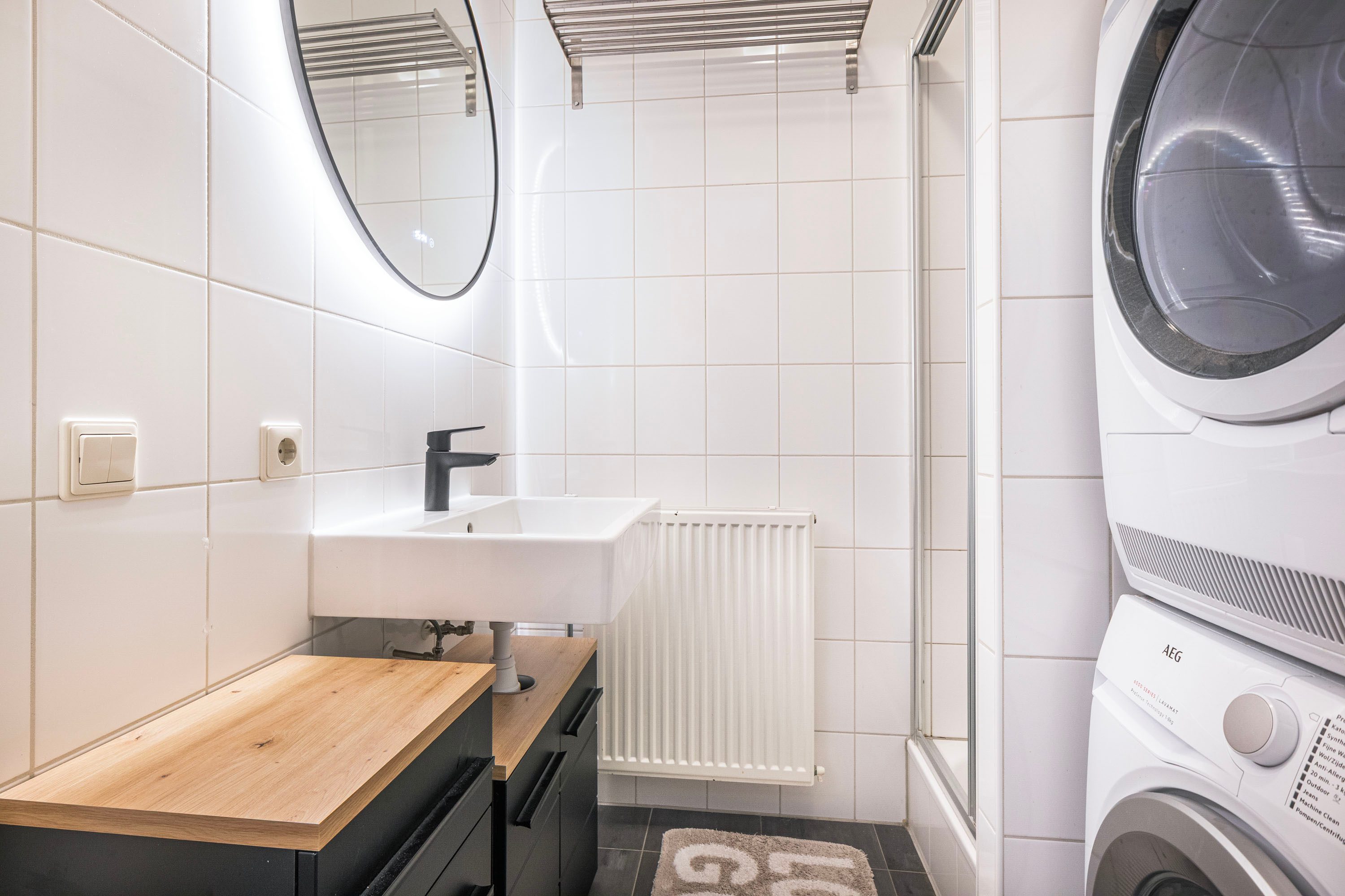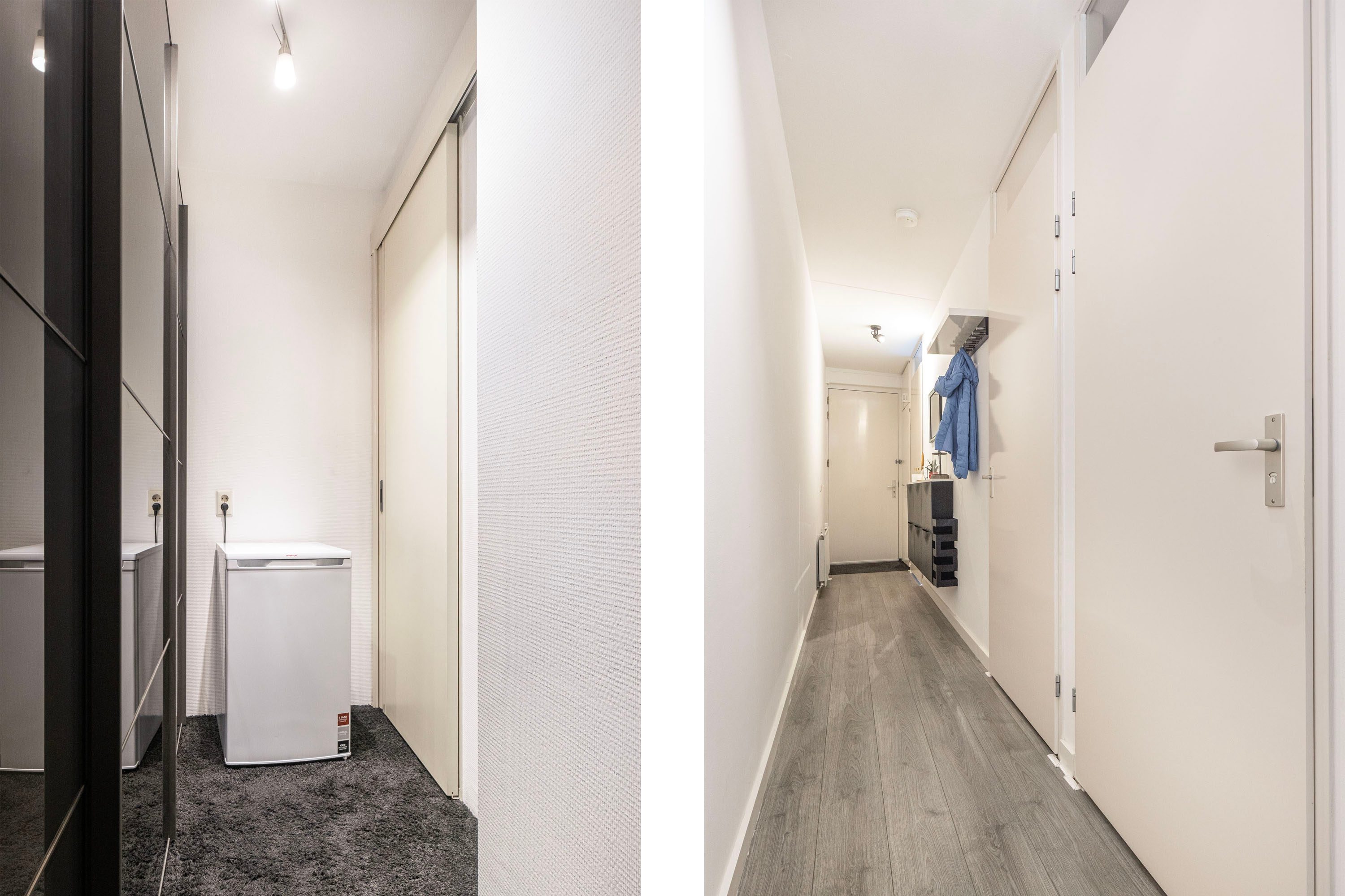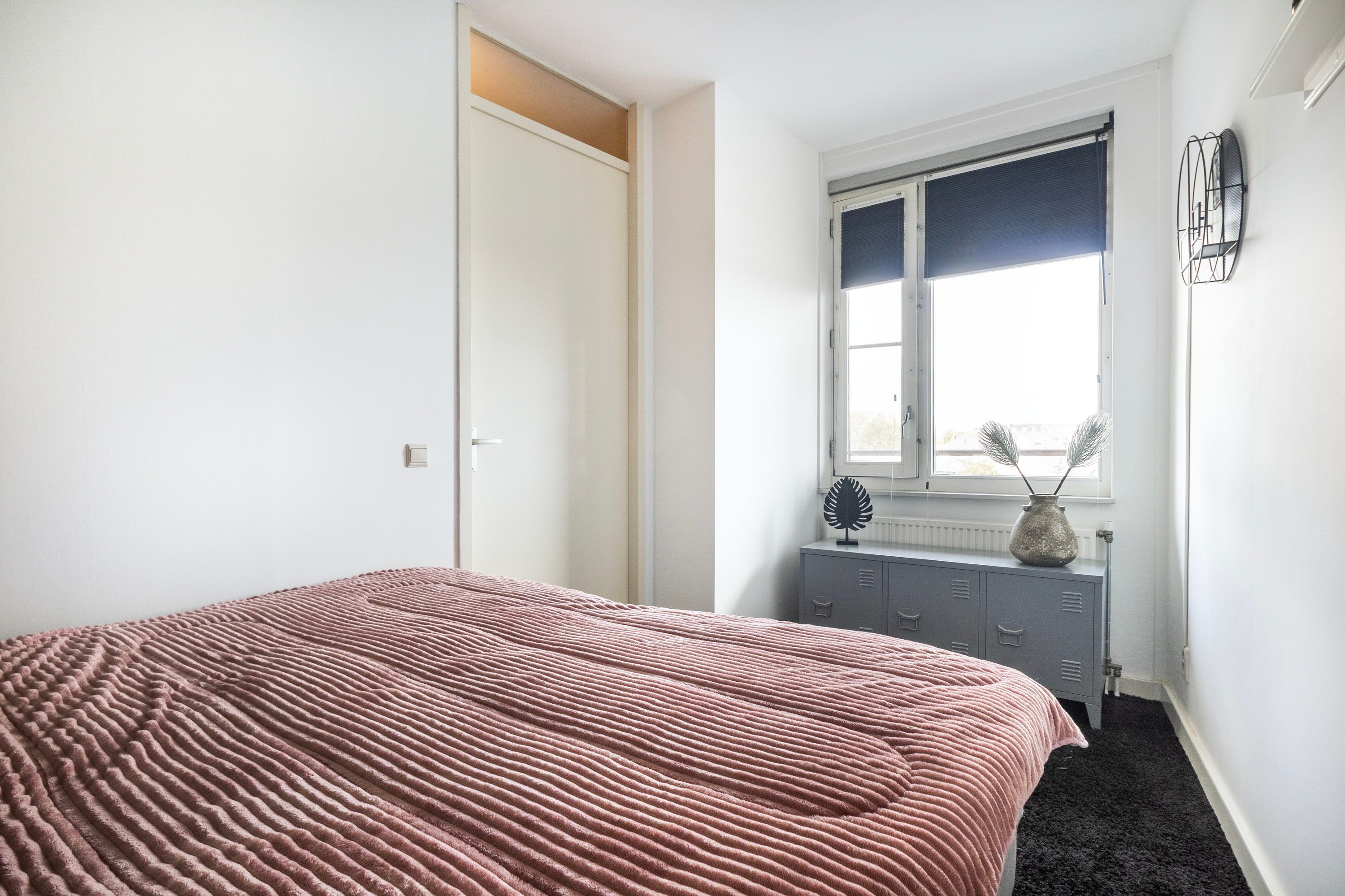 Het appartement beschikt verder over een slaapkamer van 9,4 m² met raampartij, en een ruime badkamer van 3 m². Deze badkamer is voorzien van een royaal wastafelmeubel, een stortdouche en een planchet. Tevens zijn hier de aansluitingen voor de wasmachine en droger aanwezig. Het aparte toilet bevindt zich in een aangrenzende ruimte. Tot slot is er een tweede kamer welke nu in gebruik is als inpandige berging van 4,4 m², ideaal voor extra opslagruimte.