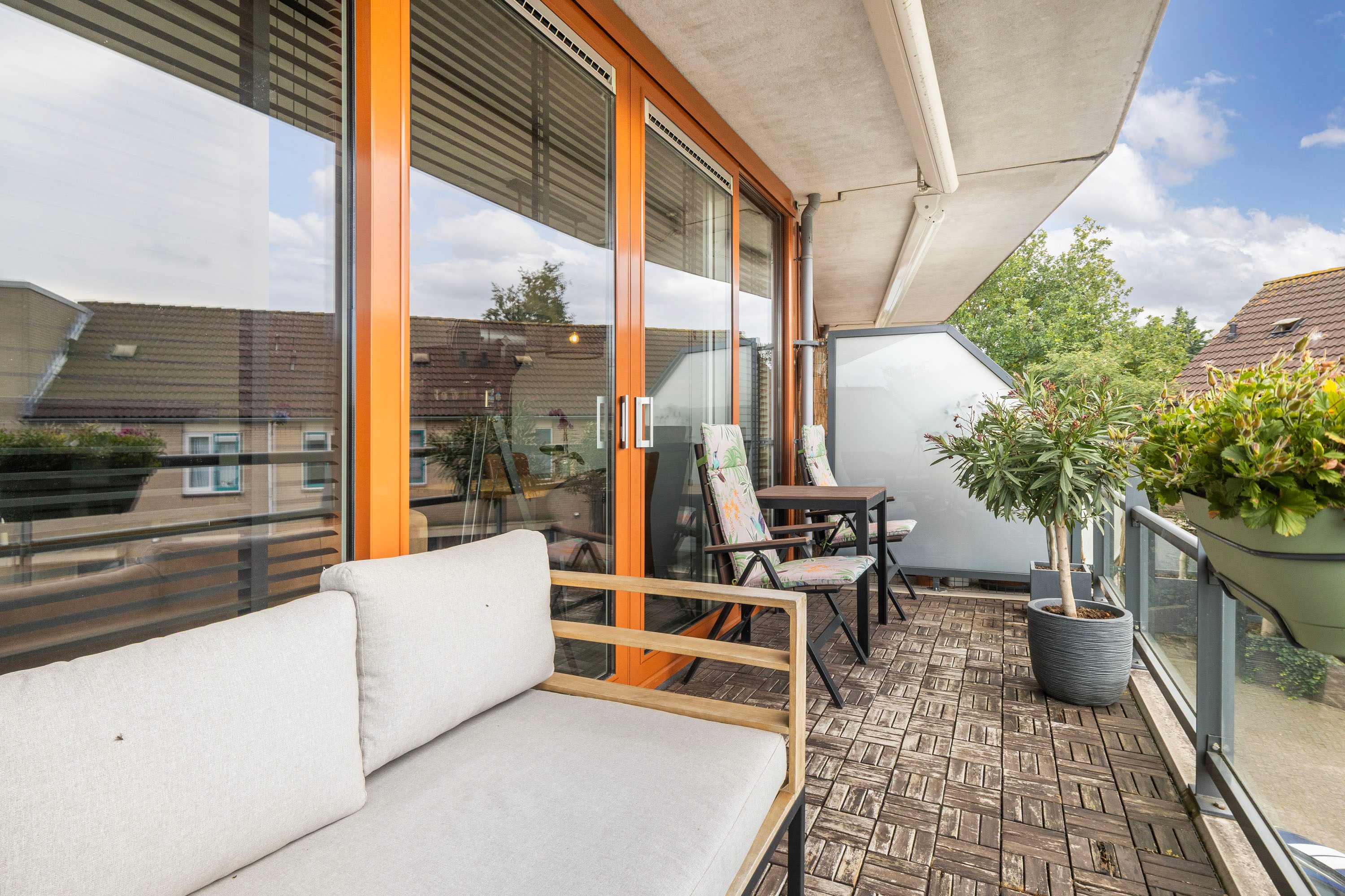 Balkon: Via de dubbele schuifdeuren in de woonkamer betreed je het balkon van 10,7 m² op het westen. Dit zonnige balkon biedt genoeg ruimte voor een loungebank en een gezellige zithoek, zodat je heerlijk kunt ontspannen.