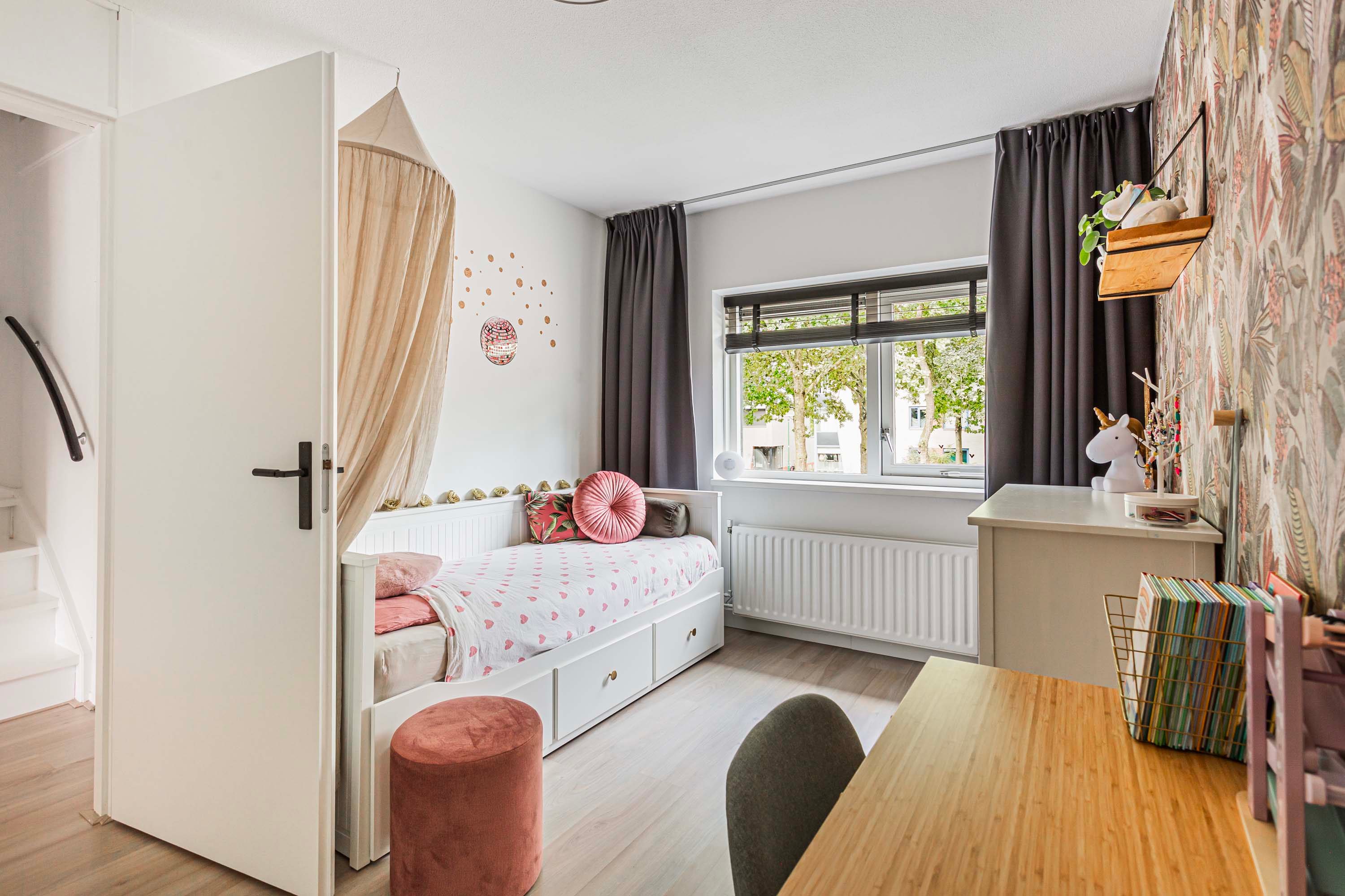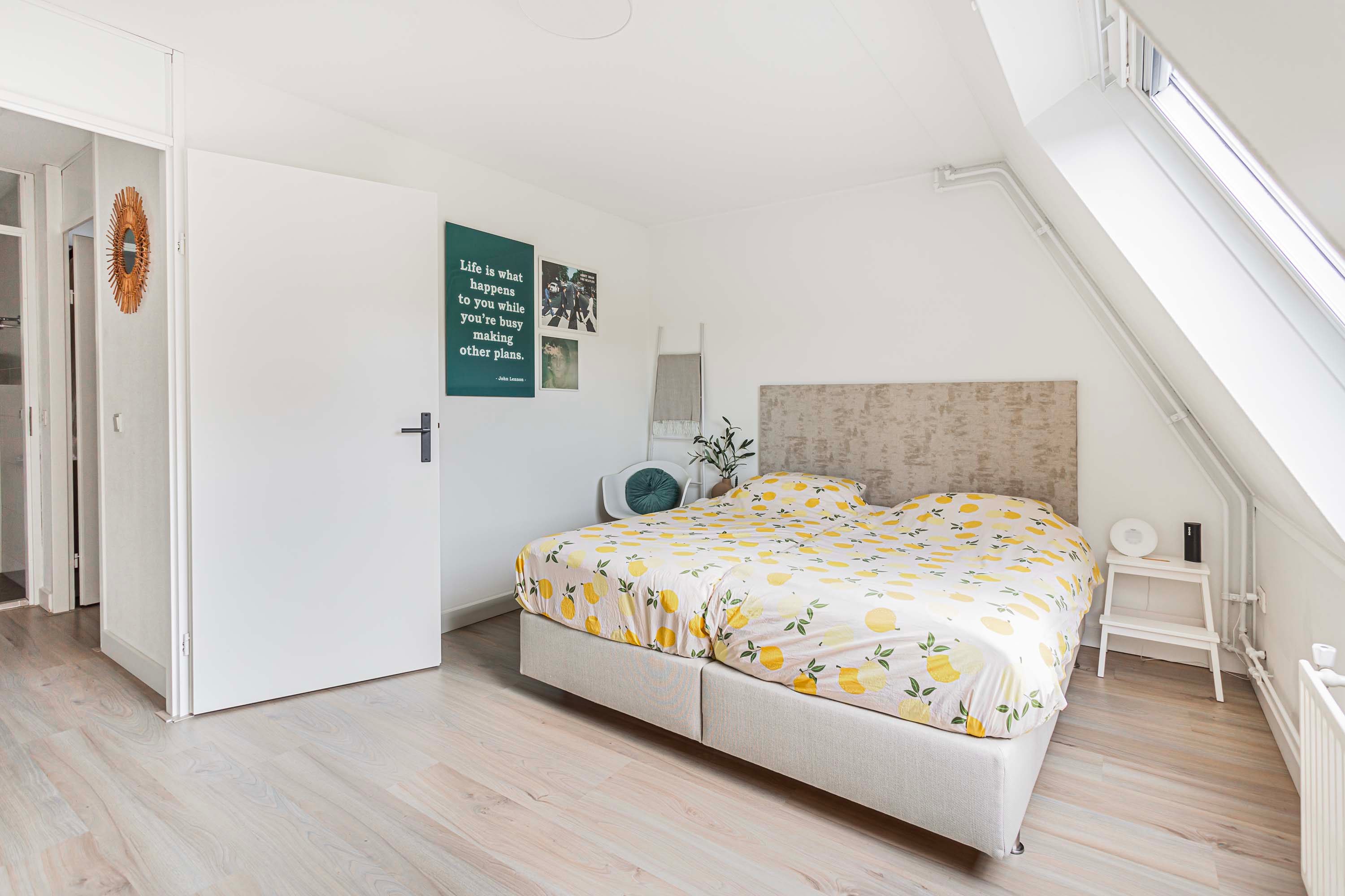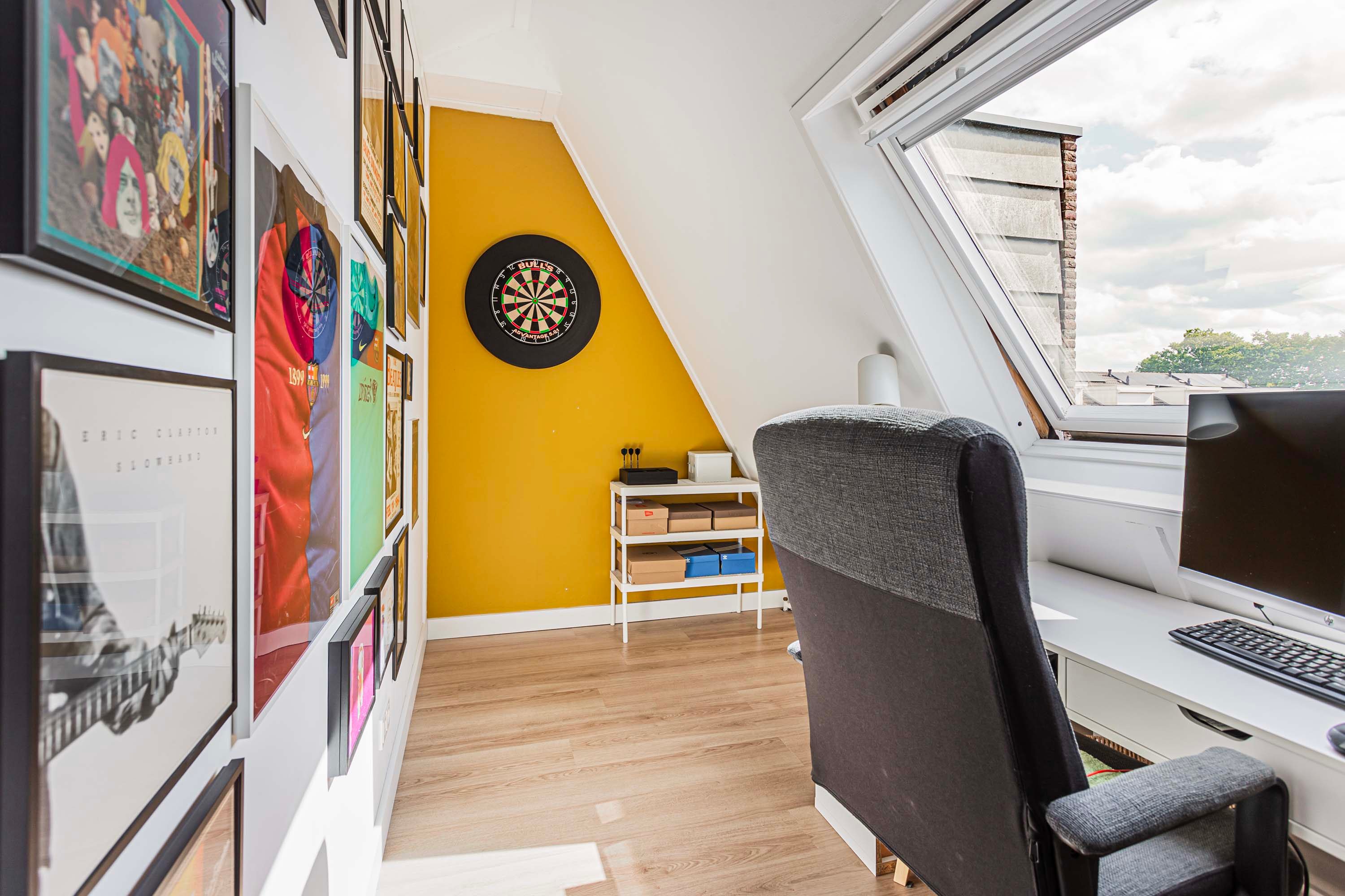 Via een vaste trap bereik je de tweede verdieping, hier vind je de CV-opstelling, de mechanische ventilatie-unit en de witgoedaansluitingen. Daarnaast is er voldoende ruimte voor het creëren van een werkplek, mede dankzij het dakraam dat zorgt voor natuurlijk daglicht. Verder bevindt zich hier een mooie derde slaapkamer, uitgerust met een dakkapel voor extra ruimte en lichtinval.