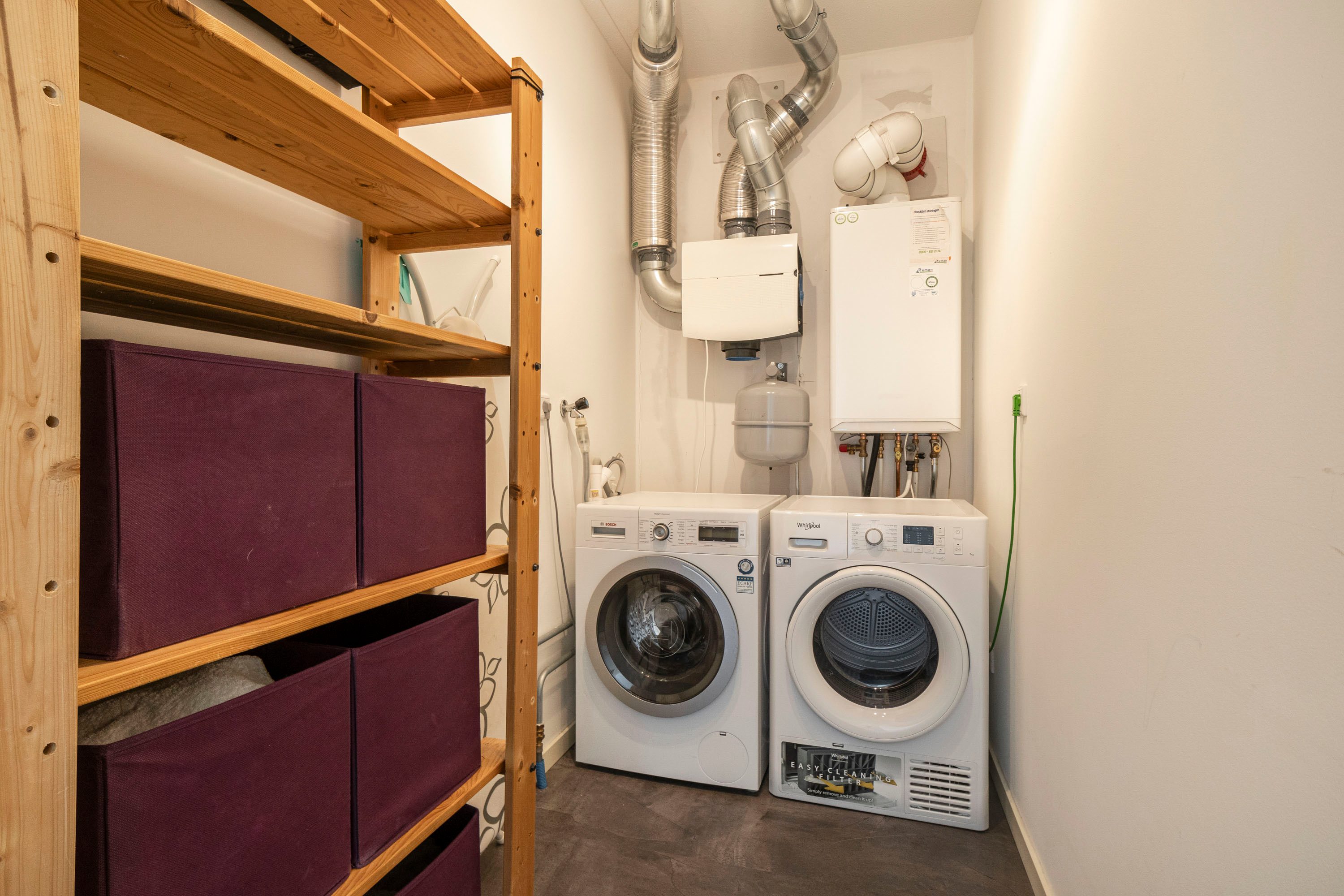 Op deze verdieping zijn twee slaapkamers van circa 15 m² en 7 m² groot. De slaapkamer aan de voorzijde bereik je via de hal, de slaapkamer aan de achterzijde via de woonkamer. Beide kamers zijn voorzien van veel kastruimte. Verder vind je op deze verdieping een separaat toilet, een berging met cv-ketel, ventilatie-unit en wasmachine- en drogeraansluitingen en een badkamer van circa 5 m² met ruime inloopdouche, wastafel met meubel en designradiator.