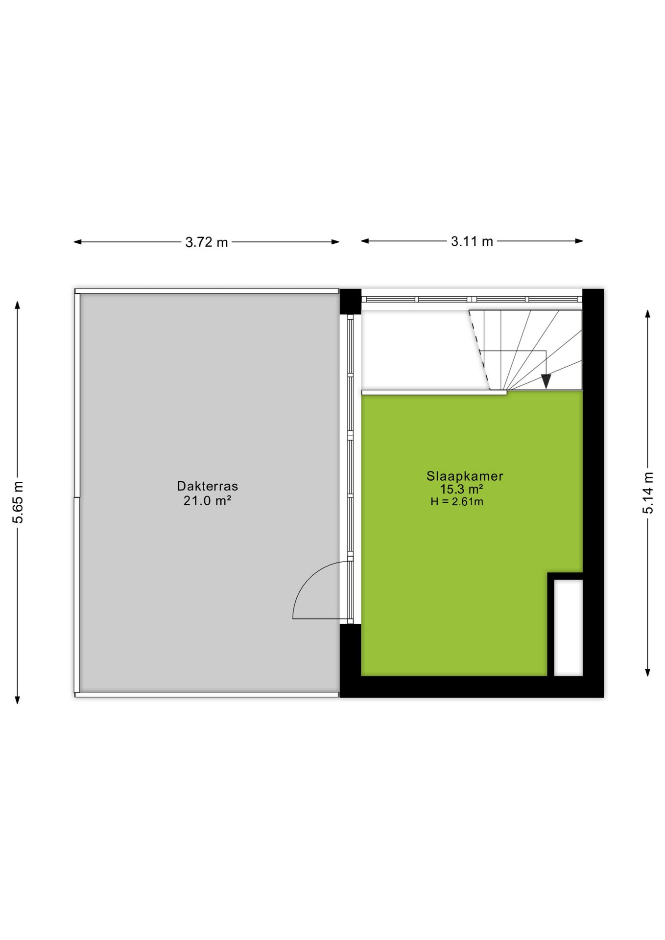 Via een vaste trap bereik je de derde slaapkamer van circa 15 m². Deze ruimte is multifunctioneel te gebruiken als logeerkamer, werkkamer of hobbyruimte. Vanuit hier stap je direct het ruime dakterras van circa 21m2 op, waar je in de lente en zomer de gehele dag van de zon kan genieten.