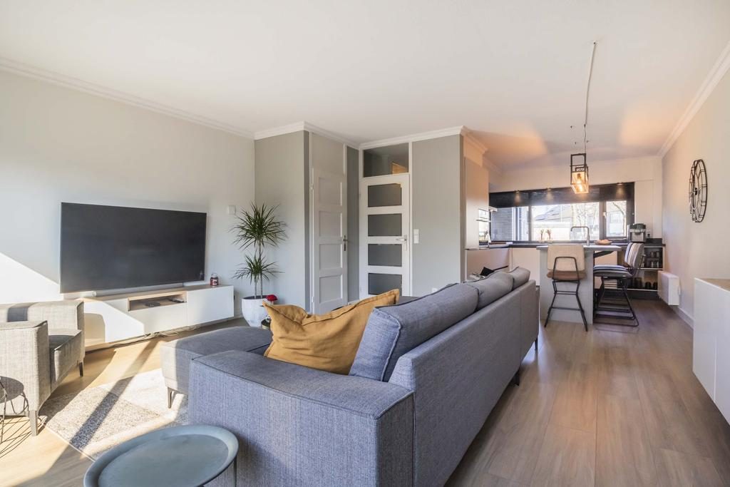 De woonkamer heeft een afmeting van ruim 25m² en is voorzien van een sfeervolle laminaatvloer en heerlijk veel lichtinval. Door de ruime afmeting is er plek genoeg voor een eetgedeelte en ontstaat er een gezellige verbinding tussen de woonkamer en de keuken. De recent vernieuwde (2022) open woonkeuken heeft een moderne kleurstelling en is voorzien van een vaatwasser, kookplaat, afzuigkap, oven, koel-vriescombinatie en een Quooker. Door de grote raampartijen is de woning aan beide zijde voorzien van veel lichtinval en een fantastisch vrij uitzicht. Via de hal, met meterkast en toilet, bereik je de trapopgang naar de verdieping