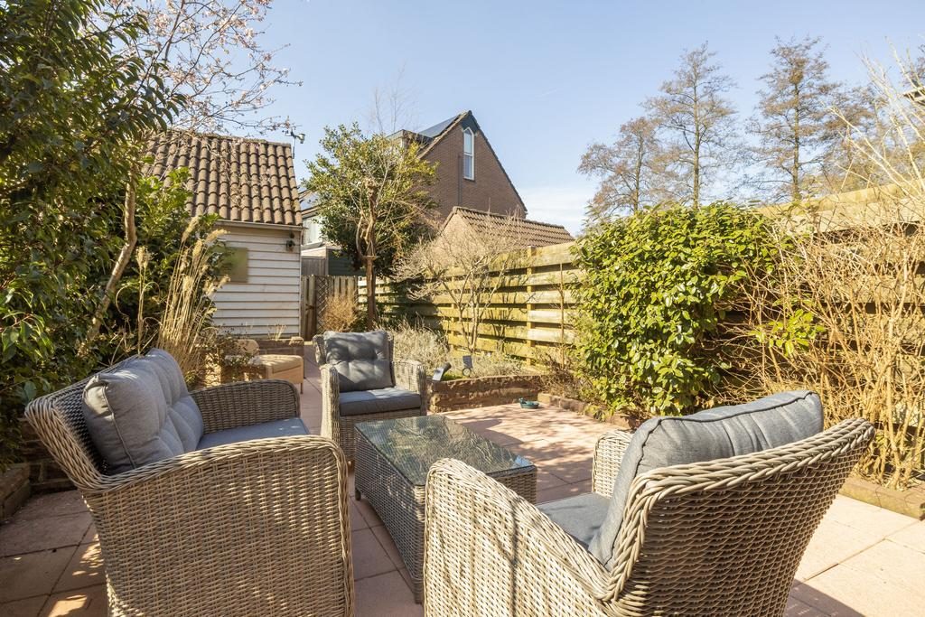 De achtertuin van de woning is royaal en biedt veel ruimte voor ontspanning, spel en heerlijke BBQ tijdens de zonnige dagen. Met sierbestrating en plantenbakken is de tuin zowel praktisch als esthetisch aangelegd. Er is volop privacy, wat zorgt voor een ongestoorde beleving. Voor opbergruimte is er een berging met vliering van 7,8 m² met daarachter een berging van 2,5 m². Achter deze berging is er ruimte voor de containers zodat ze niet in het zicht staan.