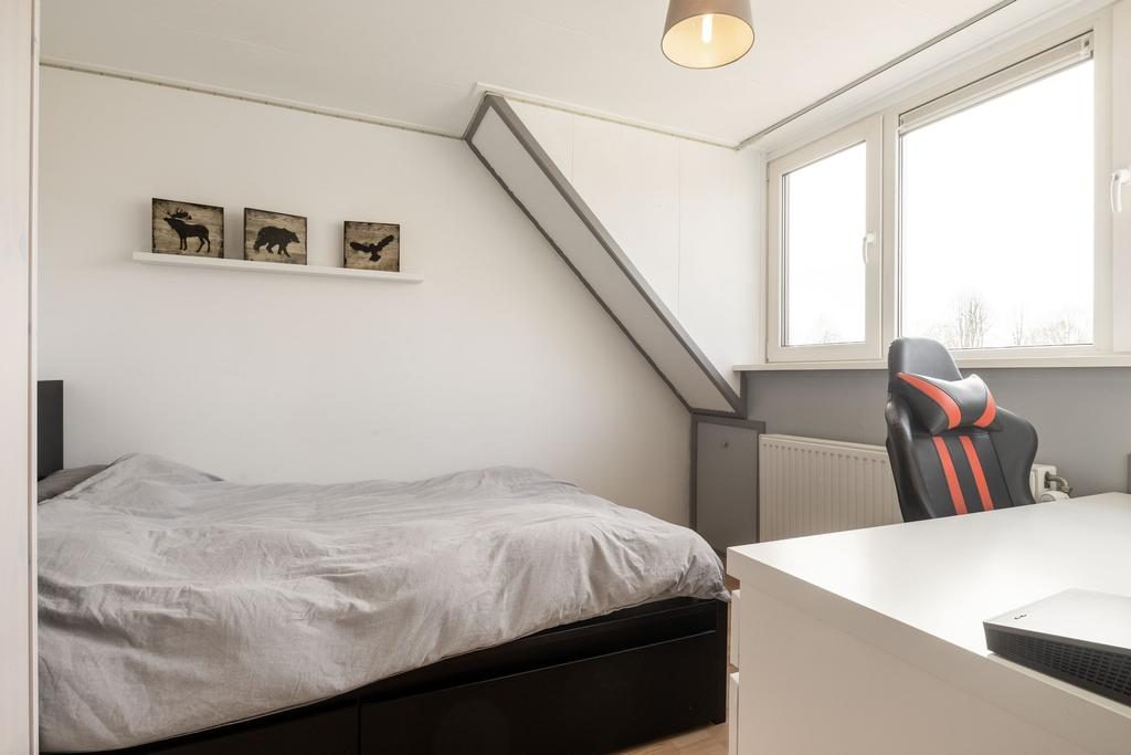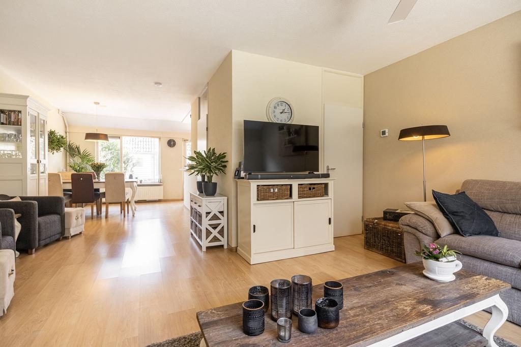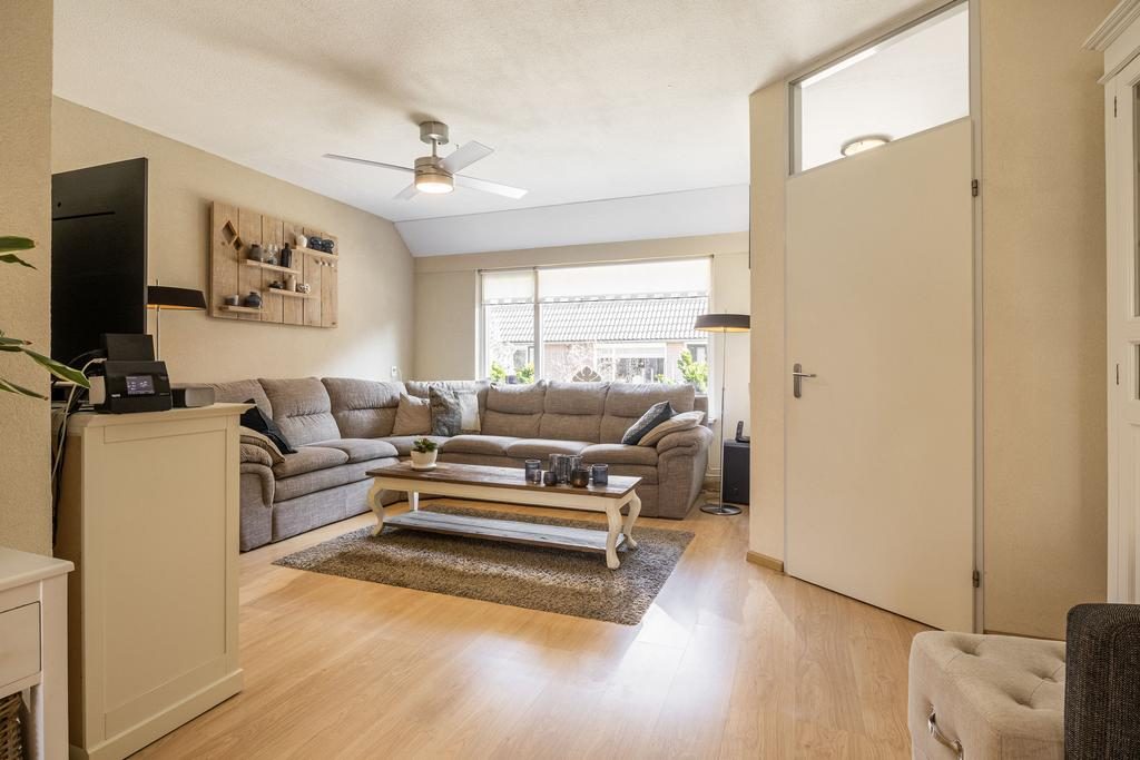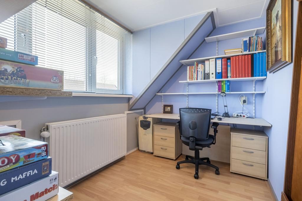 Gelegen in het mooie, kindvriendelijke en groene Veenendaal-West, om precies te zijn in de Schepenbuurt, staat deze in 1978 gebouwde tussenwoning. Het betreft een ruim woonhuis met 5 slaapkamers en een heerlijke diepe tuin op het westen. Aan verduurzaming is uiteraard ook gedacht. De woning is namelijk gedeeltelijk voorzien van HR++ beglazing en in 2019 zijn er 11 zonnepanelen geplaatst. De ligging van de woning is zeer gunstig, aan de rand van de woonwijk, nabij Rondweg-West en met alle voorzieningen binnen handbereik. Zo zijn basisscholen, wijkwinkelcentrum De Ellekoot en meerdere sportfaciliteiten allemaal op korte afstand te vinden.