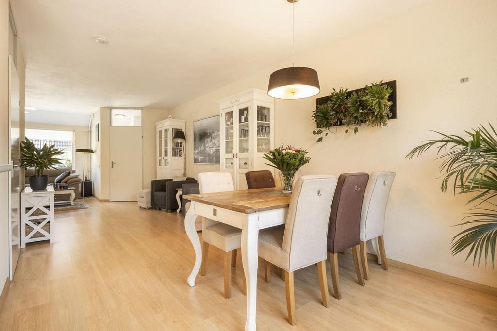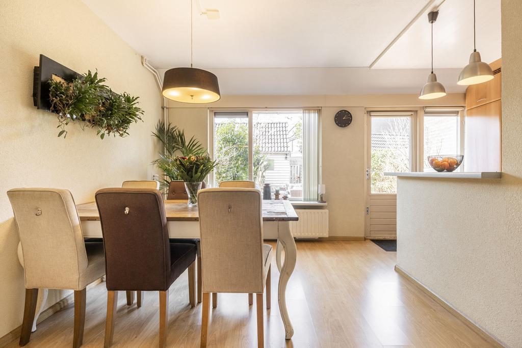 Centraal tussen de woonkamer en keuken bevindt zich het eetgedeelte. Hier is meer dan voldoende ruimte voor een grote eettafel met stoelen. Een fijne plek om met familie en/of vrienden te genieten van een hapje, drankje en spelletje!
