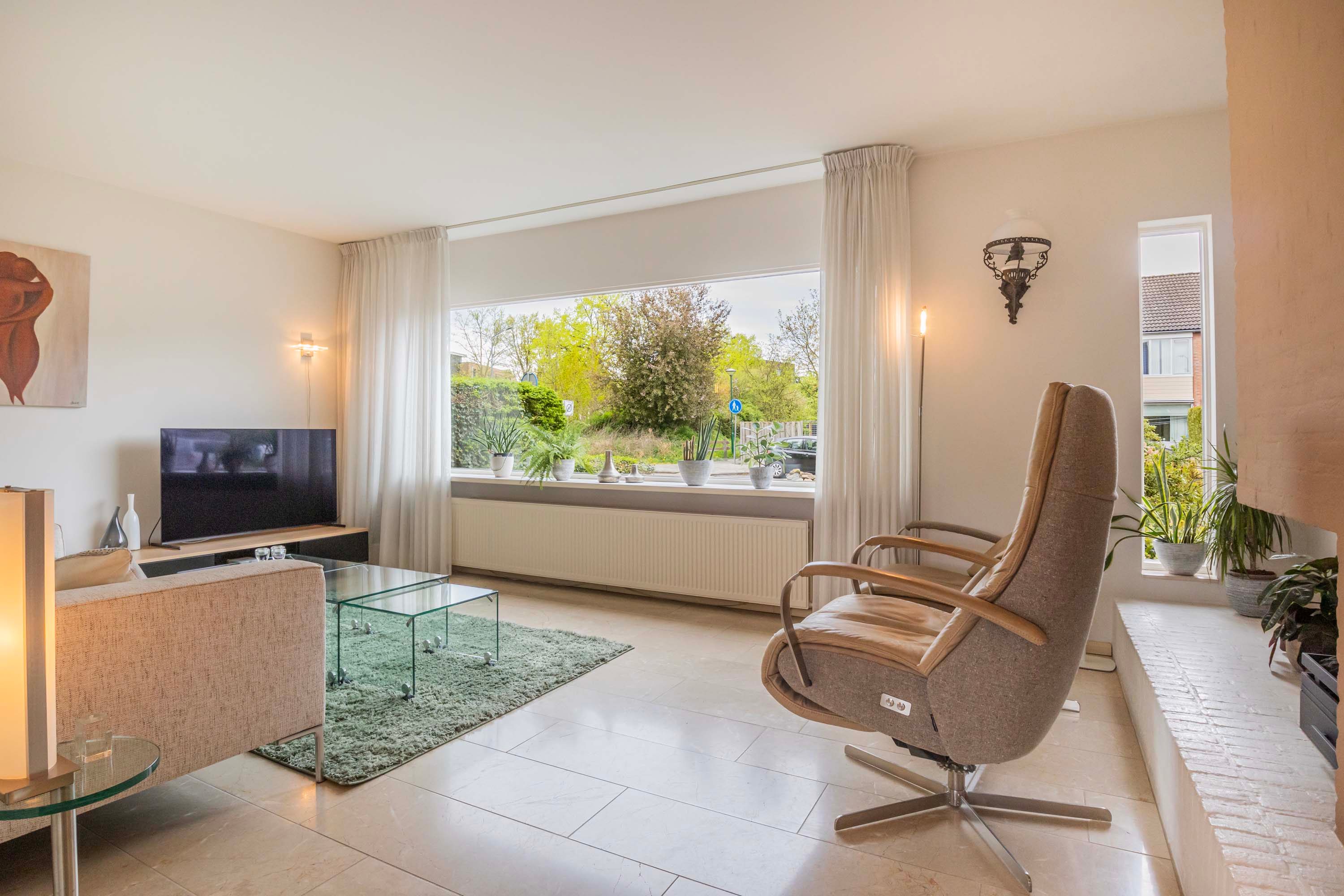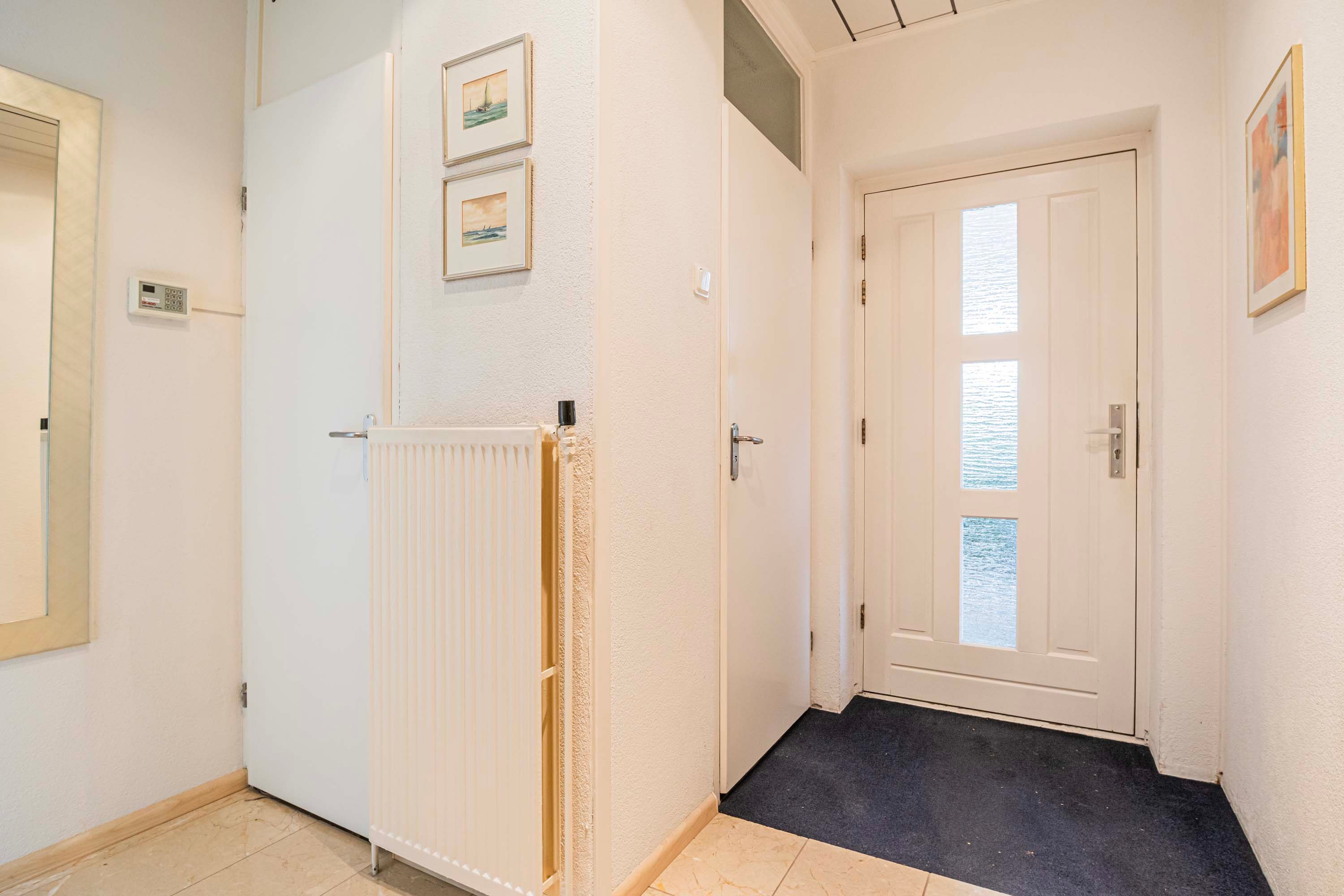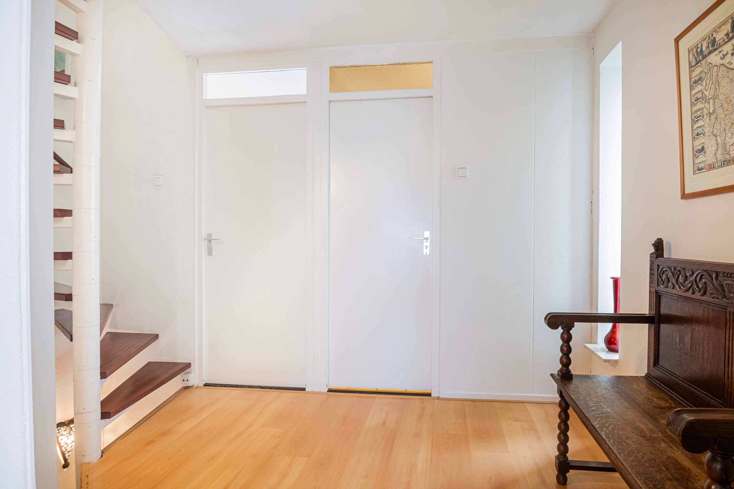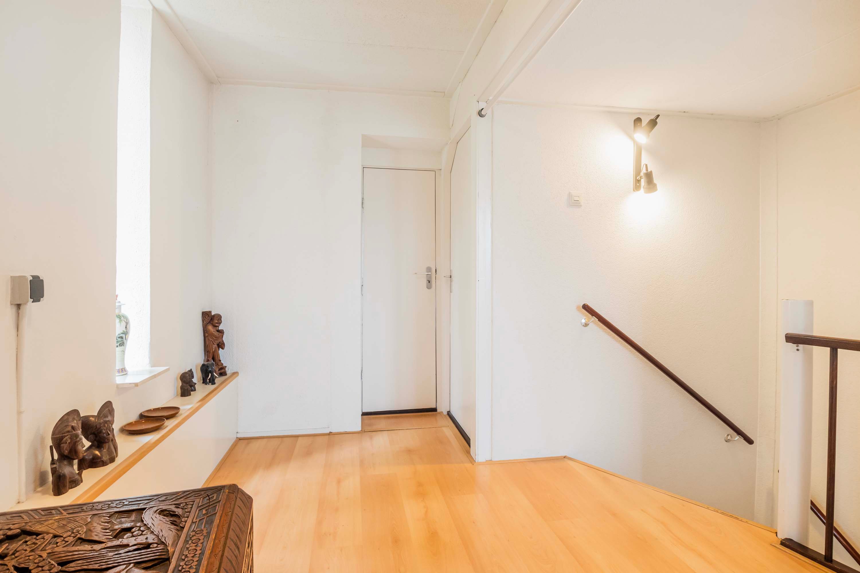 Hal entree, trapopgang naar de eerste verdieping, toiletruimte met zwevend toilet, garderobe en de meterkast. Straatgerichte woonkamer met open haardpartij, grote raampartijen voor veel daglichttoetreding en een tegenvloer. Vanuit de woonkamer heb je prettig uitzicht op de ruime voortuin met veel privacy aangezien de woonkamer niet direct grenst aan het voetpad.