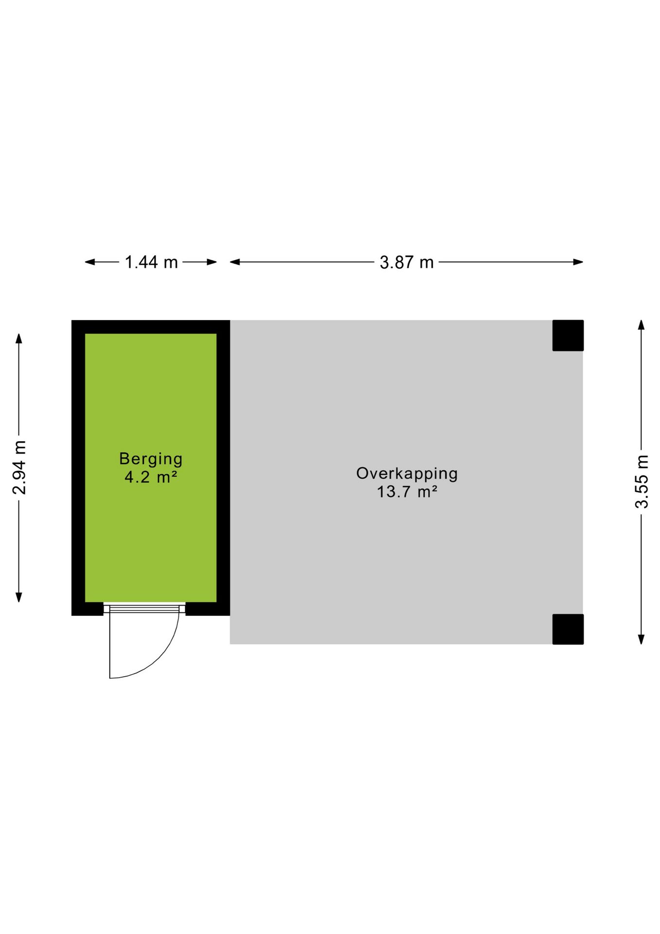 Naast de woning staat een gemetselde garage van ruim 20 m². Naast de mogelijkheid tot het plaatsen van een grote vriezer hebben de huidige eigenaren er ook voor gekozen om de wasmachine en droger hier te plaatsen. Voor de garage bevindt zich nog een carport om de auto overdekt te parkeren.