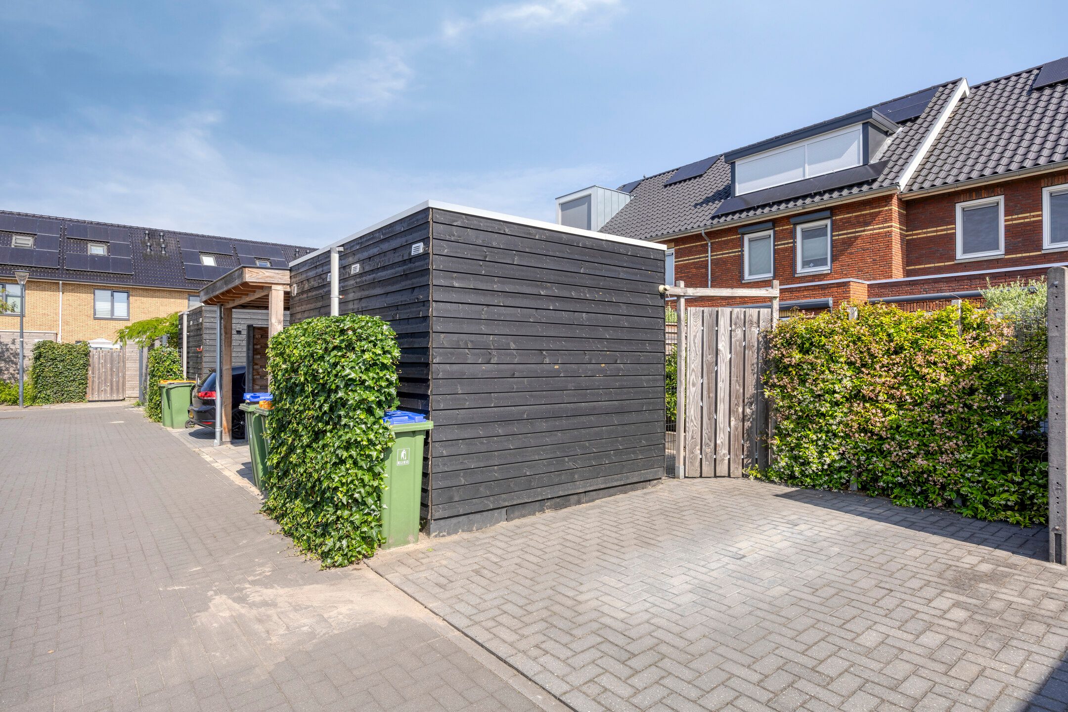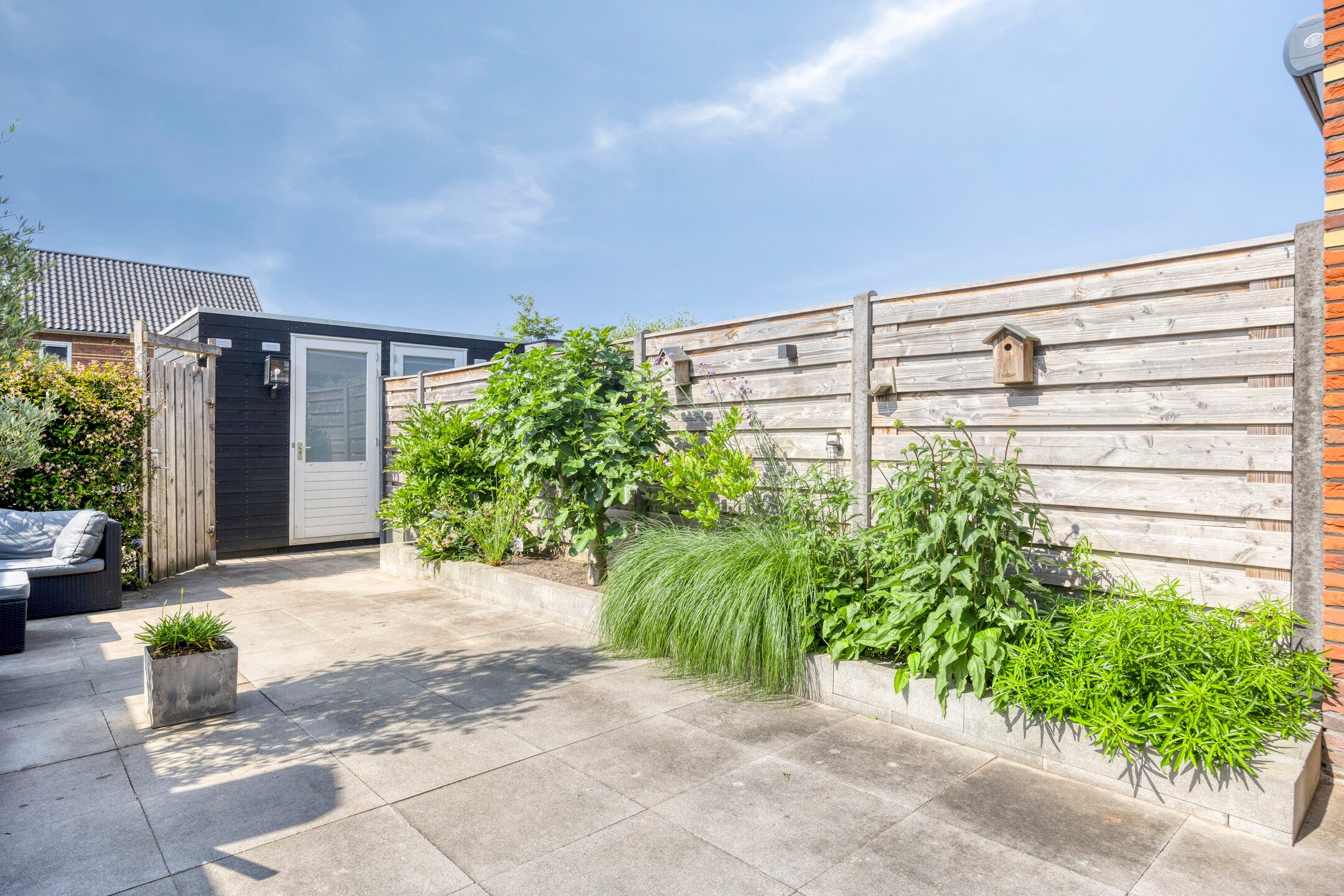 Er is voldoende ruimte om meerdere zithoeken te creëren, helemaal naar eigen wens. Daarnaast beschikt de tuin over een praktische berging, ideaal voor het opslaan van fietsen, tuingereedschap of andere spullen.