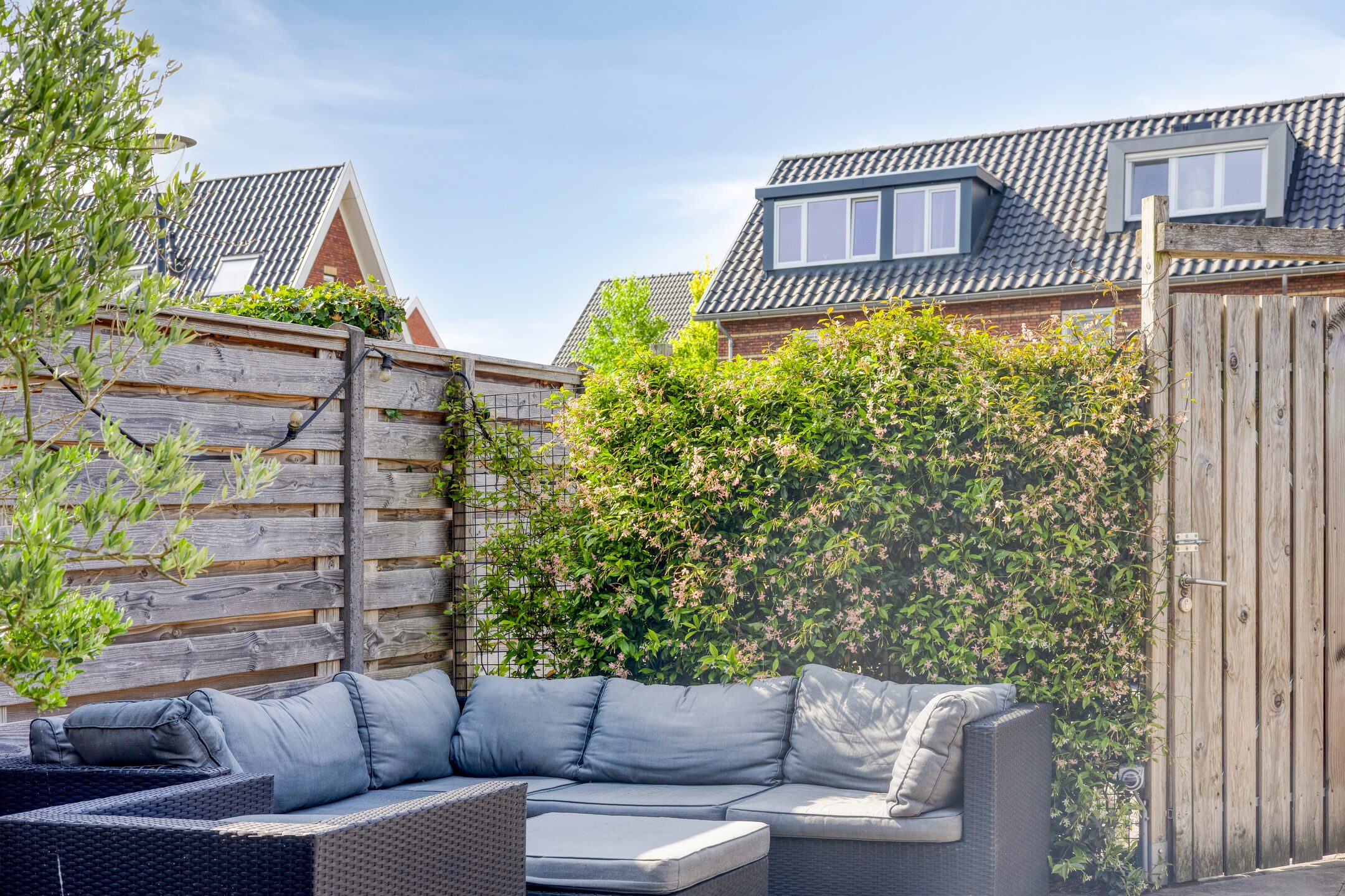 Via de openslaande tuindeuren stap je zo de prachtig aangelegde achtertuin in. Doordat de tuin pal op het zuiden ligt, kan je de hele dag genieten van de zon of een plekje in de schaduw. De achtertuin beschikt ook over een fijn zonnescherm voor een plek in de schaduw.
