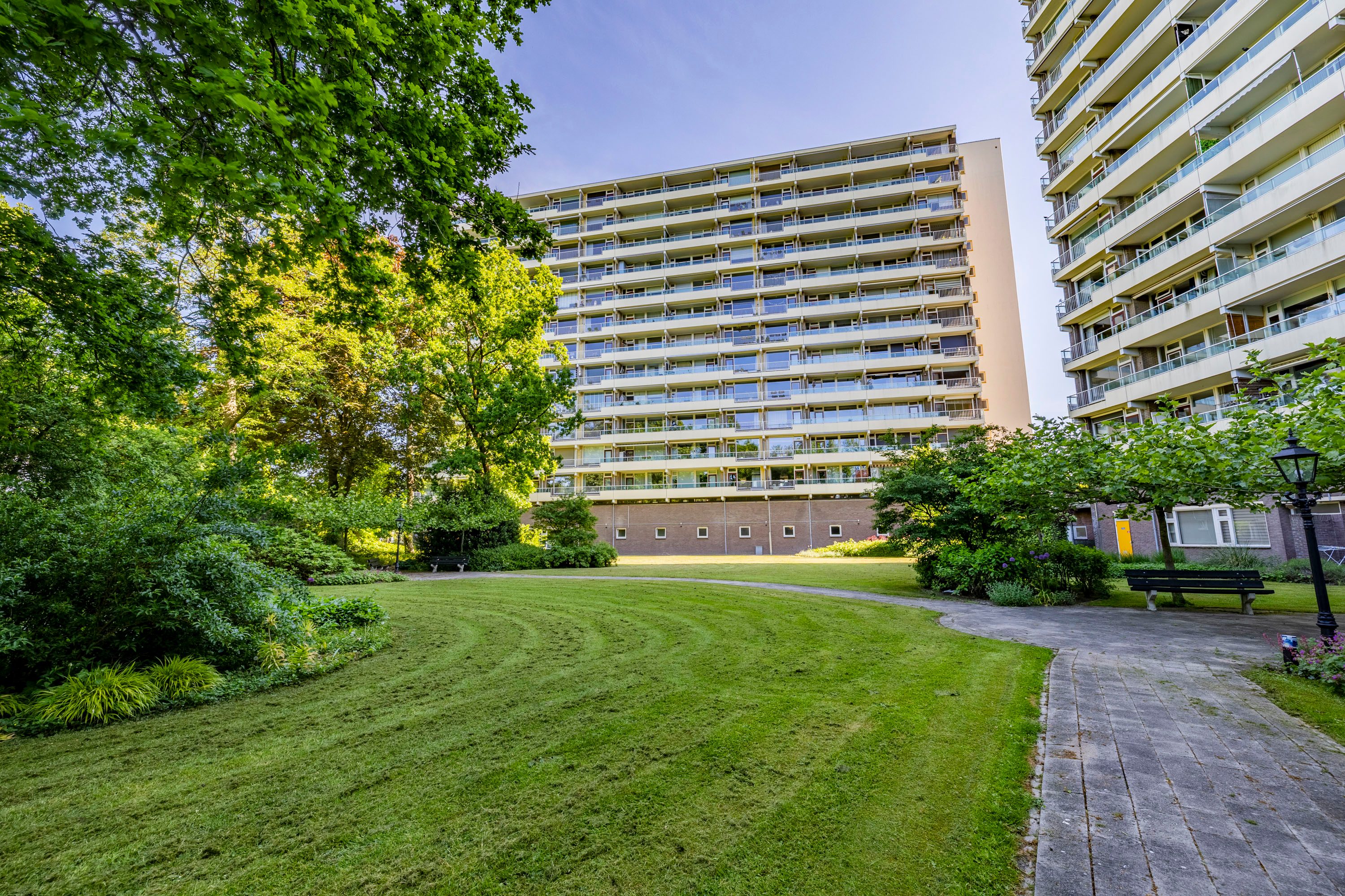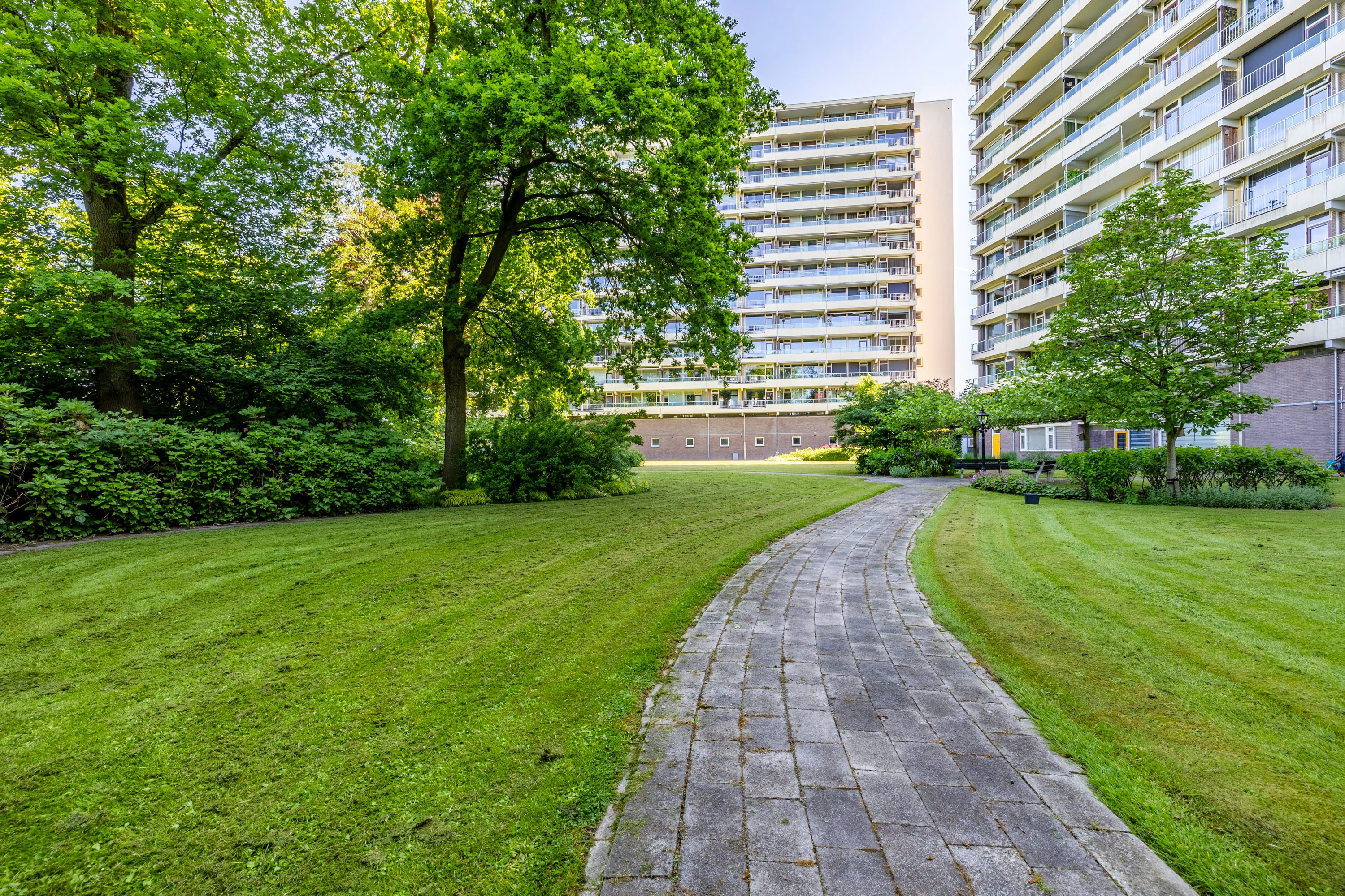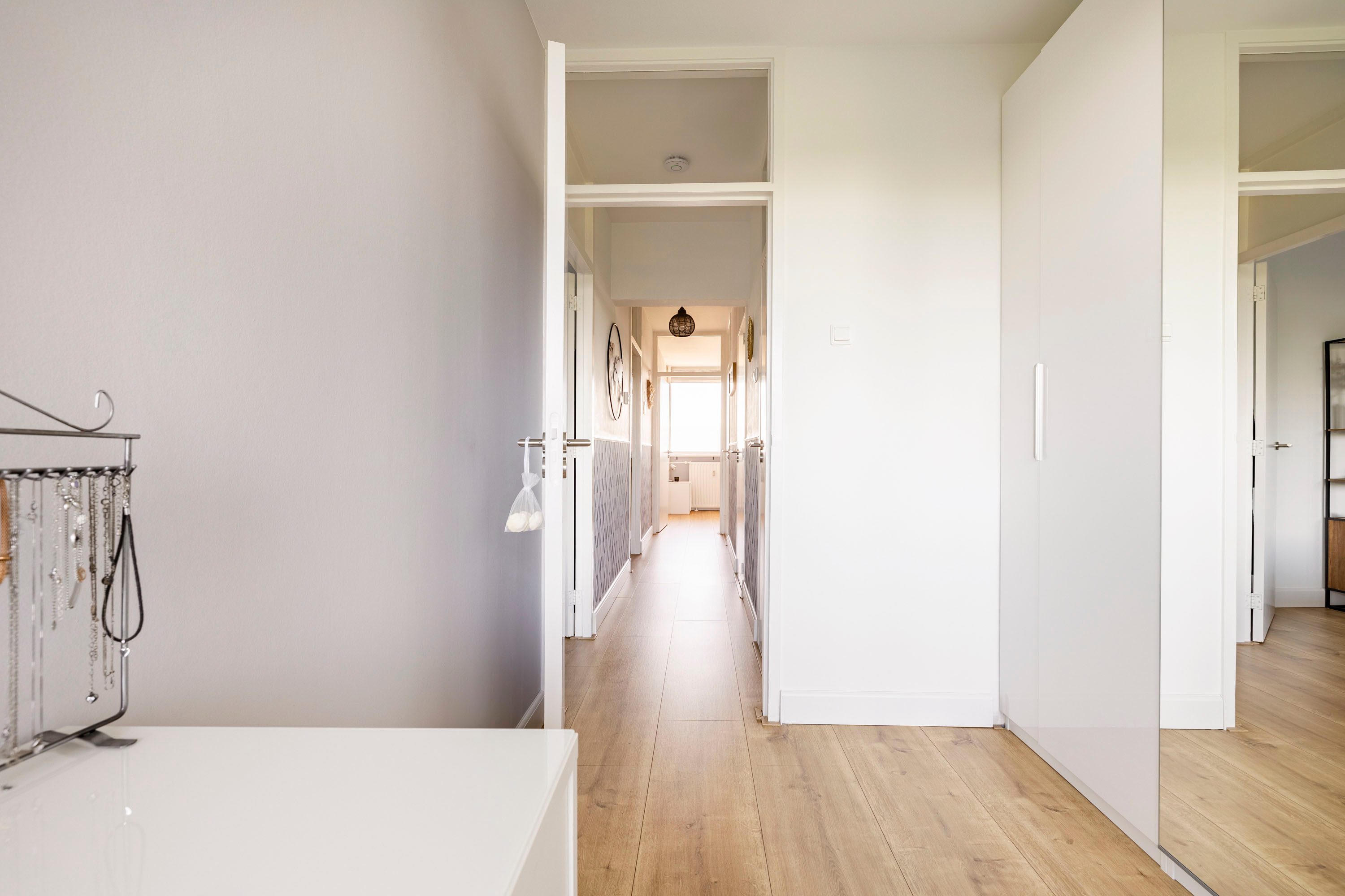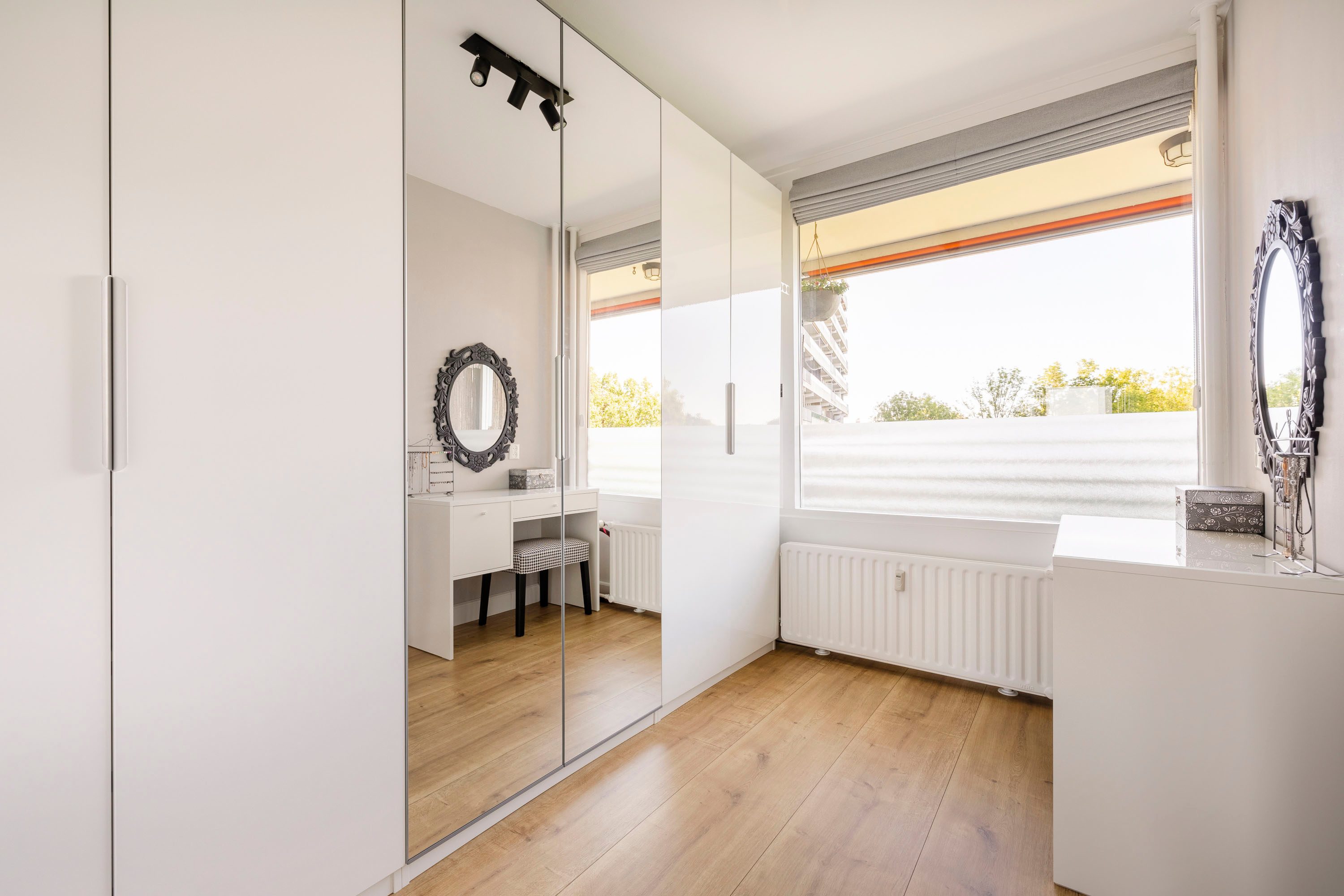 De grootste slaapkamer is gelegen aan de achterzijde van het appartement en is ruim 12 m² groot. Daarnaast kun je via een toegangsdeur naar het balkon en beschik je over veel daglicht door de grote raampartijen. De tweede slaapkamer aan de achterzijde is ruim 6,5 m² groot en beschikt ook over veel daglicht door een groot raam. Deze kamer wordt op dit moment gebruikt als kledingkamer, maar kan ook worden gebruikt als baby-/kinderkamer.