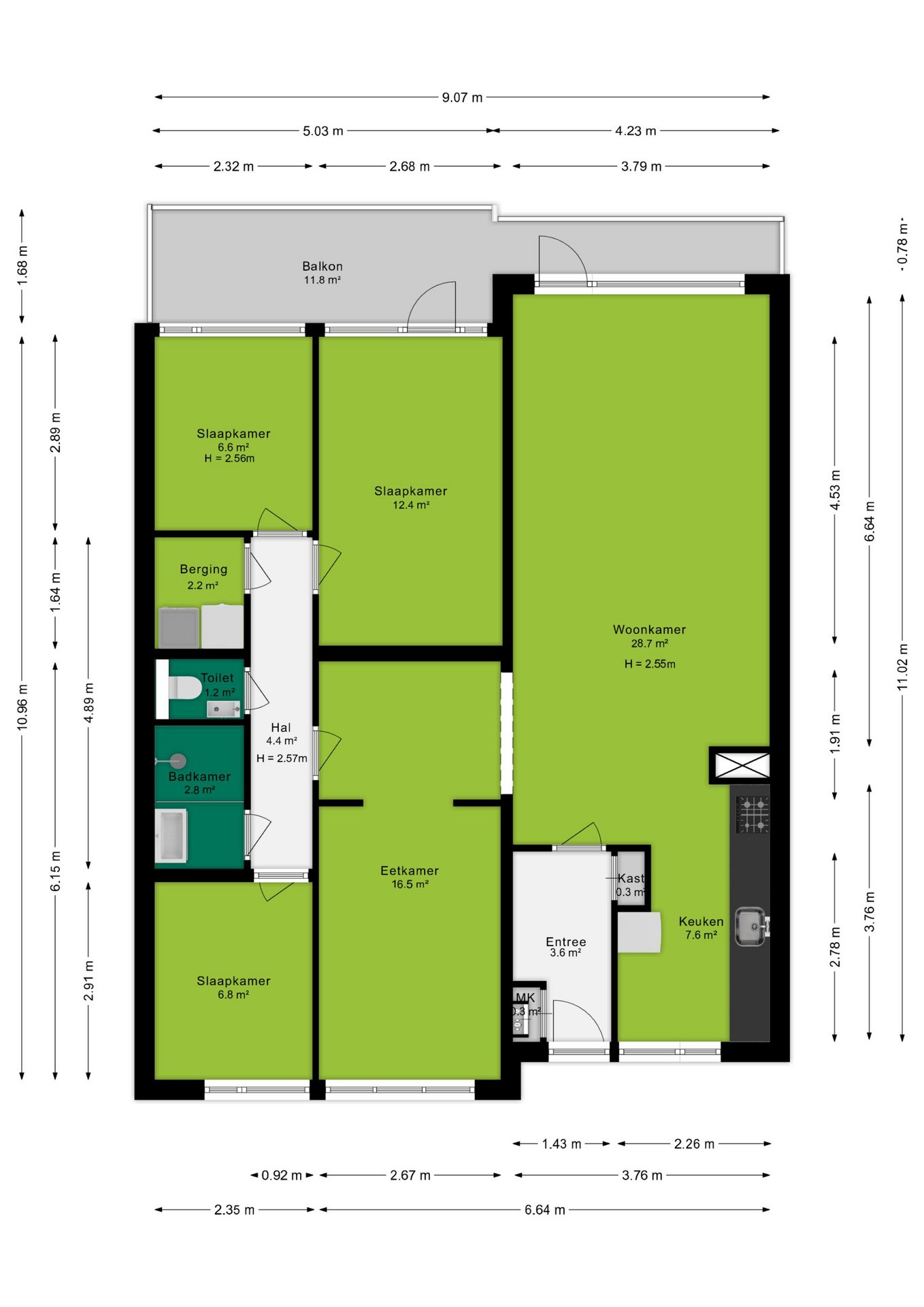 - 3 slaapkamers;