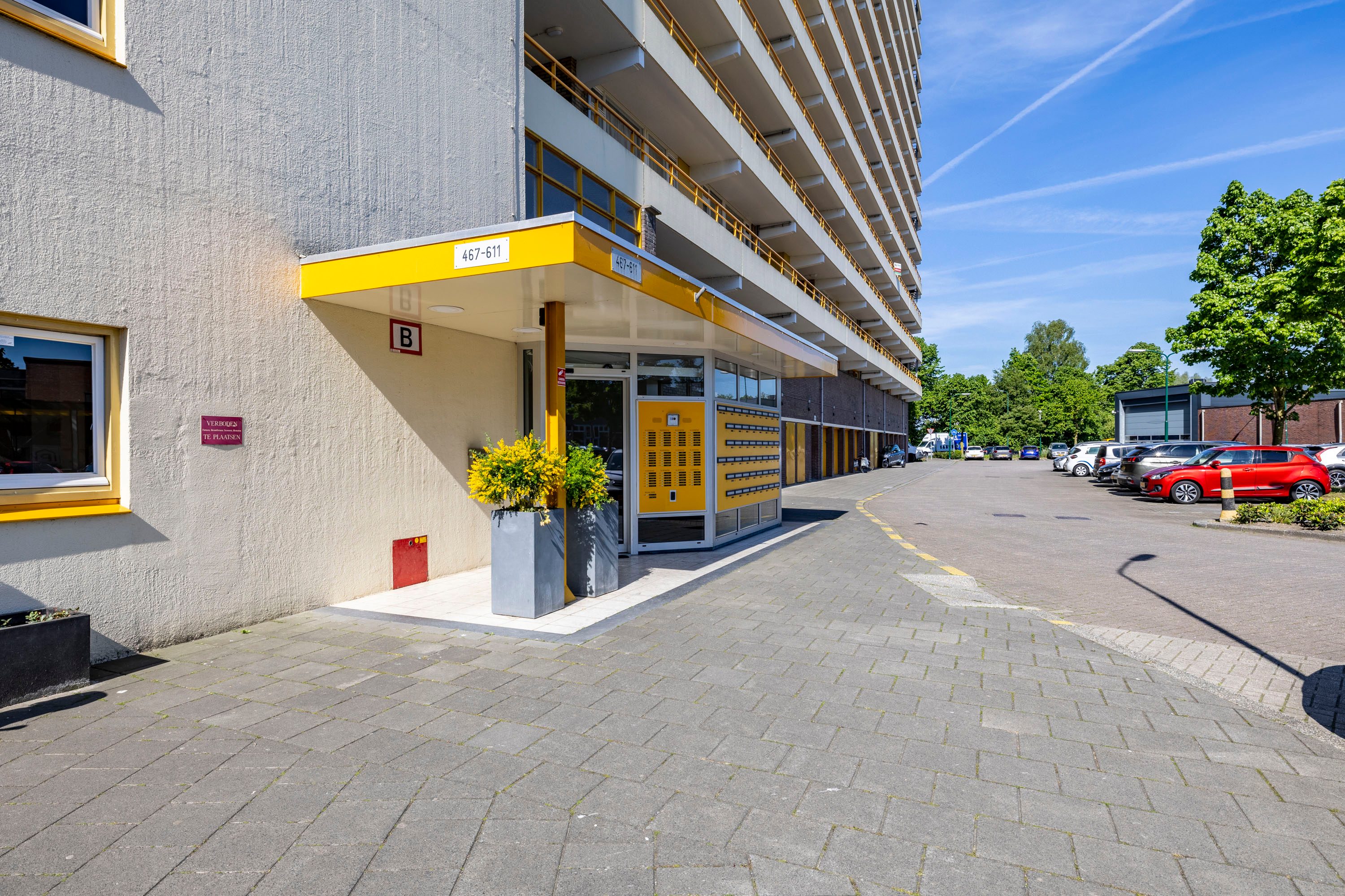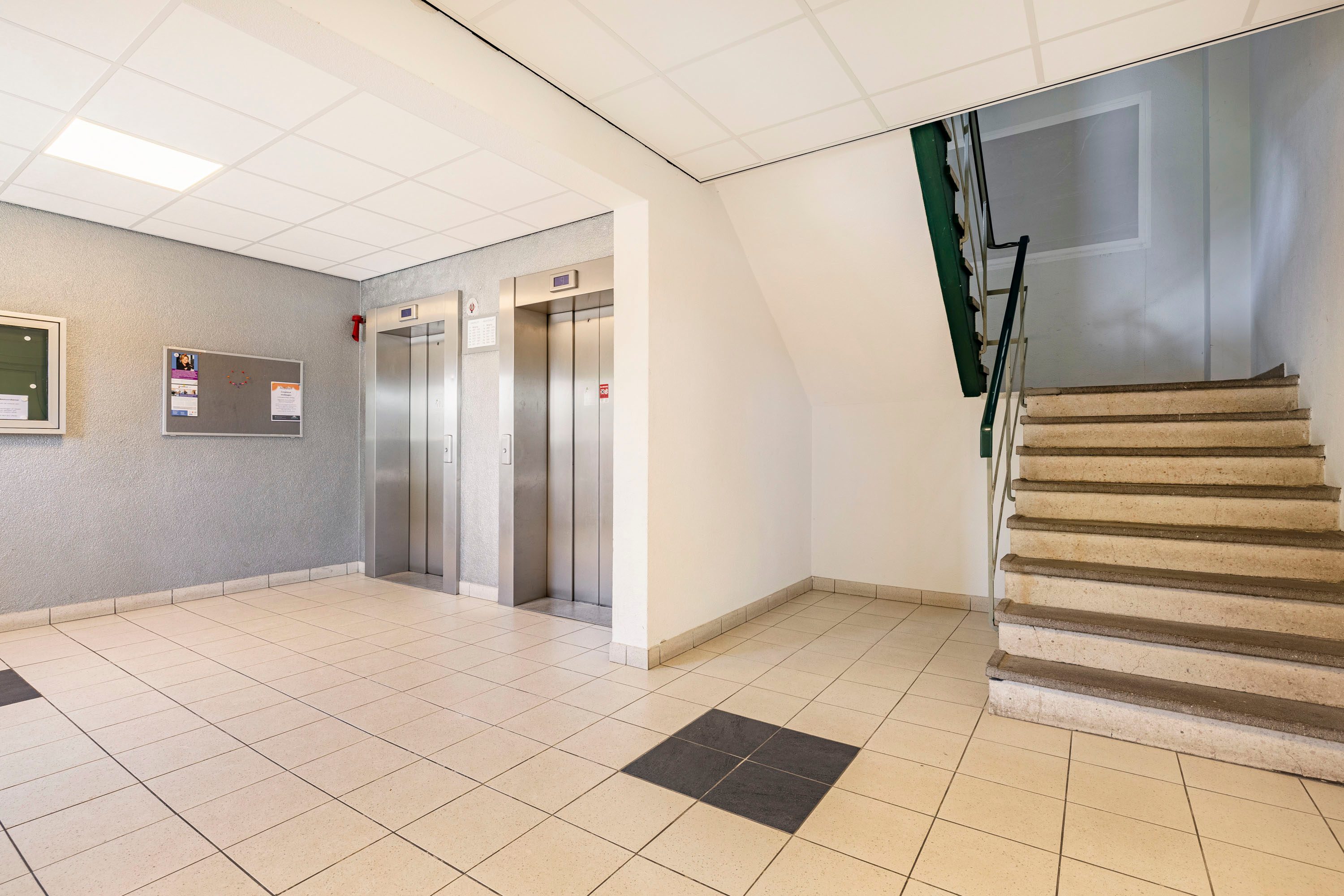 Via de beveiligde hoofdentree, intercominstallatie, brievenbussen en 2 liftinstallaties kom je bij het appartement gelegen op de 4de woonlaag.