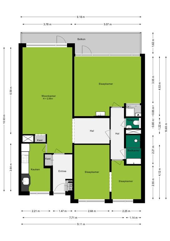 Bij binnenkomst via de entree kom je in een ruime hal met garderobe. Vanuit hier bereik je de royale woonkamer, die toegang biedt tot het royale balkon.