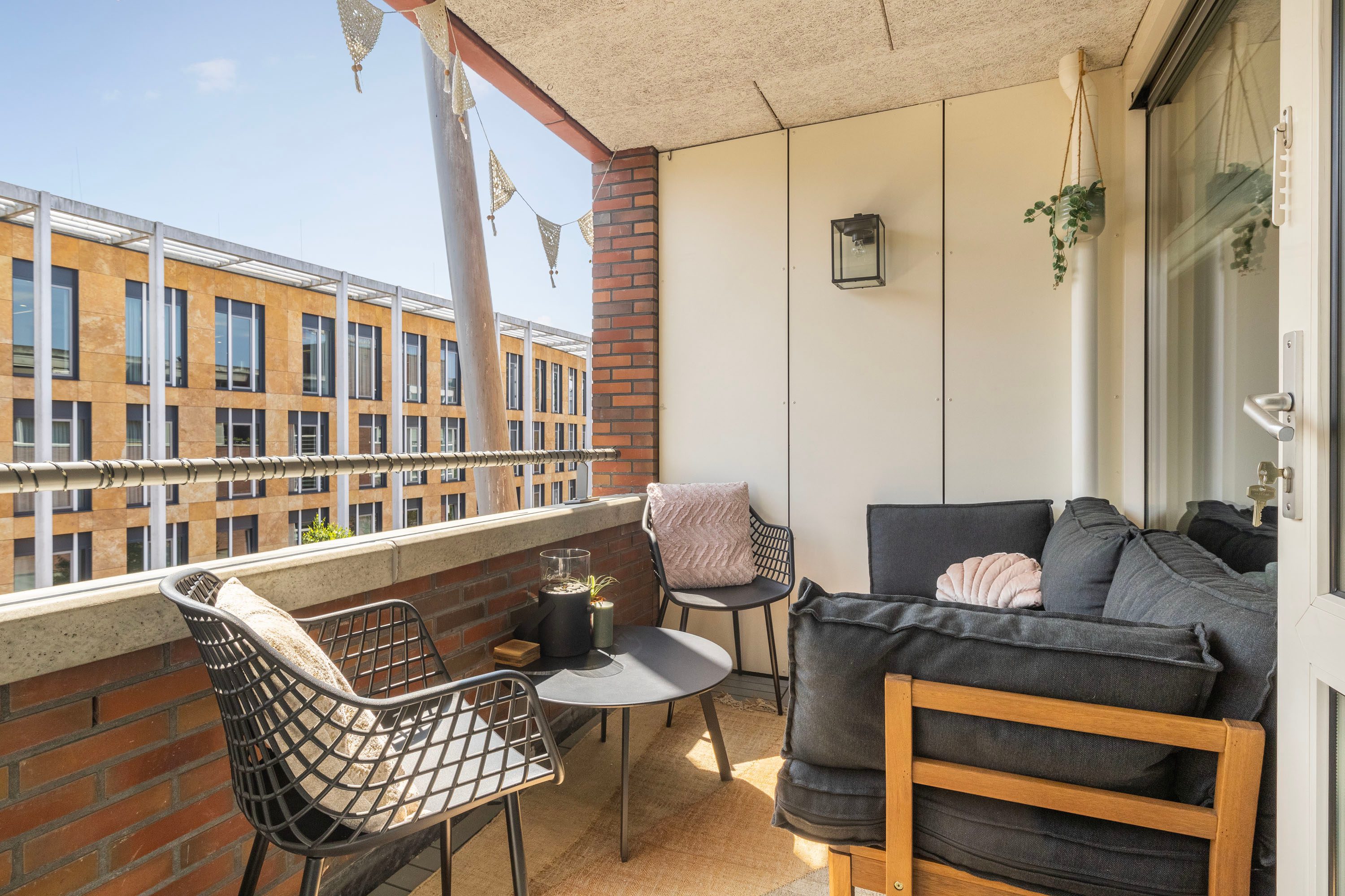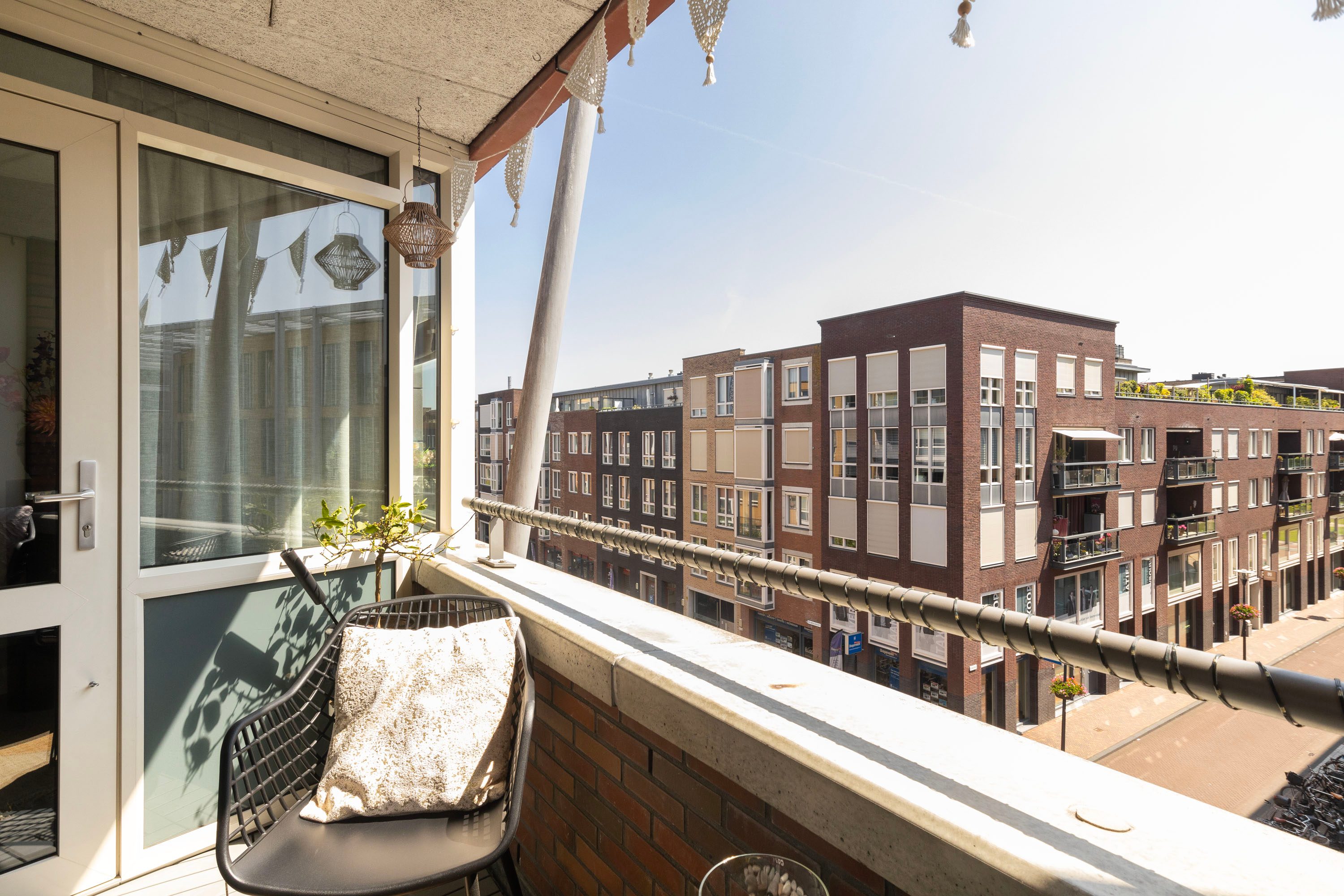 Het balkon gelegen op het zuidoosten, heeft een oppervlakte van 6,3 m² en biedt ruimte voor een gezellige zithoek. Een perfecte plek om van het buitenleven te genieten!