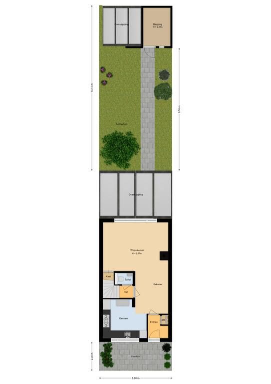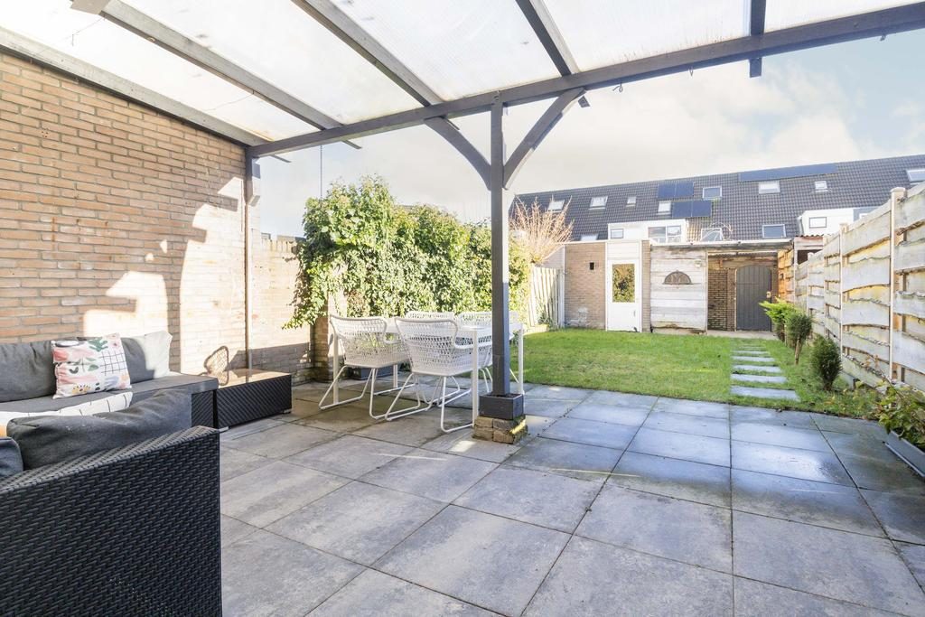 De tuin is gelegen op het zonnige zuidoosten en door de prettige ligging is er altijd wel een plekje in de zon of in de schaduw te vinden. De tuin biedt ruimte genoeg voor een gezellig terras, speelplekjes of groenstroken. Verder beschikt de tuin over een fraaie veranda om heerlijk tot 's avonds laat van het buitenleven te genieten, een berging en een achterom.