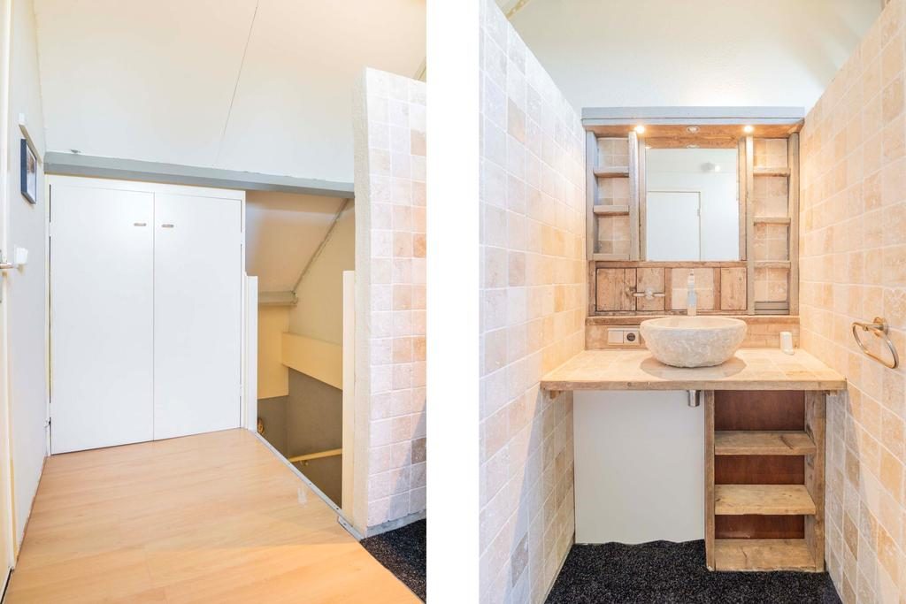 Via de overloop is er toegang naar 3 volwaardige slaapkamers en de badkamer. De slaapkamers hebben een afmeting van circa 14,5m², 8,5m² en 7m². De slaapkamers zijn voorzien van een nette laminaatvloer, neutrale wanden en voldoende lichtinval. De badkamer is betegeld in een moderne kleurstelling en beschikt over een toilet, inloopdouche, wastafel met wastafelmeubel en de witgoedaansluiting is hier aanwezig.