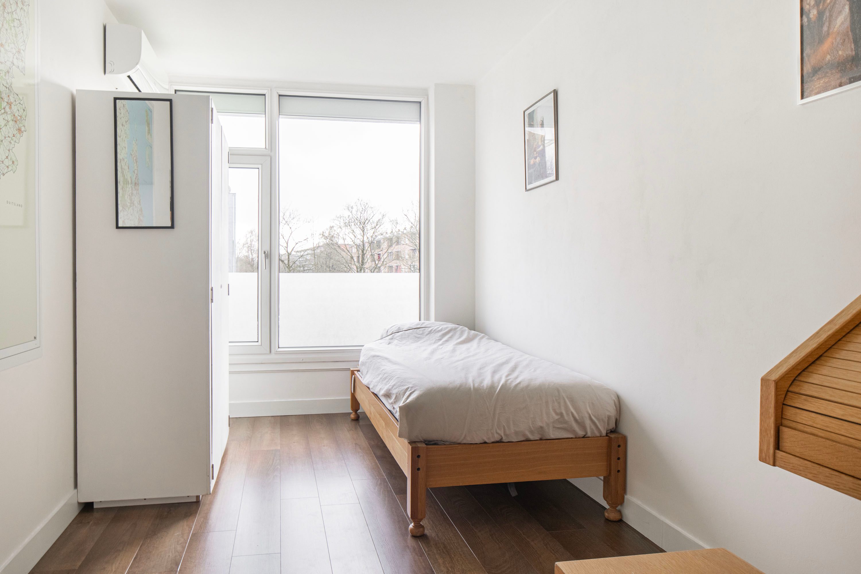 De slaapkamer beschikt over prettige lichtinval en voldoende ruimte voor een bed en kastruimte. Ook de slaapkamer wordt verwarmd en gekoeld middels een airconditioning.