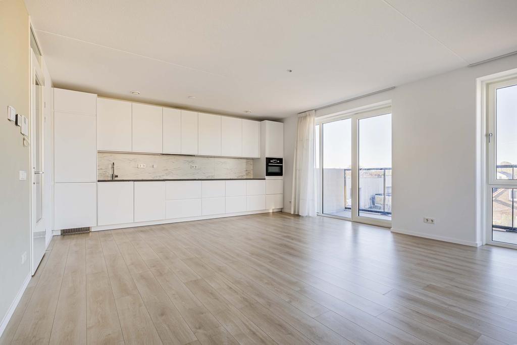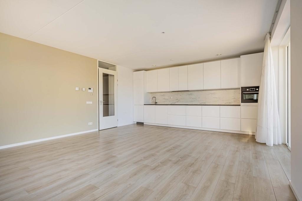Het appartement is voorzien van vele gemakken van nu. De ruime woonkamer met open keuken hebben door de ligging op de zuidwesthoek veel daglicht. Daarnaast is de woonkamer voorzien van in between vitrage/gordijnen van plafond tot vloer in een wittint zowel voor de balkonramen als voor de ramen aan de westkant. Ook heb je vanuit de woonkamer toegang tot het ruime op het zonnige zuiden gelegen balkon.