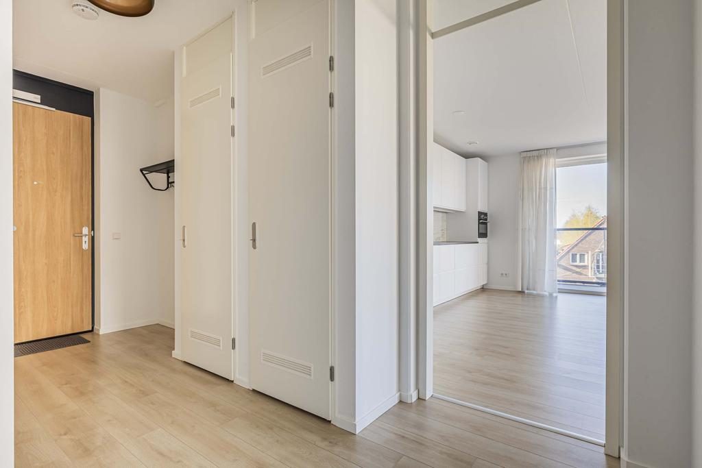 Je komt het appartement binnen via de hal met garderobe (kapstok blijft) waar je toegang hebt tot de woonkamer en overige vertrekken. Het appartement beschikt over Renostuc afgewerkte wanden en een fraaie laminaatvloer. Ook is het appartement voorzien van vloerverwarming.