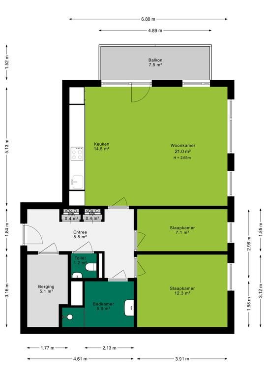 Inpandige berging 5.1 m²