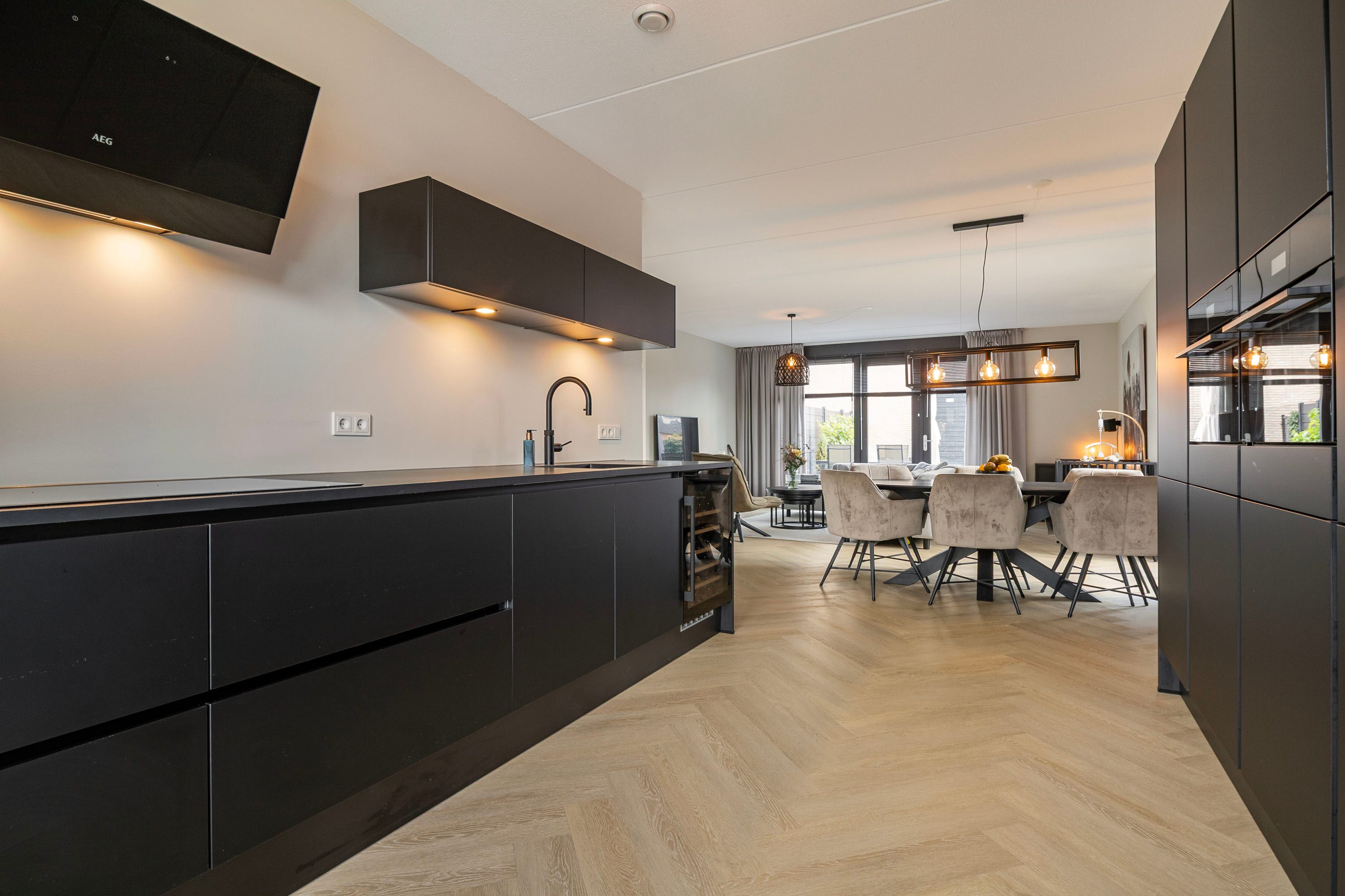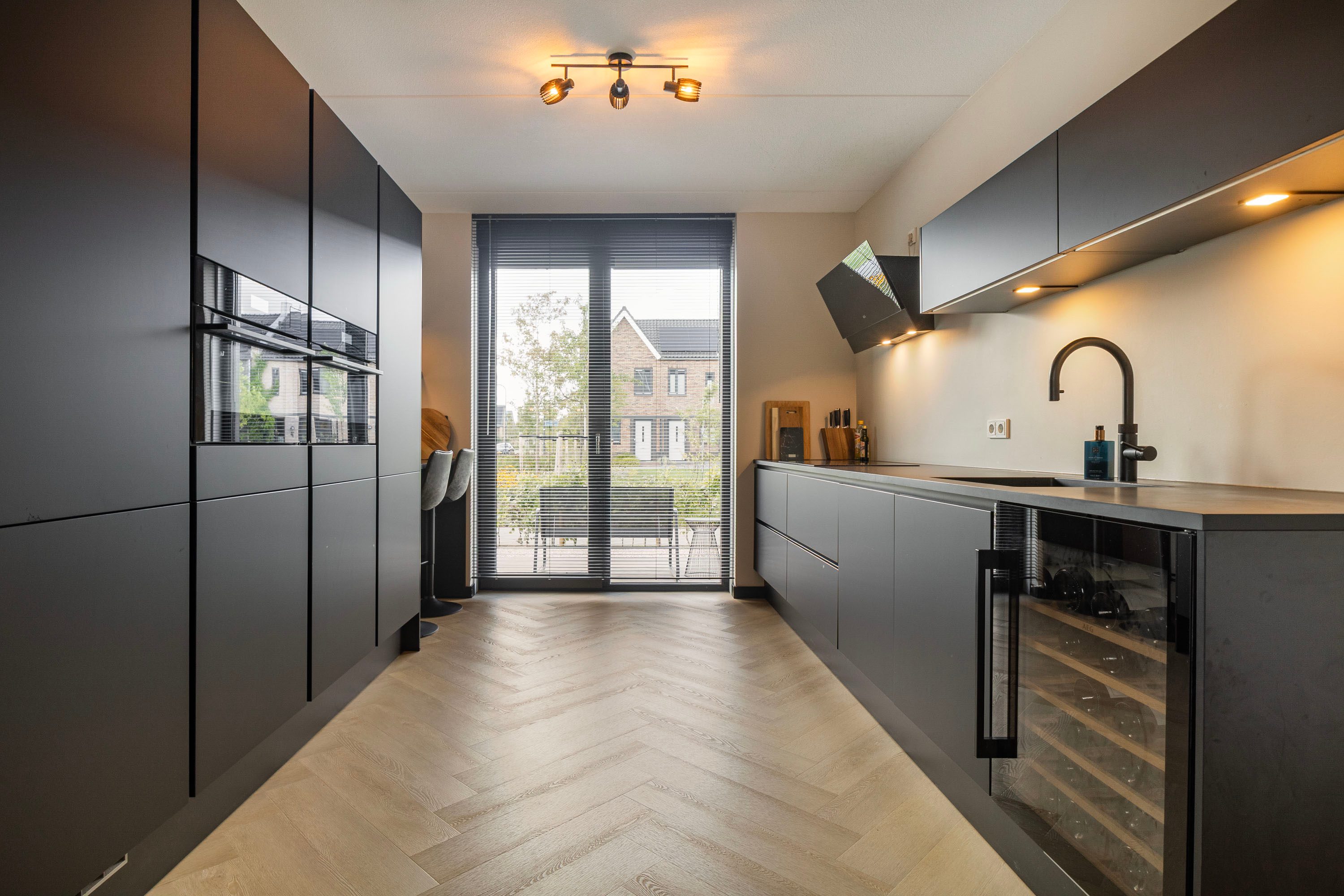 - Luxe zwarte keuken met o.a. een Quooker en wijnklimaatkast