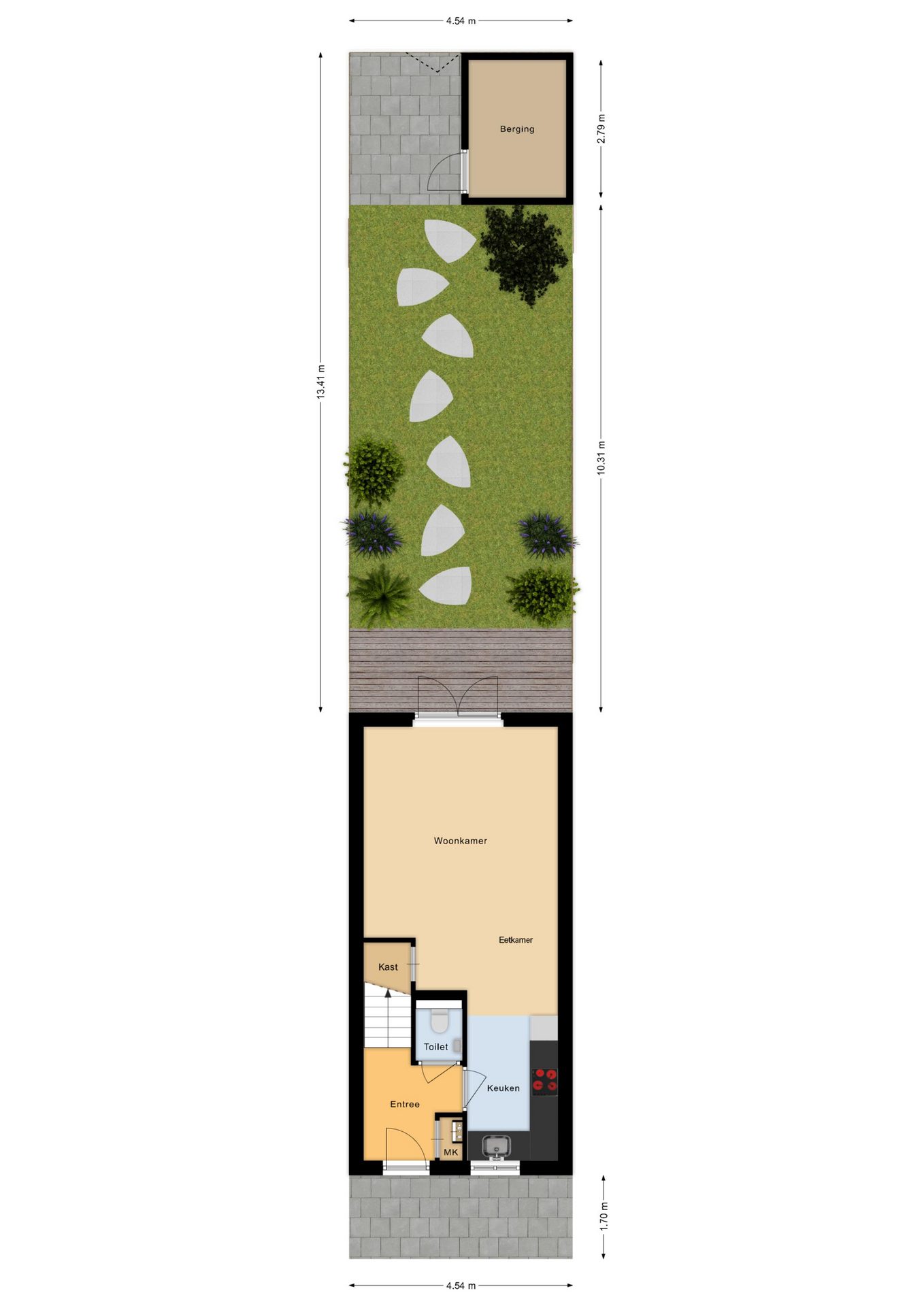 + Diepe tuin gelegen op het noordwesten;
