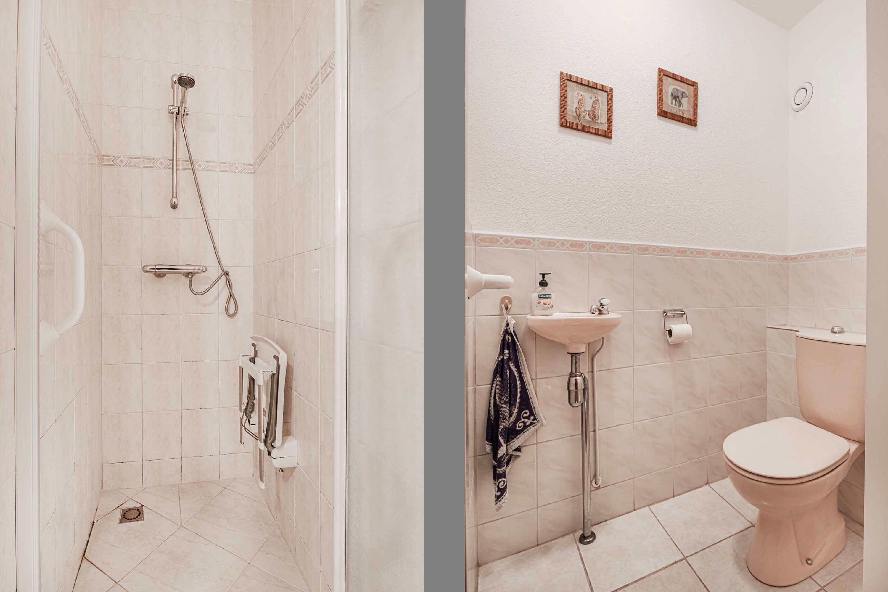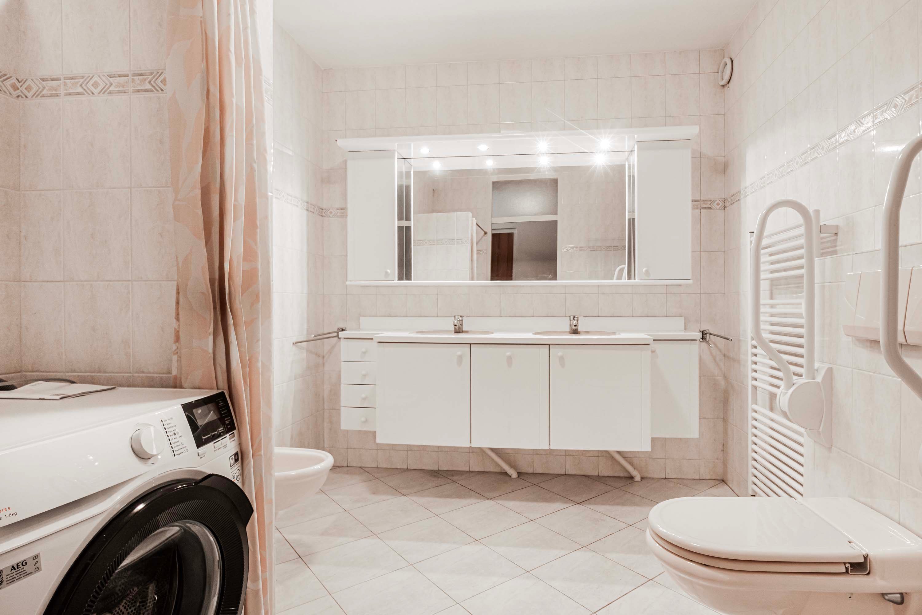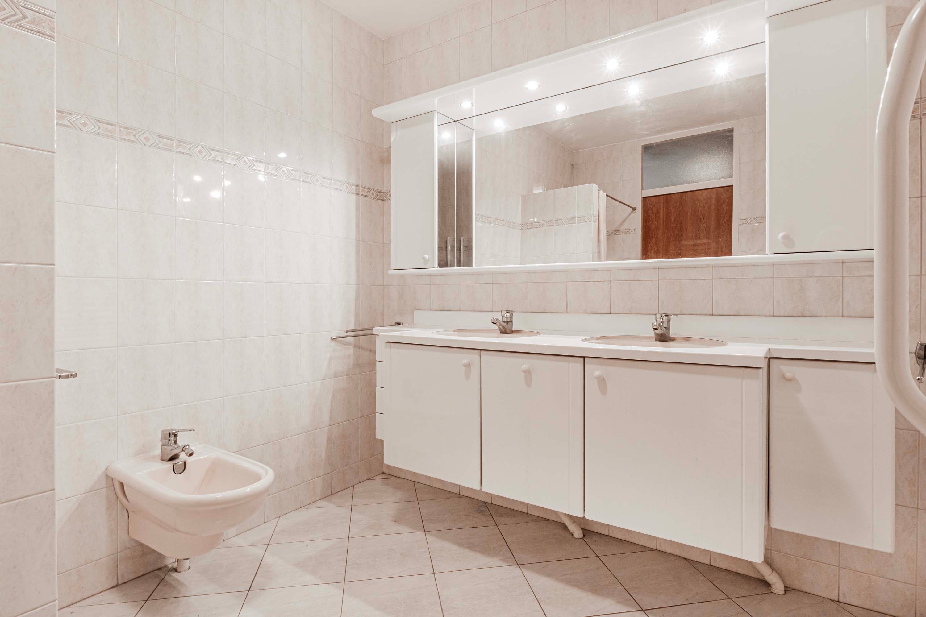 Via de woonkamer zijn twee deuren die leiden naar de hal, welke toegang geeft tot de overige vertrekken. Aan de voorzijde bevindt zich een slaapkamer van 15m², terwijl aan de achterzijde een slaapkamer van circa 9m² is gelegen met directe toegang tot het balkon. De badkamer is voorzien van een dubbele wastafel met meubel, een inloopdouche, een toilet, een bidet en een wasmachineaansluiting. Daarnaast is er een separaat 2e toilet en een praktische inbouwkast met cv-opstelling.