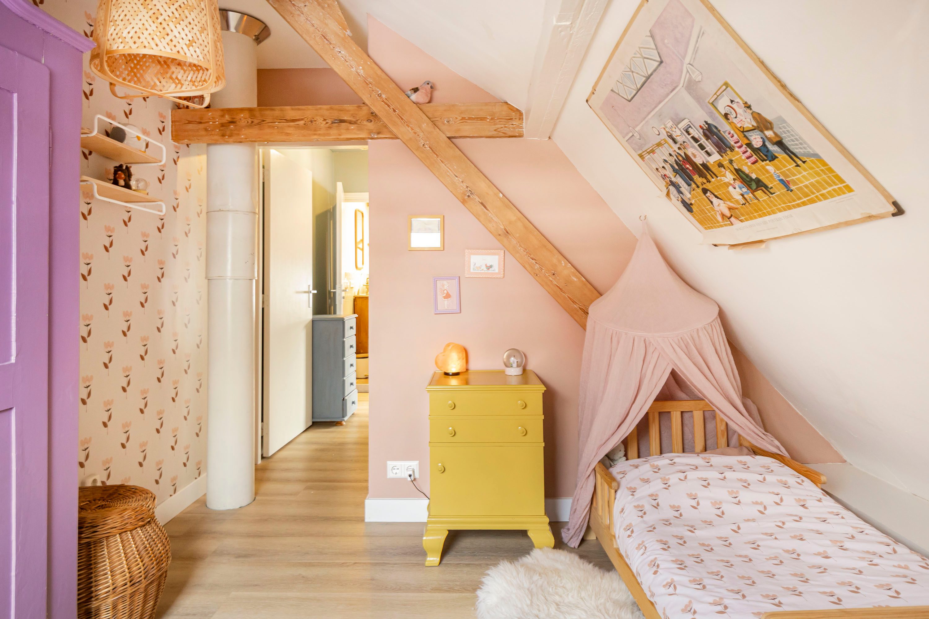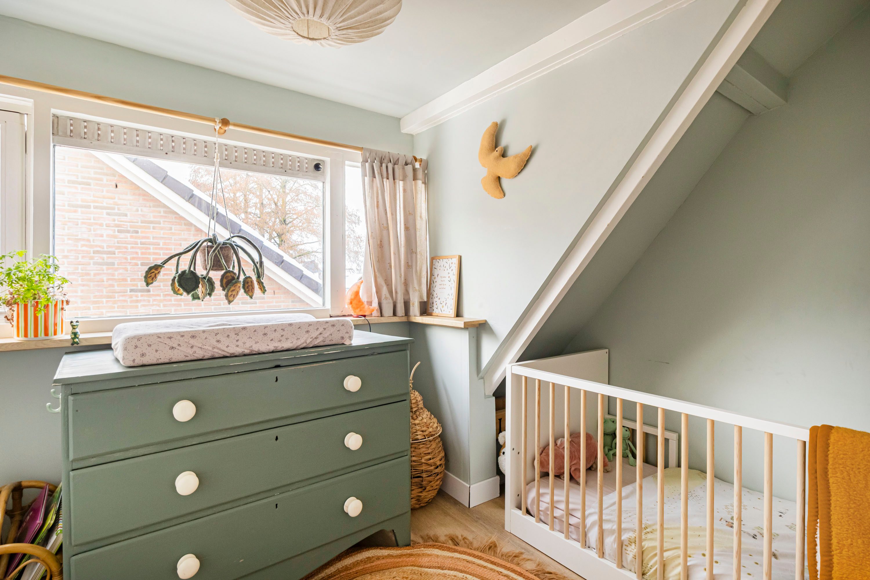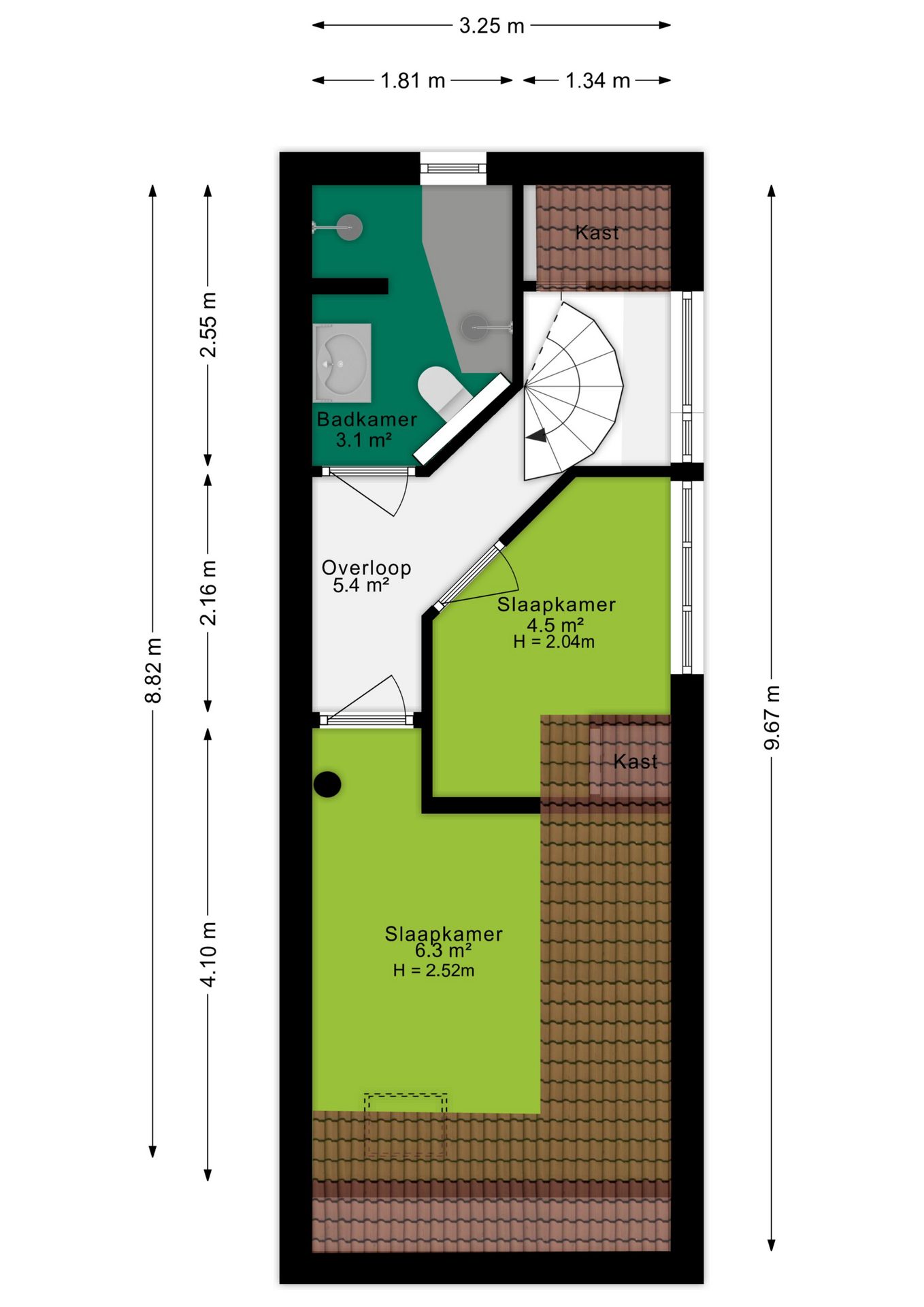 Via een vaste trap bereik je de tweede verdieping, waar zich nog twee slaapkamers bevinden van respectievelijk 4,5 m² en 6,3 m². De kleinste kamer is voorzien van een dakkapel (vernieuwd in 2023), terwijl de grotere kamer beschikt over een dakraam. Daarnaast bevindt zich op deze verdieping een in 2023 vernieuwde/gemoderniseerde badkamer van 3,1 m², die is voorzien van elektrische vloerverwarming en uitgevoerd in een speelse kleurstelling. De badkamer beschikt over een wastafelmeubel, inloopdouche, ligbad en toilet, wat zorgt voor optimaal comfort.