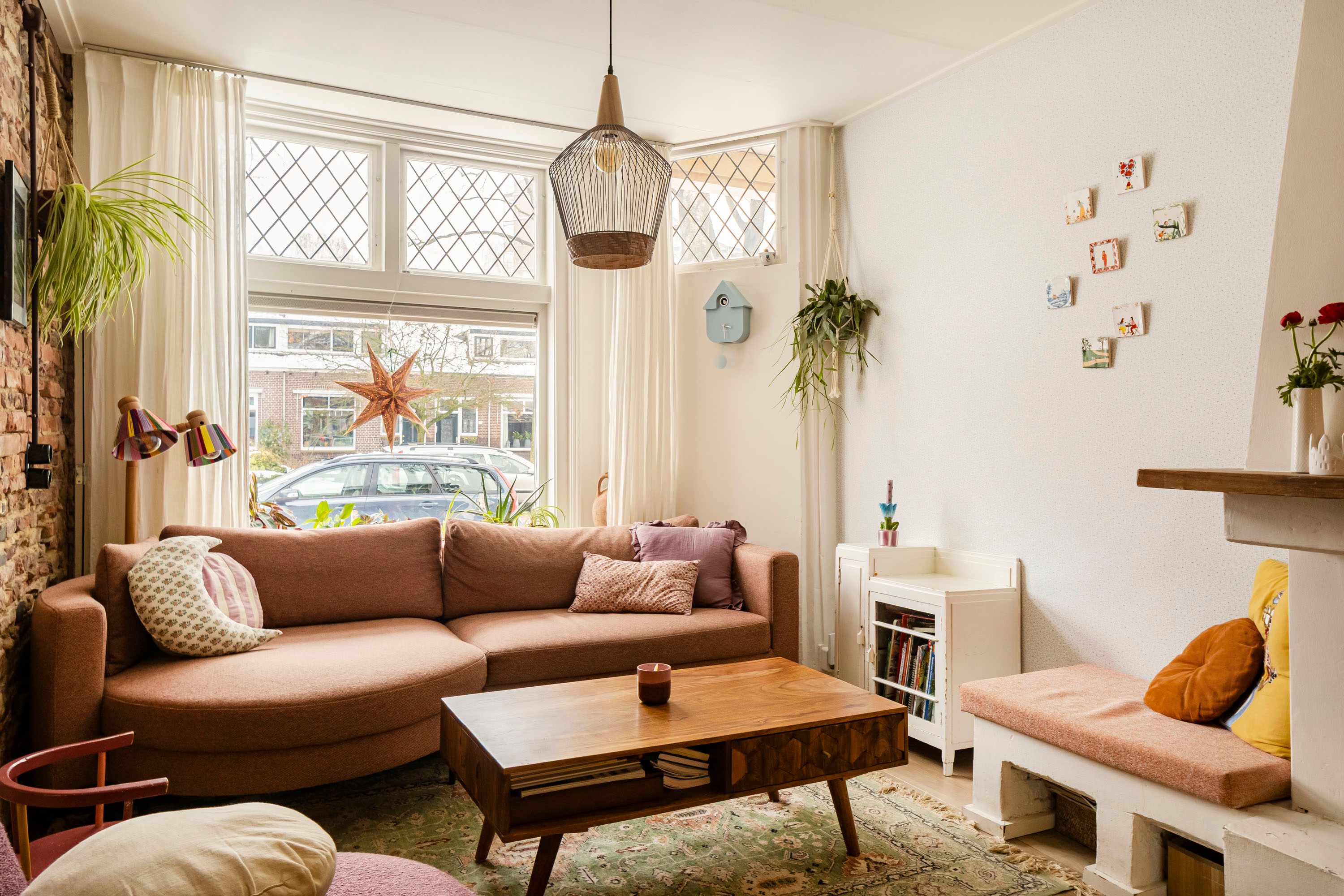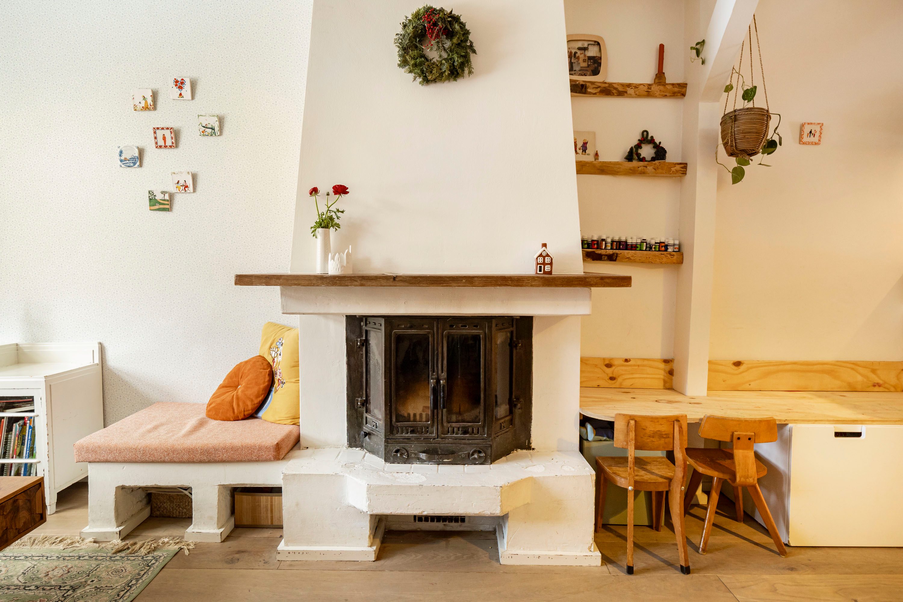 Via de entree kom je direct binnen in de lichte woonkamer van 16,4 m². De sfeervolle erker zorgt voor een prettige lichtinval en biedt voldoende ruimte voor een comfortabele hoekbank en een gezellige zithoek. De open haard maakt deze ruimte extra aangenaam tijdens de koude wintermaanden.