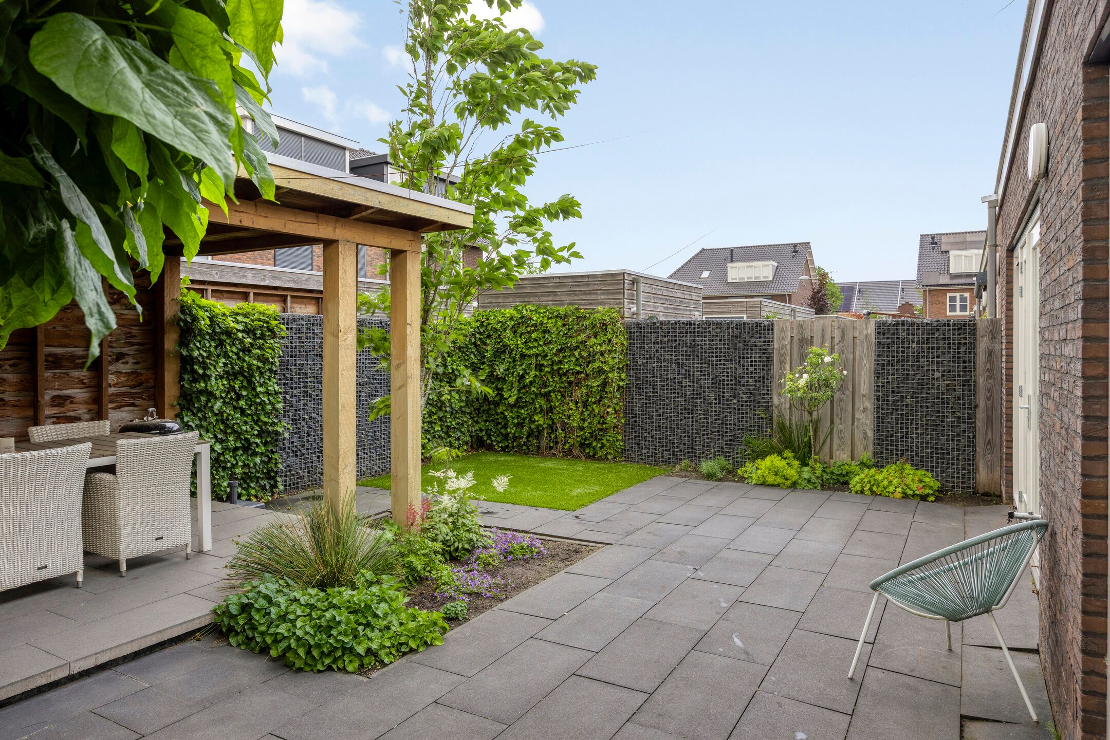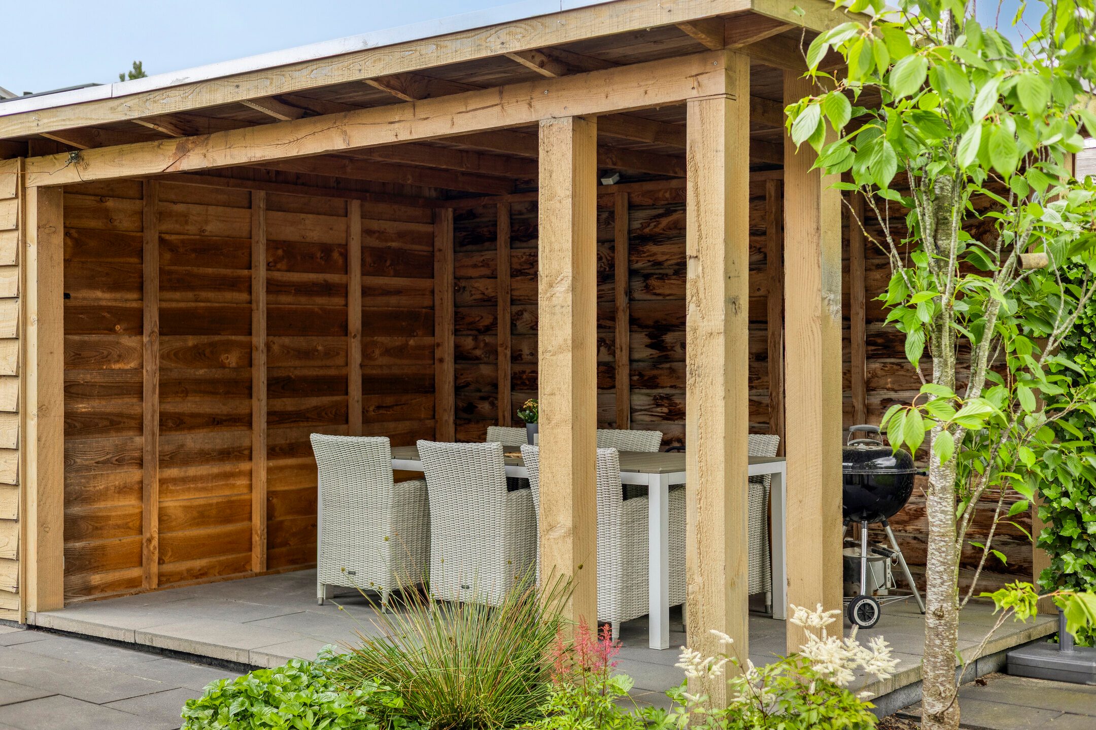 De doordachte inrichting van de tuin maakt het een ideale plek om te genieten van rust, gezelligheid en buitenleven.