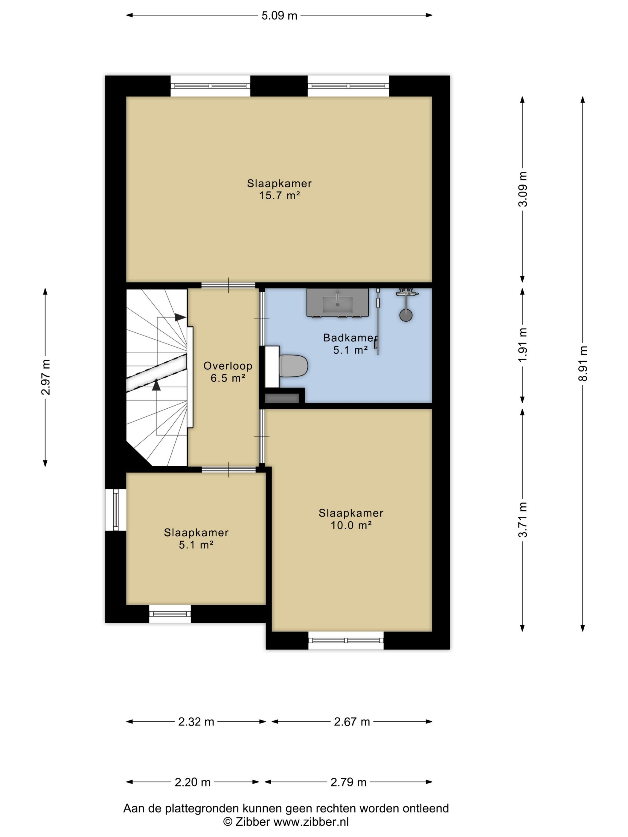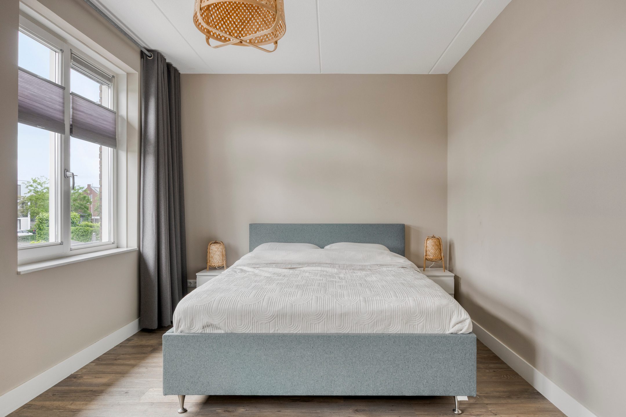 Via de vaste trap bereik je de eerste verdieping. Vanaf de overloop heb je toegang tot drie slaapkamers en de badkamer. De grootste slaapkamer van 15,7 m² bevindt zich aan de achterzijde van de woning en biedt voldoende ruimte voor een royale kastenwand. Aan de voorzijde van de woning liggen de tweede en derde slaapkamers van 10 m² en 5.1 m², beide voorzien van grote ramen die zorgen voor veel natuurlijk licht.