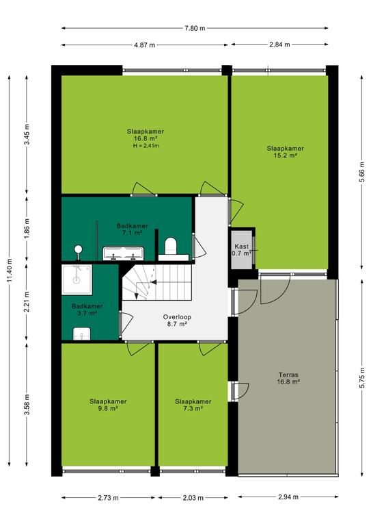 • Vijf ruime slaapkamers