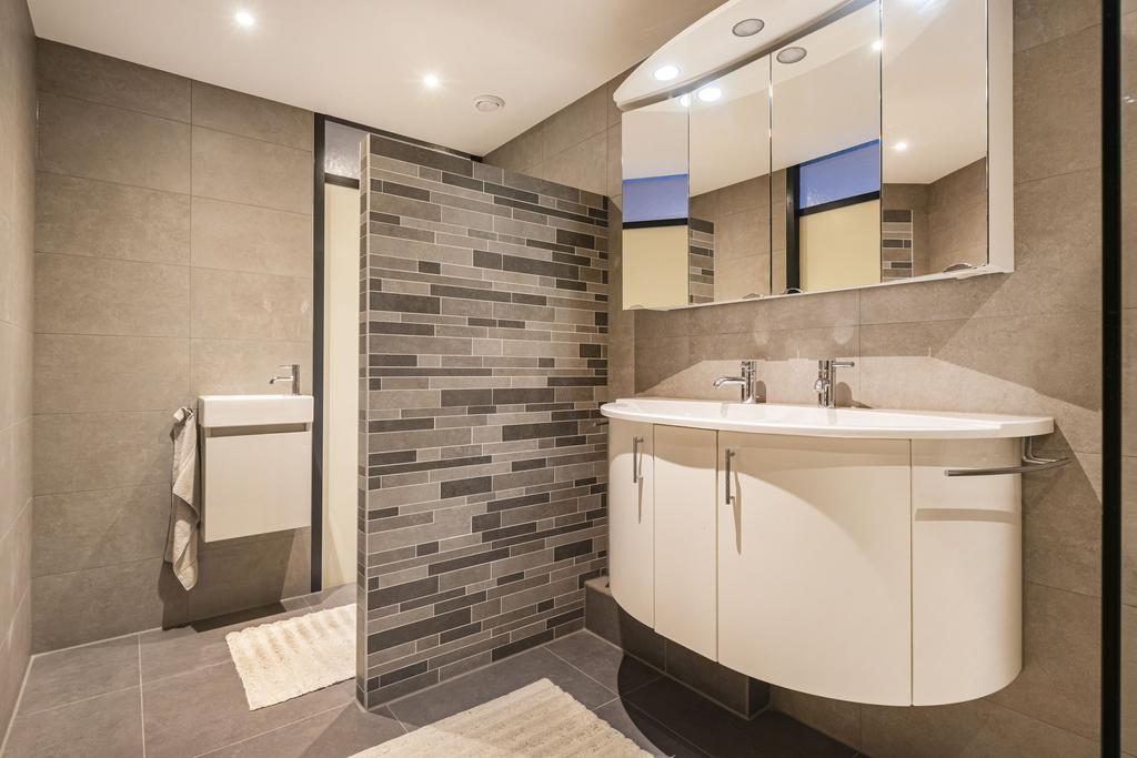 Op deze verdieping bevinden zich tevens twee badkamers. De grootste badkamer is in 2020 volledig gerenoveerd en voorzien van luxe afwerkingen: een grote inloopdouche met regendouche, een dubbele wastafel met bergmeubel, een spiegelkast en een tweede toilet. De tweede badkamer is eveneens netjes afgewerkt en beschikt over een douchecabine en een wastafel – perfect voor gasten, logees of kinderen.