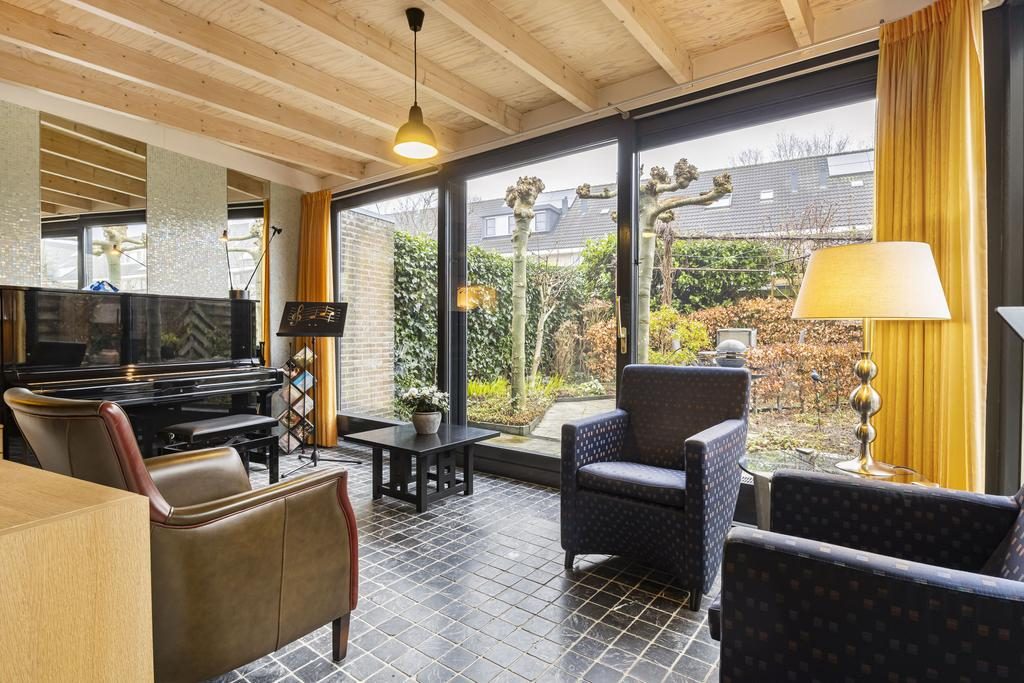 Bij binnenkomst ervaar je direct de ruimtelijkheid en strakke afwerking. De royale woonkamer van maar liefst 56 m² is tuingericht en dankzij de grote schuifpui geniet je volop van het daglicht en de groene achtertuin. Een sfeervolle houtkachel biedt, indien gewenst, extra warmte en gezelligheid op koude dagen. De woonkamer is uitgebouwd en voorzien van een fraai houten balkenplafond en veel glas rondom, wat de ruimte bijna doet aanvoelen als een tuinkamer.