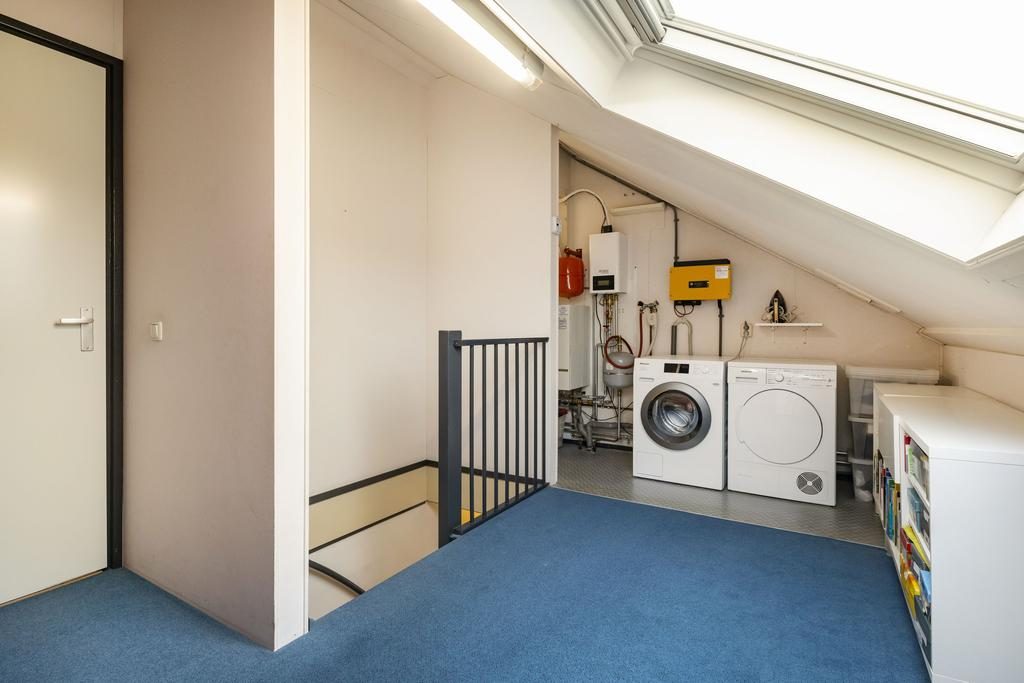 De tweede verdieping, bereikbaar via een vaste trap, biedt een ruime voorzolder met witgoedaansluitingen, de cv-installatie, een hybride warmtepomp en de omvormer voor de zonnepanelen. Daarnaast is hier een vijfde slaapkamer gecreëerd met een dakkapel (voorzien van rolluiken), waardoor het een ideale werk-, hobby- of logeerkamer is.