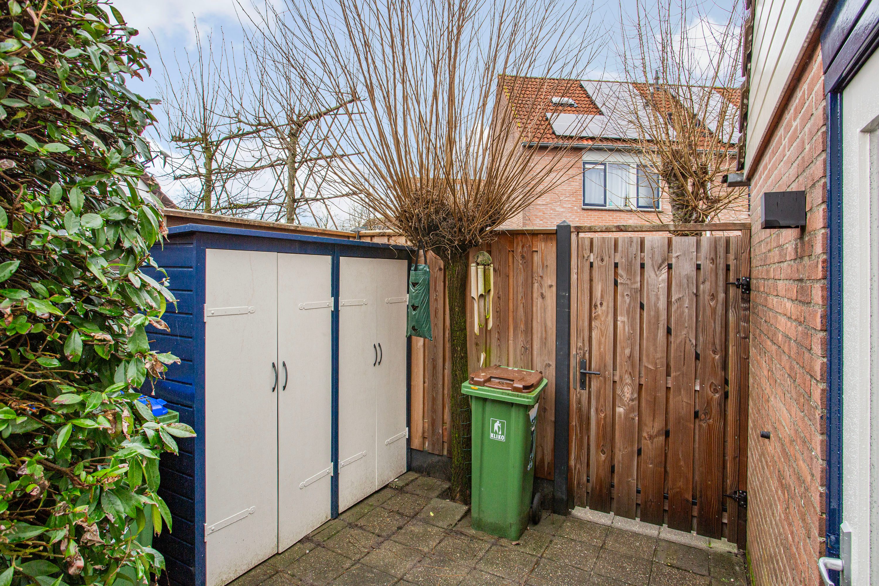 De tuin heeft een zeer prettige indeling en er zijn gemakkelijk meerdere terrasjes of speelplekjes te creëren. Door de goede diepte is er altijd wel een plek in de zon of de schaduw te vinden. Aan de achterzijde van de tuin bevindt zich een handig schuurtje en een achterom.