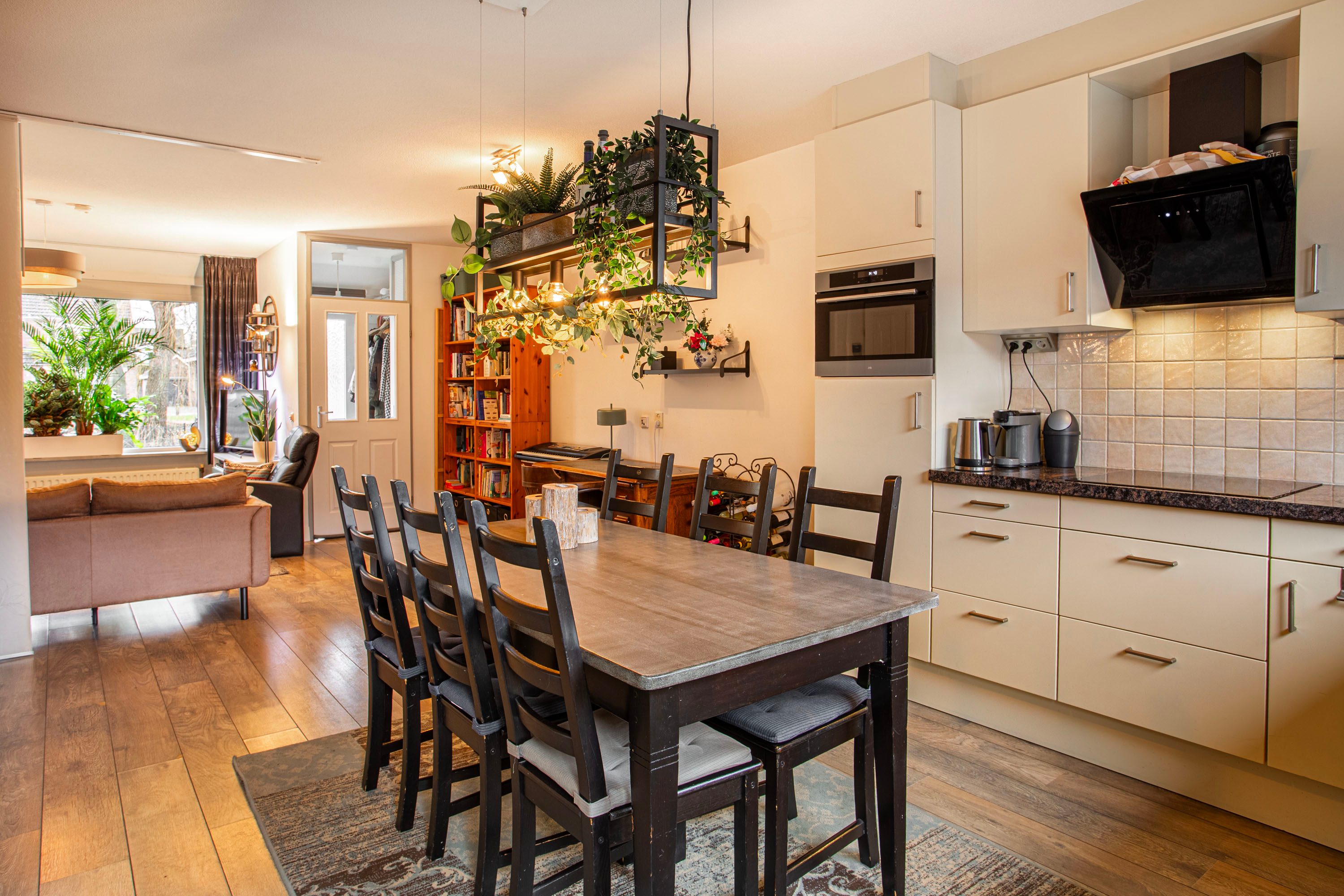 Via de hal en entree met meterkast is de woonkamer te bereiken. De woonkamer heeft een afmeting van maar liefst ca. 32m², is voorzien van heerlijk veel lichtinval, een sfeervolle hoog rendements haard en laminaatvloer. Door de ruime indeling is er plek genoeg voor een grote eettafel en ontstaat er een gezellige verbinding tussen de woonkamer en de keuken. De keuken heeft een lichte kleurstelling en beschikt over diverse inbouwapparatuur: een inductiekookplaat, afzuigkap, combi-oven/ magnetron, close-in boiler, koel-vriescombinatie en vaatwasser.