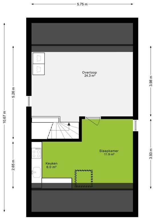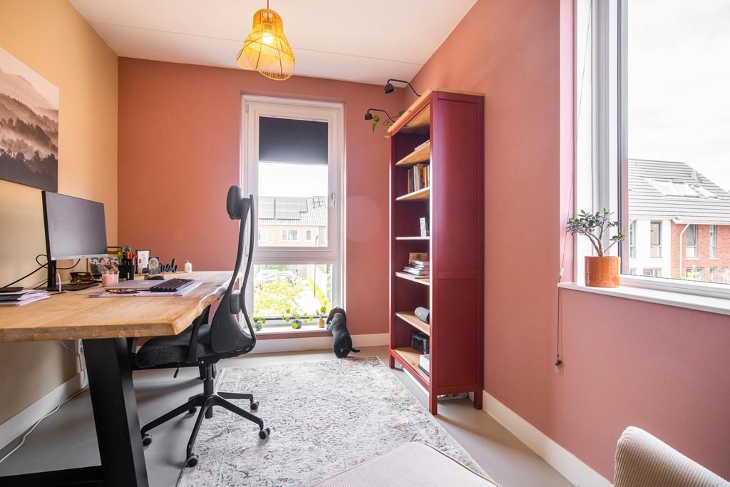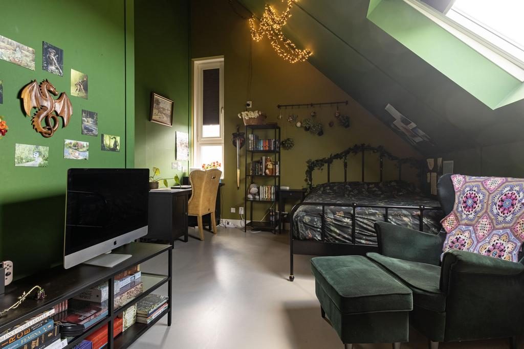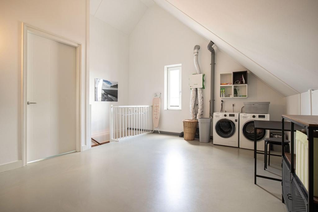 Bij het betreden van de tweede verdieping zult u direct verbaasd zijn over de hoogte van deze verdieping en de ruimte die deze met zich meebrengt. De ruimte is nu ingericht voorzolder met bergruimte en met de opstelling van de was apparatuur, ventilatie-unit. Er is daarnaast ruimte genoeg voor een werkplek. Verder op deze verdieping een ruime vierde slaapkamer met dak- en gevelraam. Deze slaapkamer beschikt over vloerverwarming-/koeling en is voorzien van een praktische inbouwkeuken die is uitgerust met warm- en koud stromend water, inductie kookplaat, oven, koelkast en afzuigkap.
