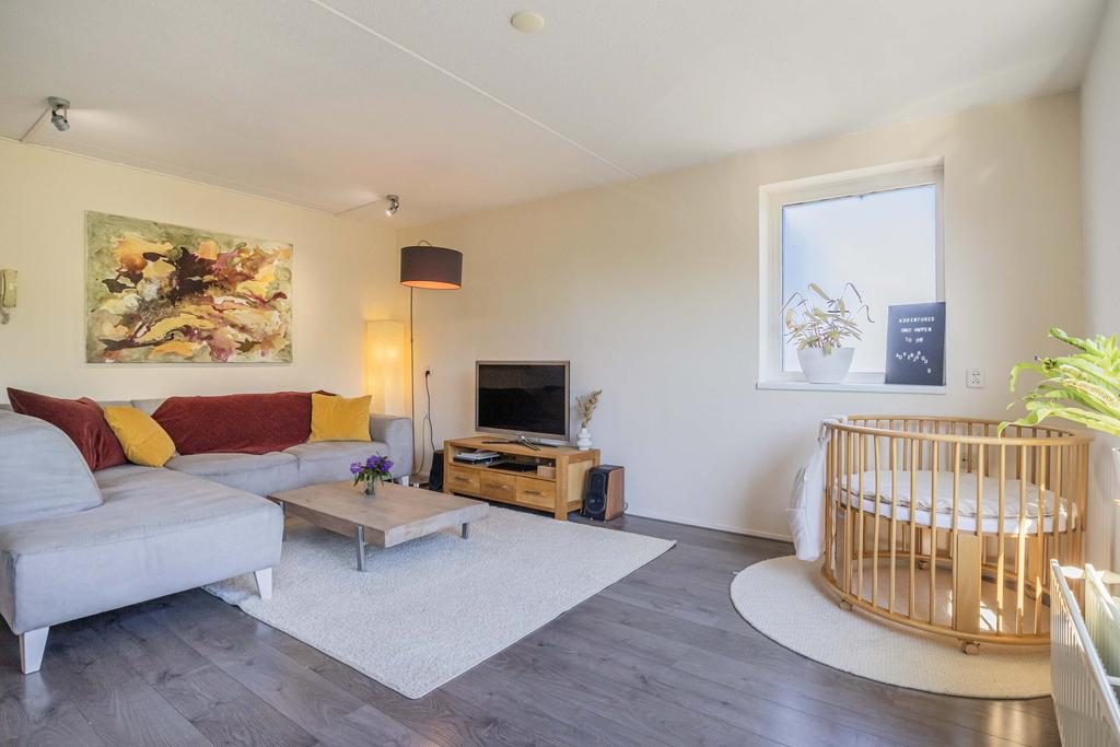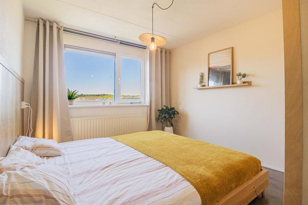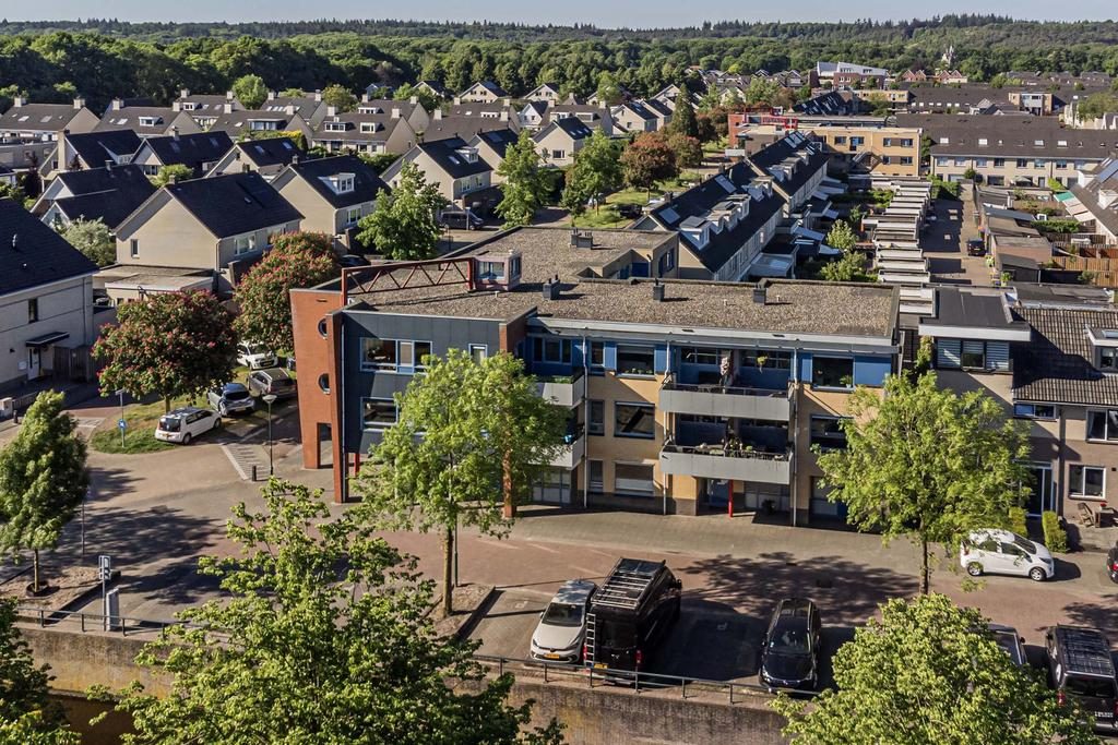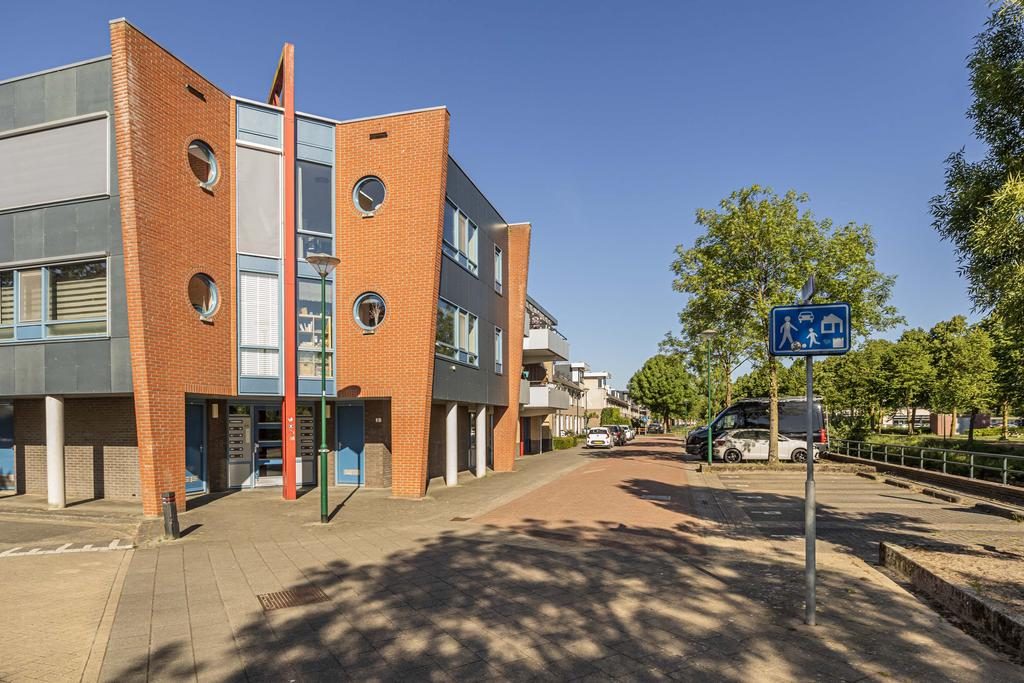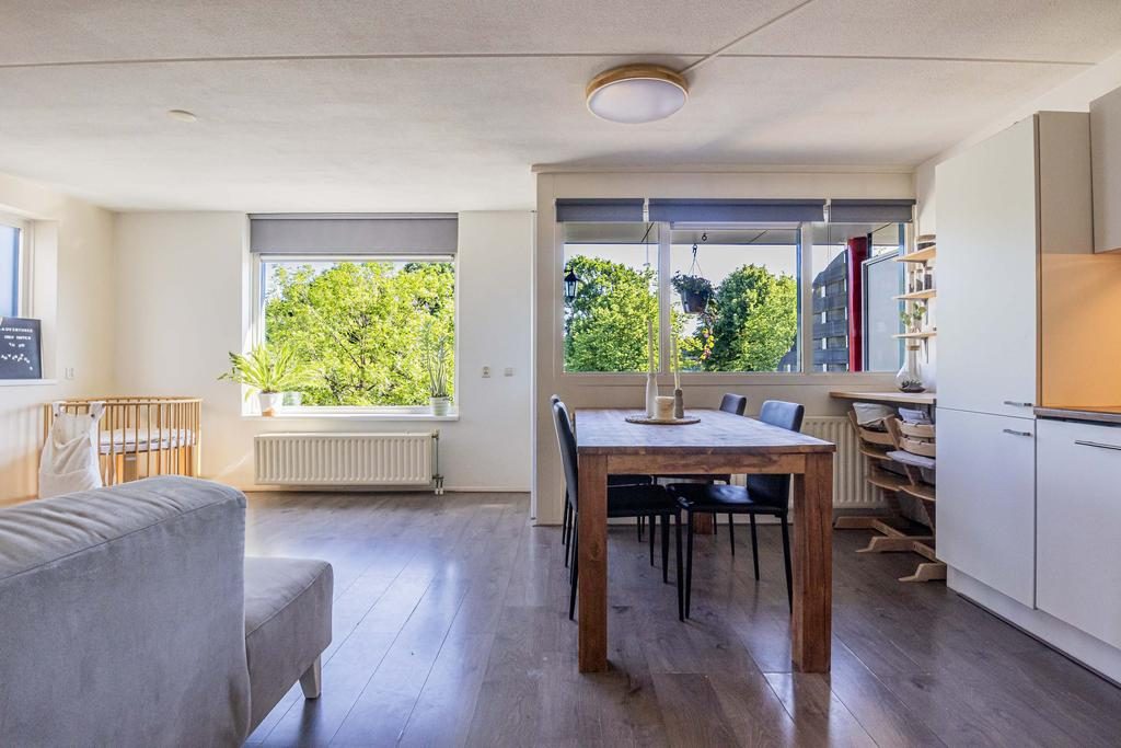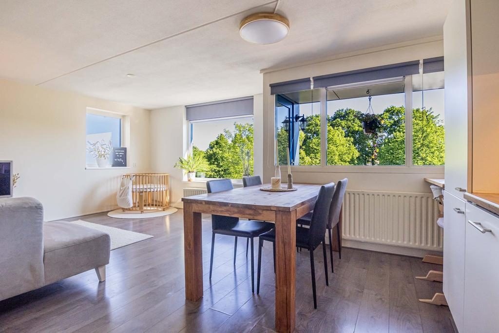Op de hoogste verdieping, op een beschutte hoeklocatie en met een van de mooiste uitzichten van Petenbos: dit lichte appartement biedt volop privacy, geen inkijk, en een levendig uitzicht over groen en spelende kinderen.
