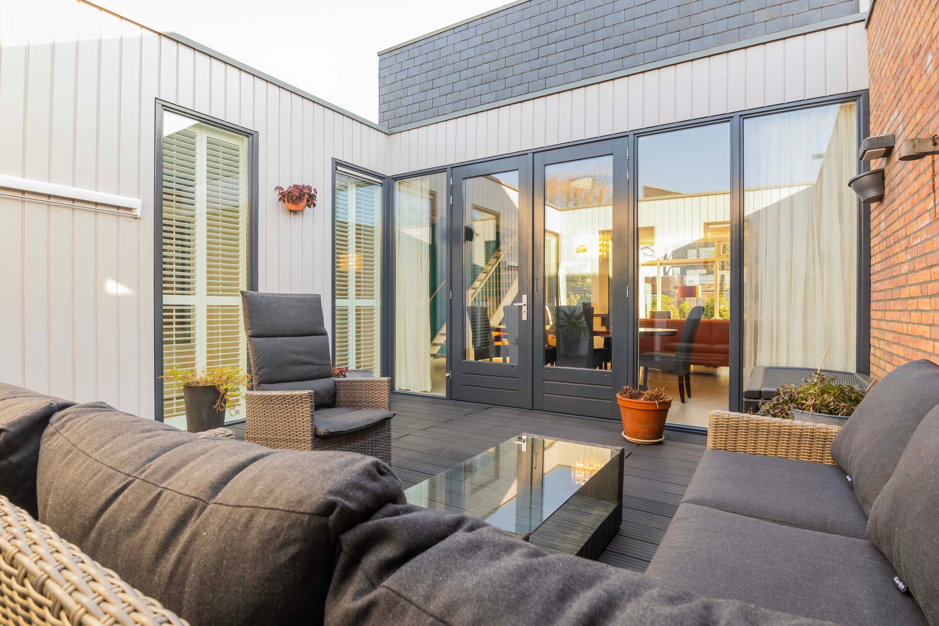 Levensloopbestendige woning met patio en zij-tuin.