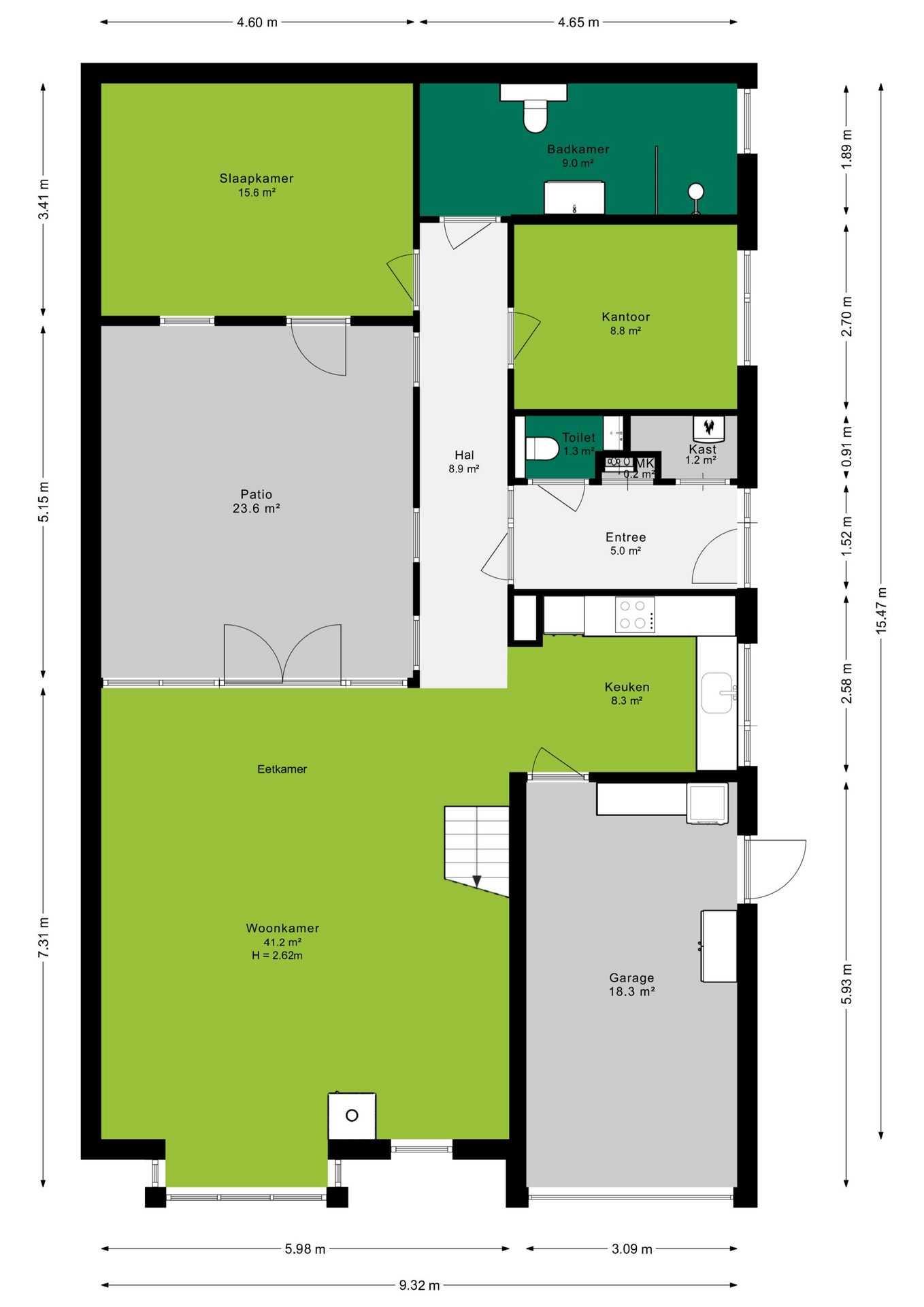 - 2x slaap- en badkamer op de begane grond