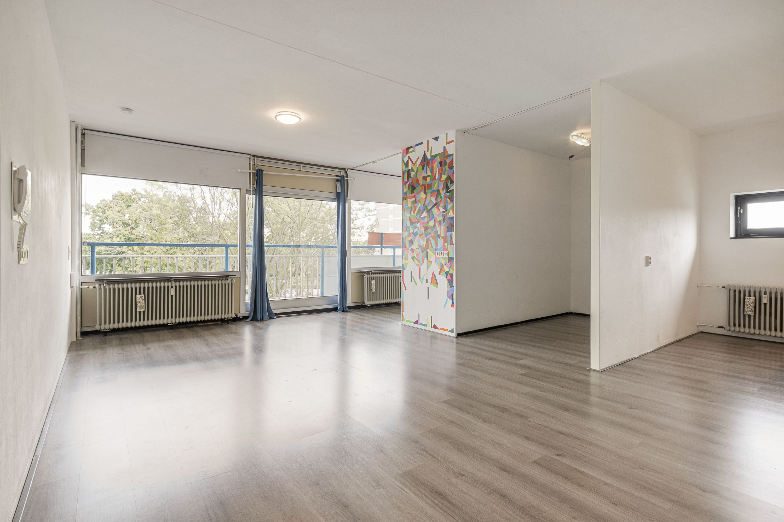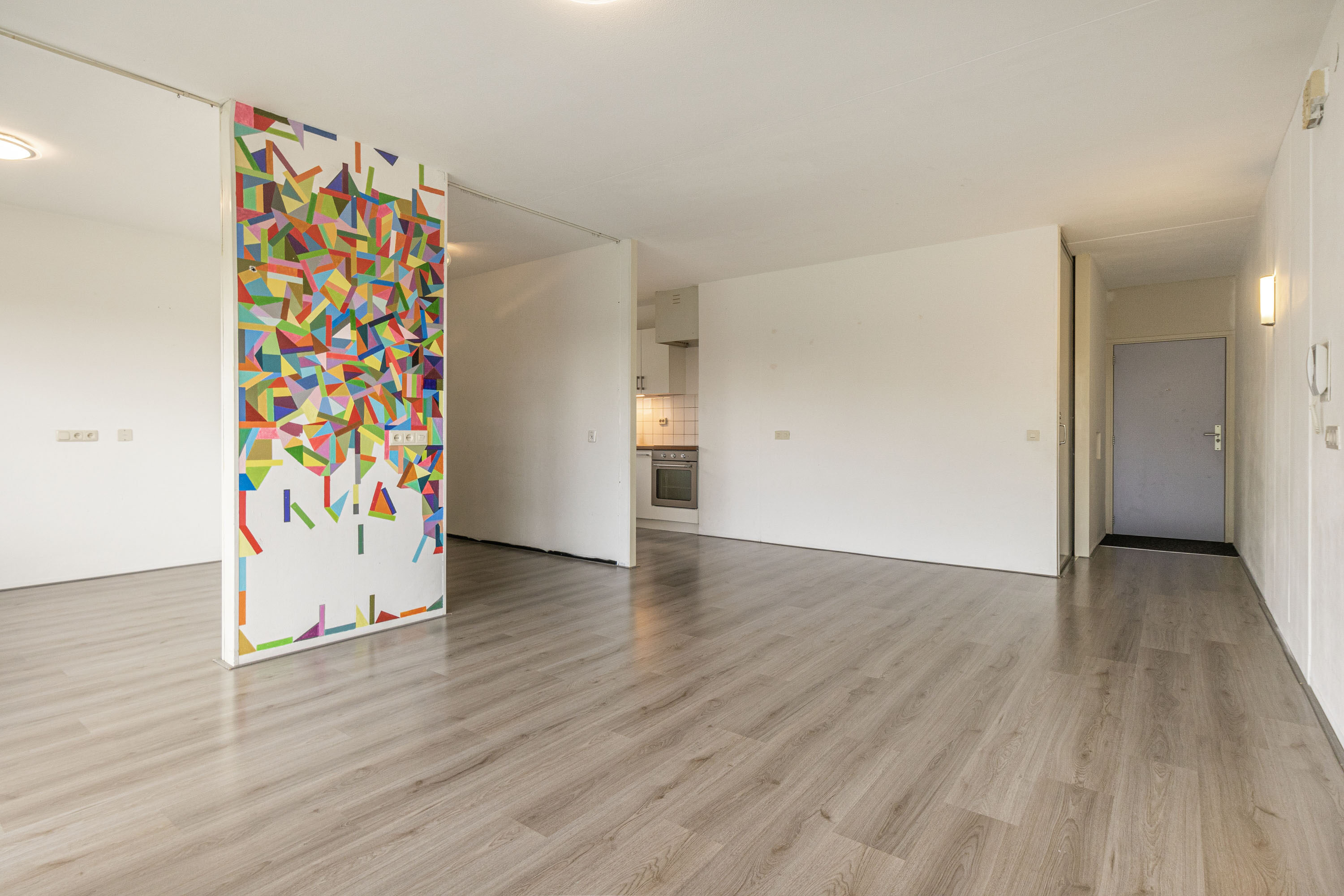 Het appartement is toegankelijk via een entree met hal, die leidt naar een ruime woonkamer en toegang biedt naar de badkamer. Bij binnenkomst in de woonkamer valt direct het fijne lichtinval en het uitzicht op, heerlijk groen en vrij. De woonkamer is voorzien van een nette laminaatvloer uit 2020. Vanuit de woonkamer beschik je over toegang naar het balkon, welke zich uitstrekt over de gehele breedte van het appartement en met een ligging op het oosten kan je hier genieten van het buitenleven. De open keuken beschikt over een keuken in rechte opstelling, uitgerust met inbouwapparatuur zoals een kookplaat, oven en vaatwasser. De keuken is in 2023 vernieuwd en door de hoekligging van het appartement beschik je hier over een extra raam.