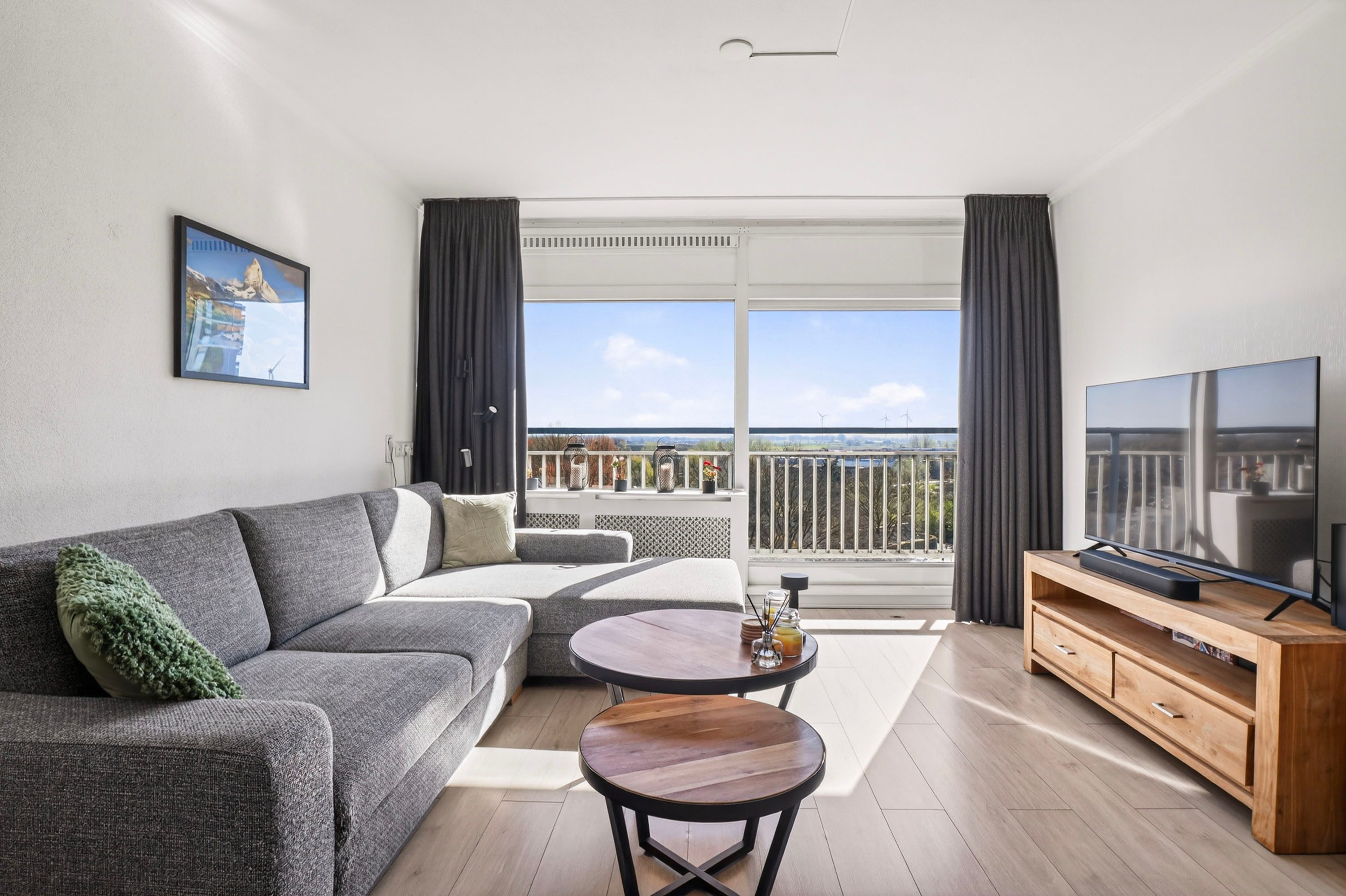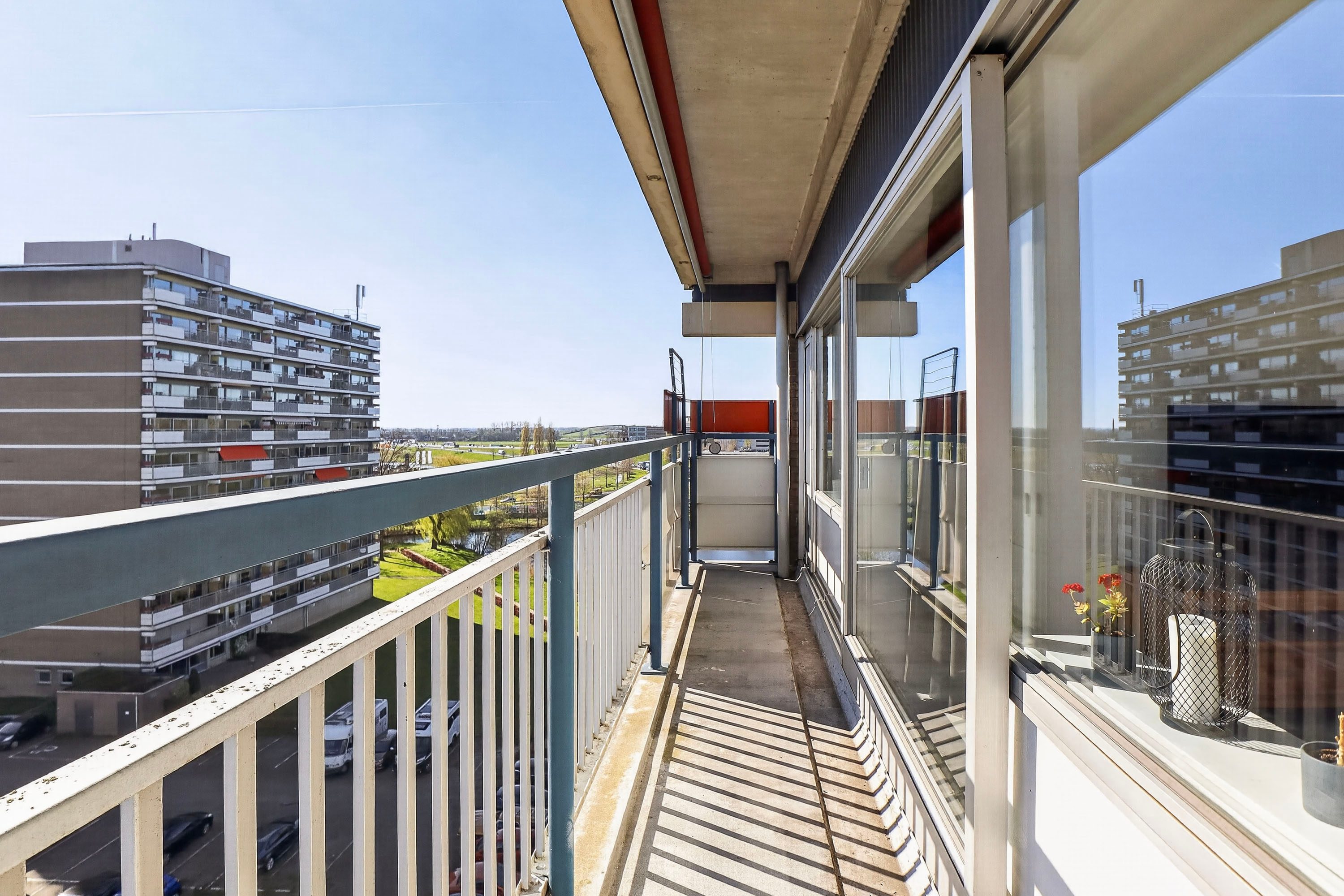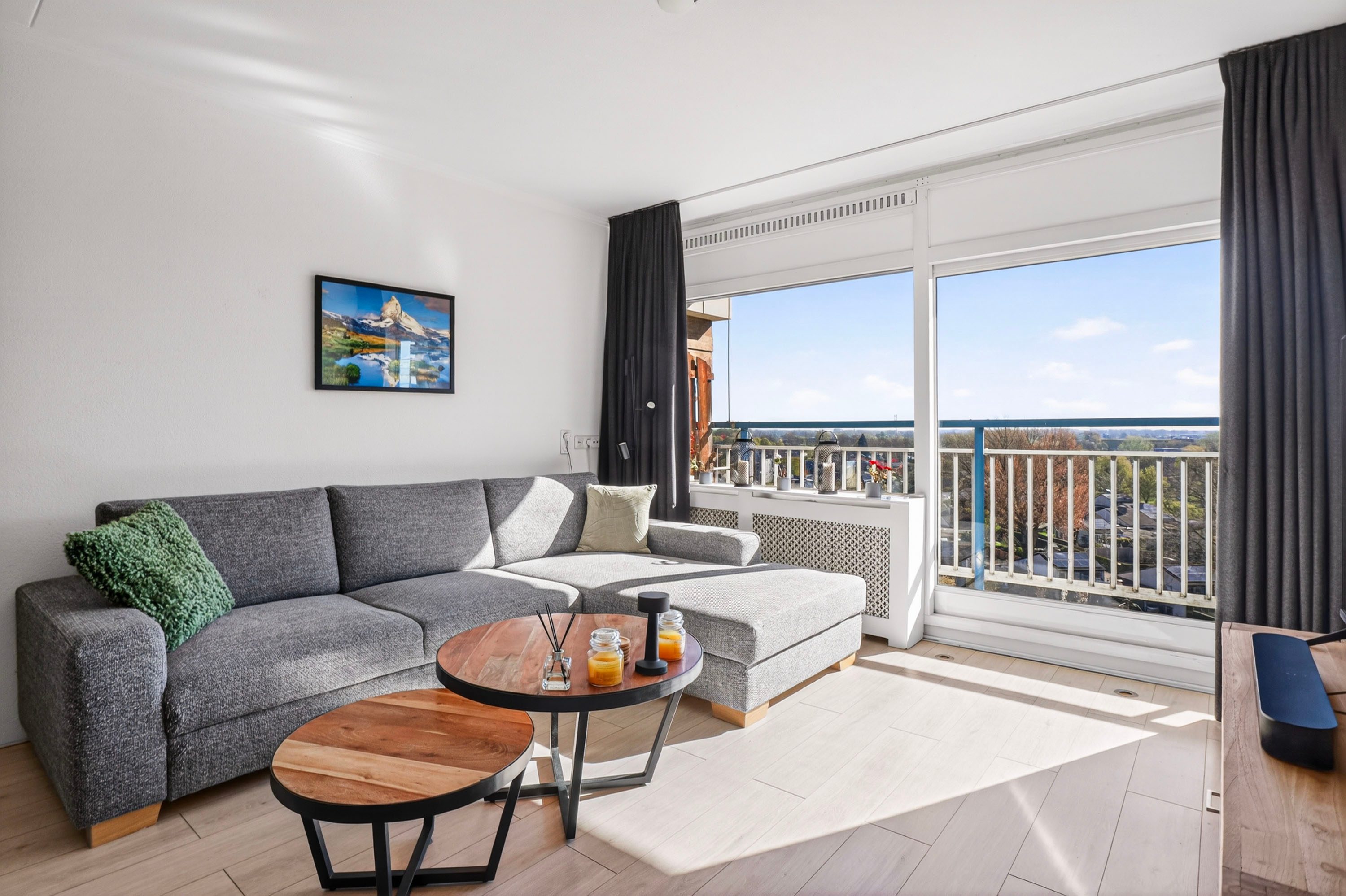 Bij binnenkomst word je direct verrast door de lichte en ruime woonkamer van circa 22 m². Dankzij de grote raampartijen geniet je hier van een prettige lichtinval en een mooi, vrij uitzicht. Vanuit de woonkamer heb je toegang tot het balkon over de volle breedte van het appartement, gelegen op het oosten, de perfecte plek om de dag te beginnen met een kop koffie in de zon.