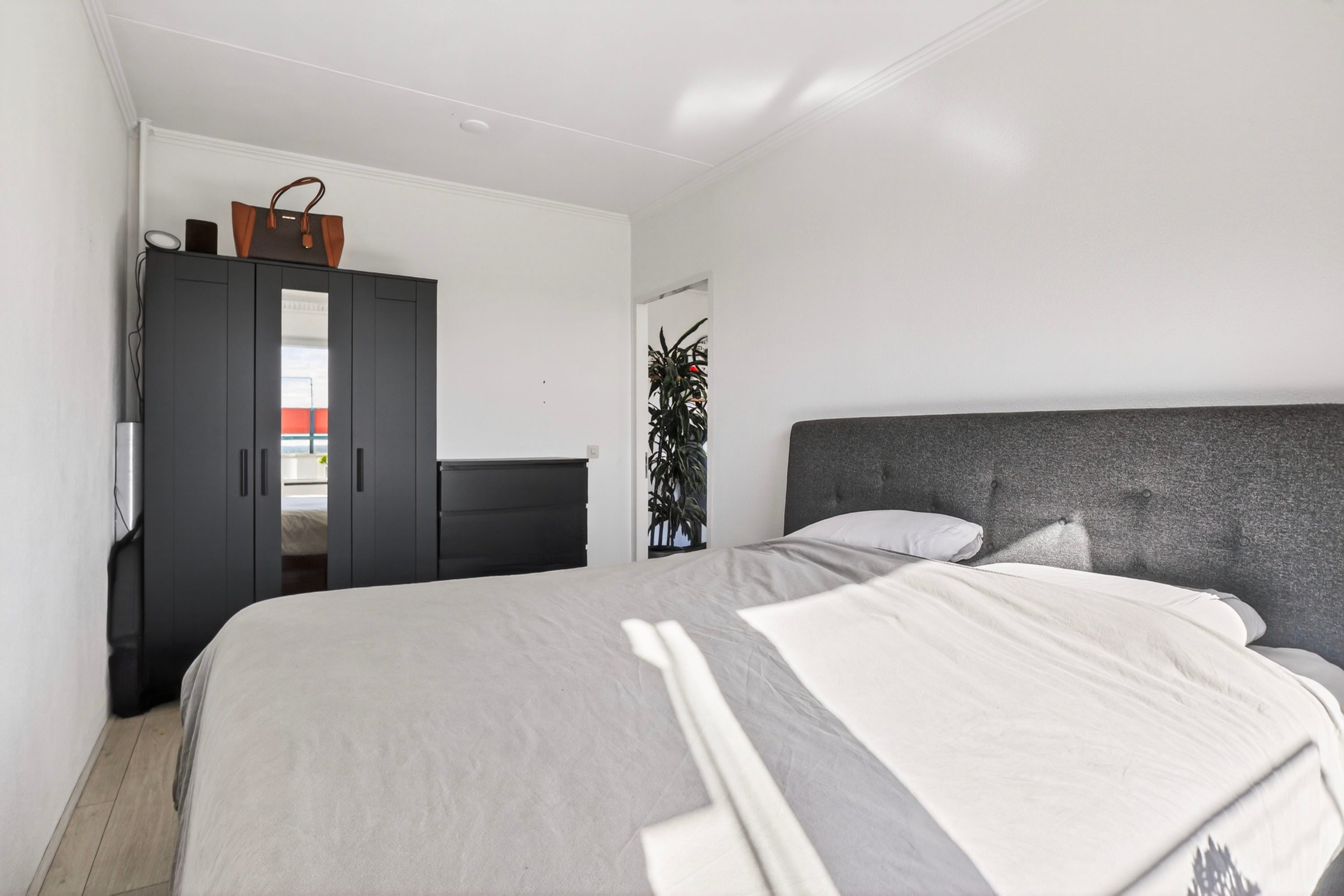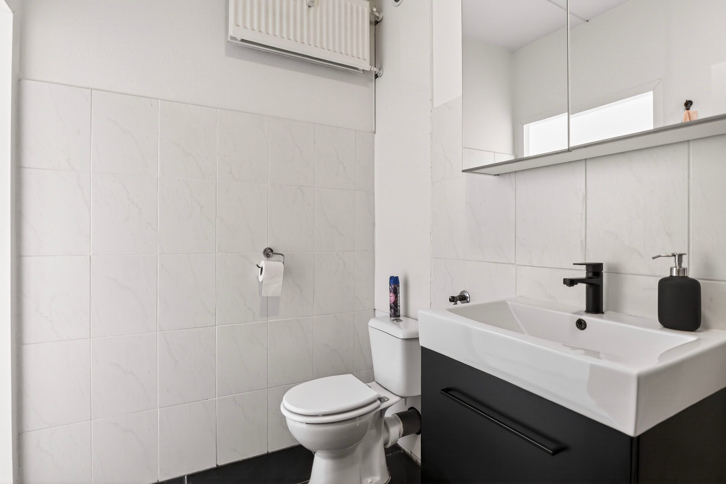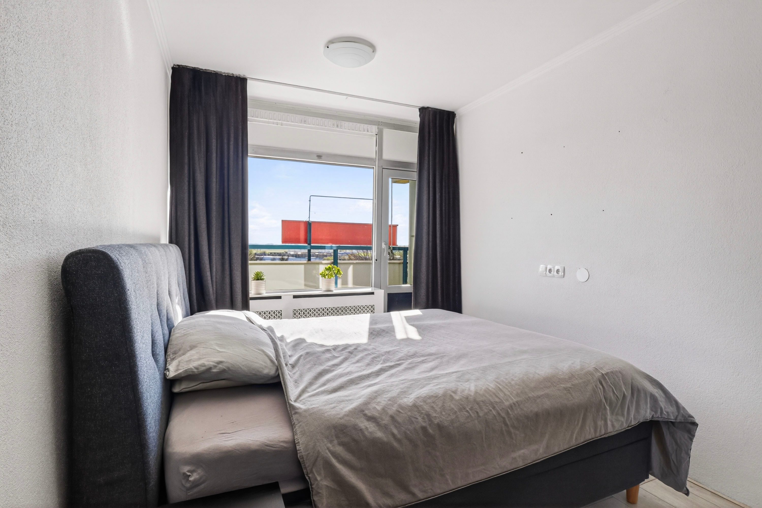 Het appartement beschikt over een comfortabele slaapkamer van circa 11 m², die direct toegang biedt tot het balkon, heerlijk om ’s ochtends de dag fris te beginnen. De badkamer is compleet en praktisch ingericht met een douche, wastafel, toilet en de aansluiting voor de wasmachine, waardoor je hier van alle gemakken bent voorzien.