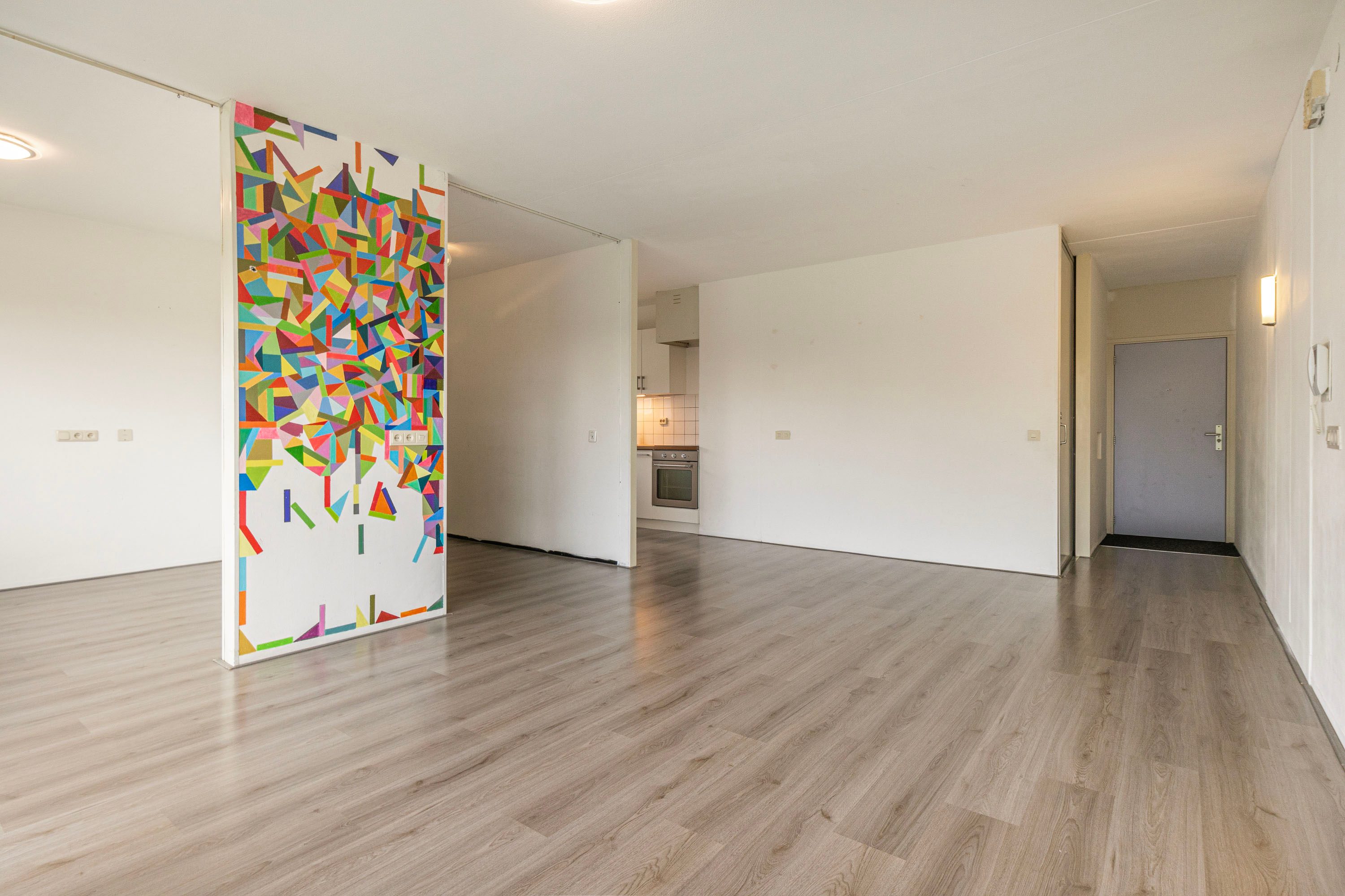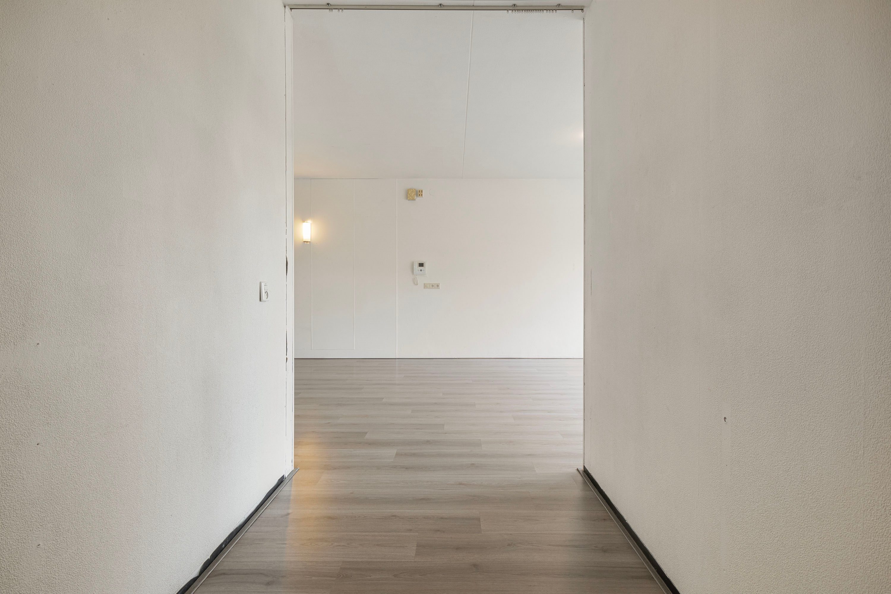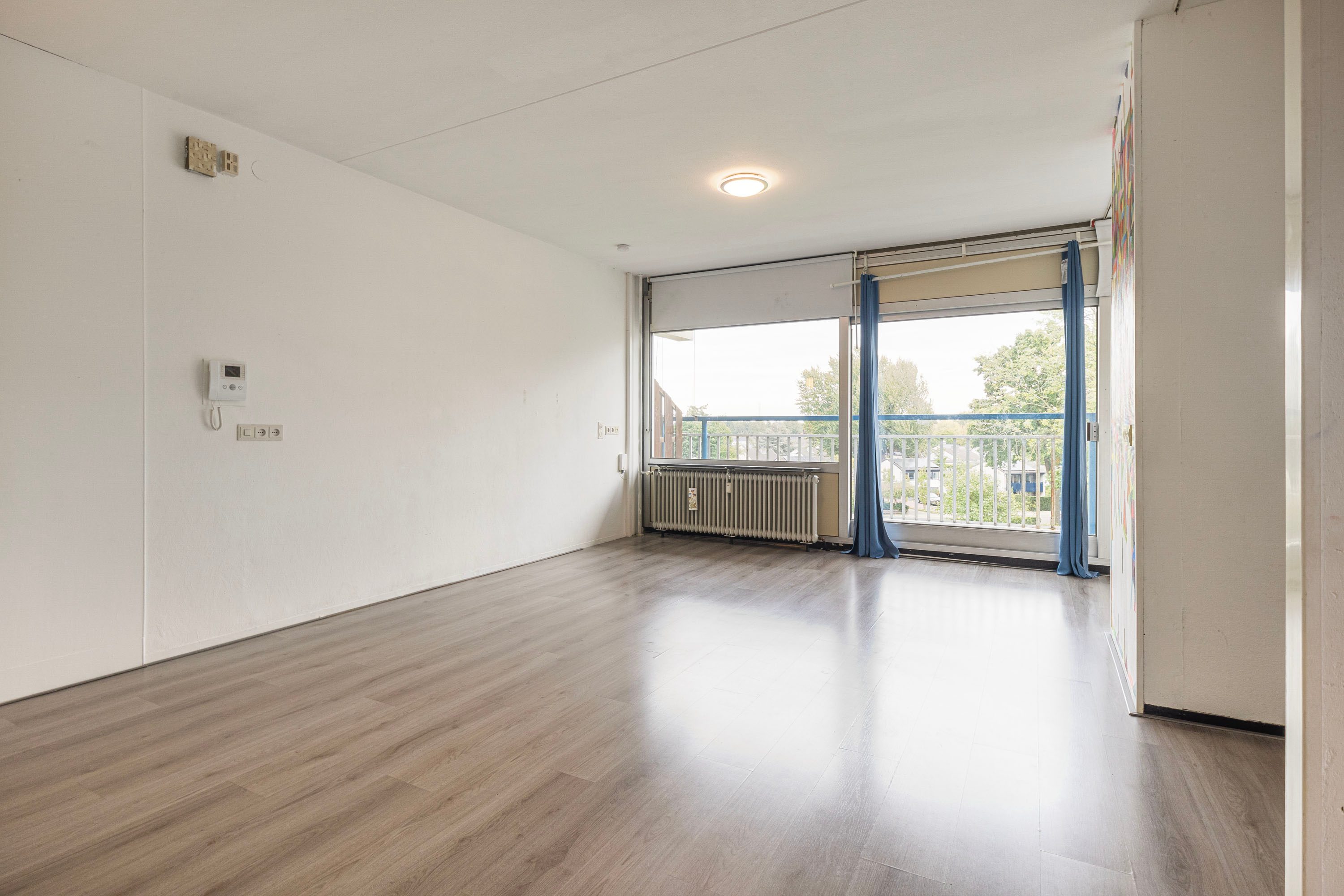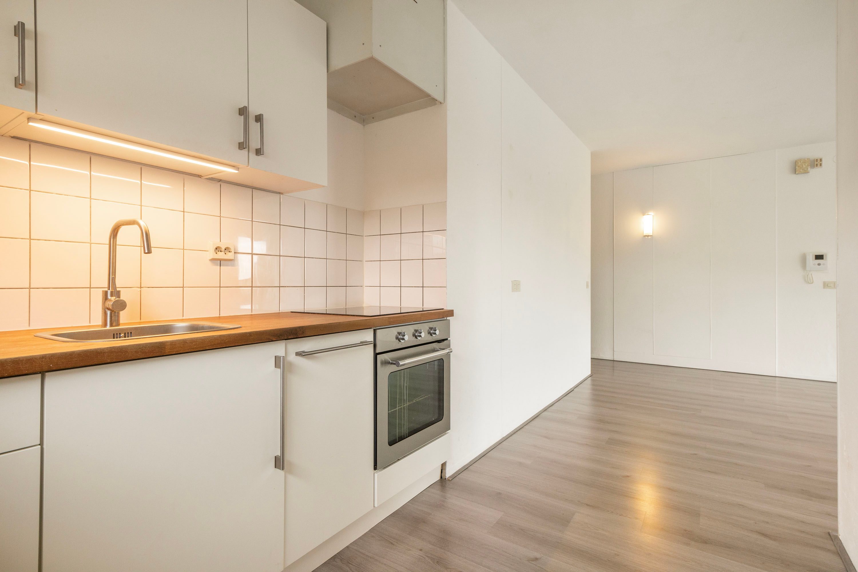Het appartement is toegankelijk via een entree met hal, die leidt naar een ruime woonkamer en toegang biedt naar de badkamer. Bij binnenkomst in de woonkamer valt direct het fijne lichtinval en het uitzicht op, heerlijk groen en vrij. De woonkamer is voorzien van een nette laminaatvloer uit 2020. Vanuit de woonkamer beschik je over toegang naar het balkon, welke zich uitstrekt over de gehele breedte van het appartement en met een ligging op het oosten kan je hier genieten van het buitenleven. De open keuken beschikt over een keuken in rechte opstelling, uitgerust met inbouwapparatuur zoals een kookplaat, oven en vaatwasser. De keuken is in 2023 vernieuwd en door de hoekligging van het appartement beschik je hier over een extra raam.