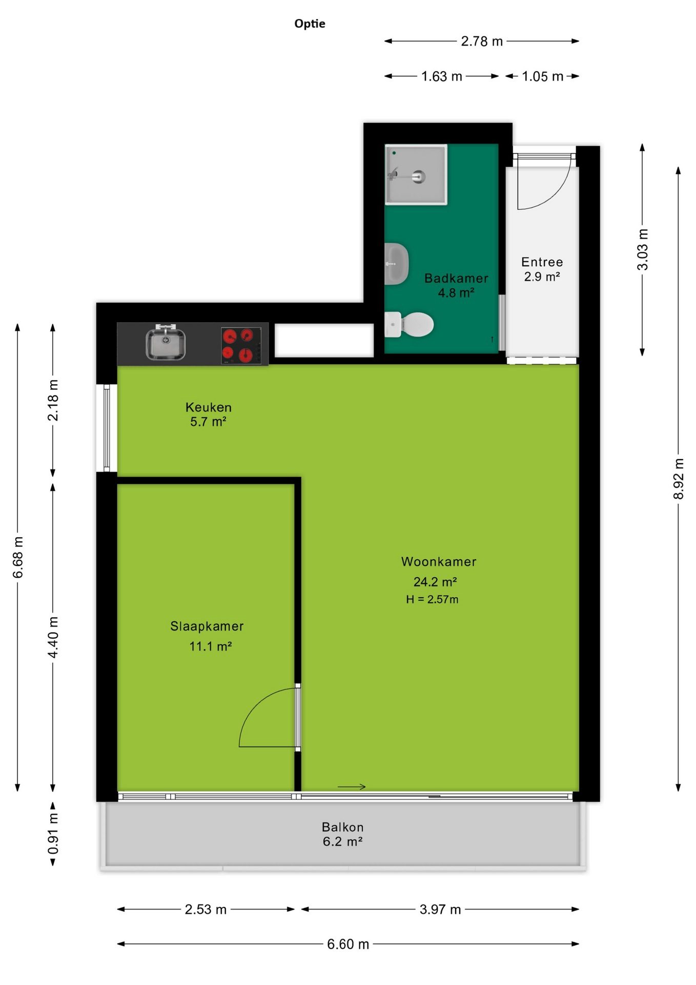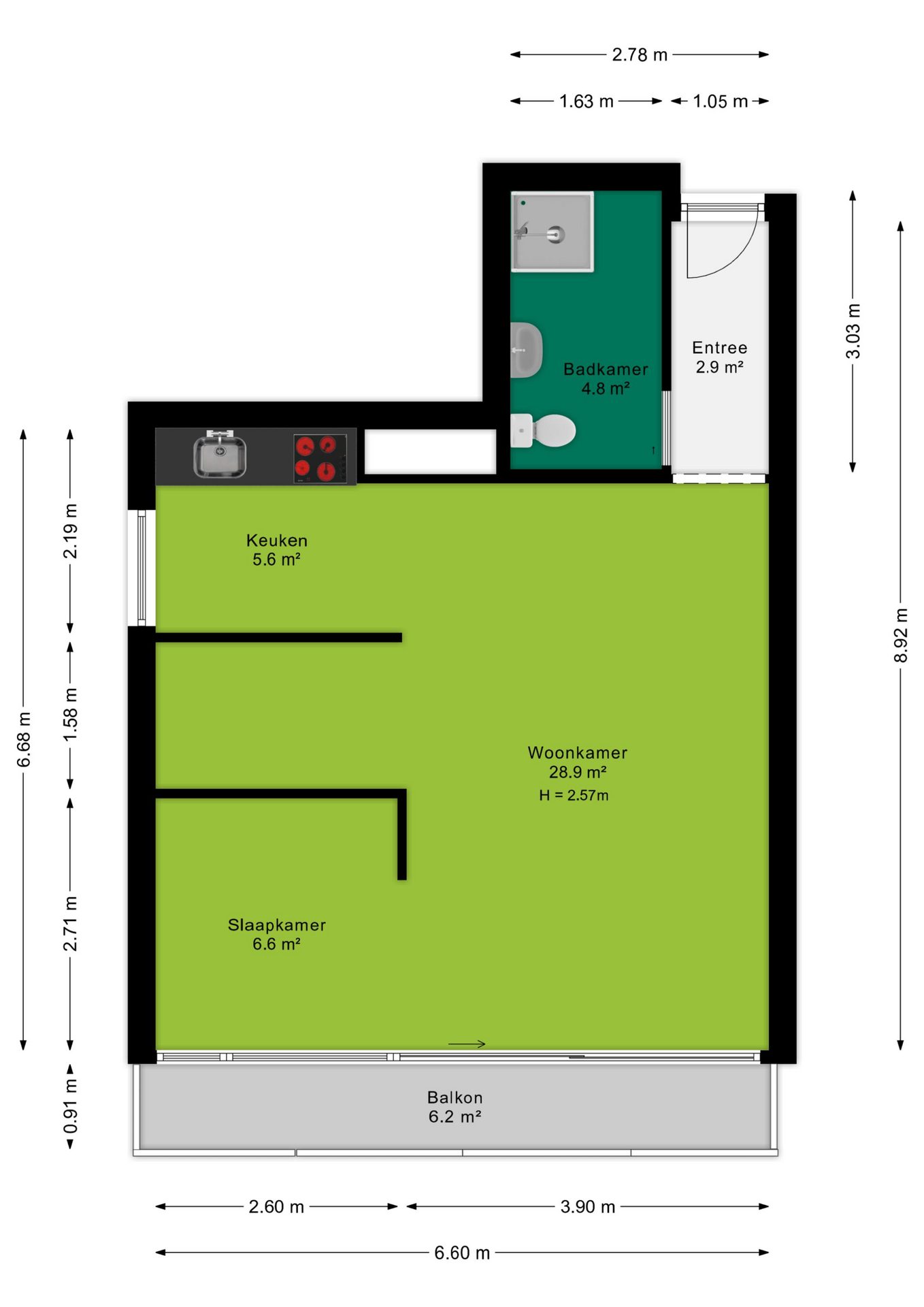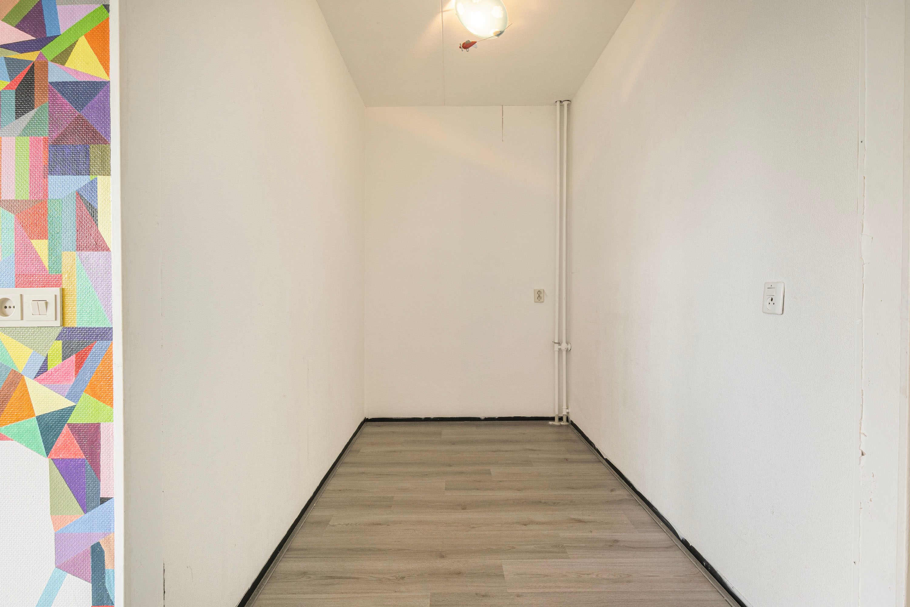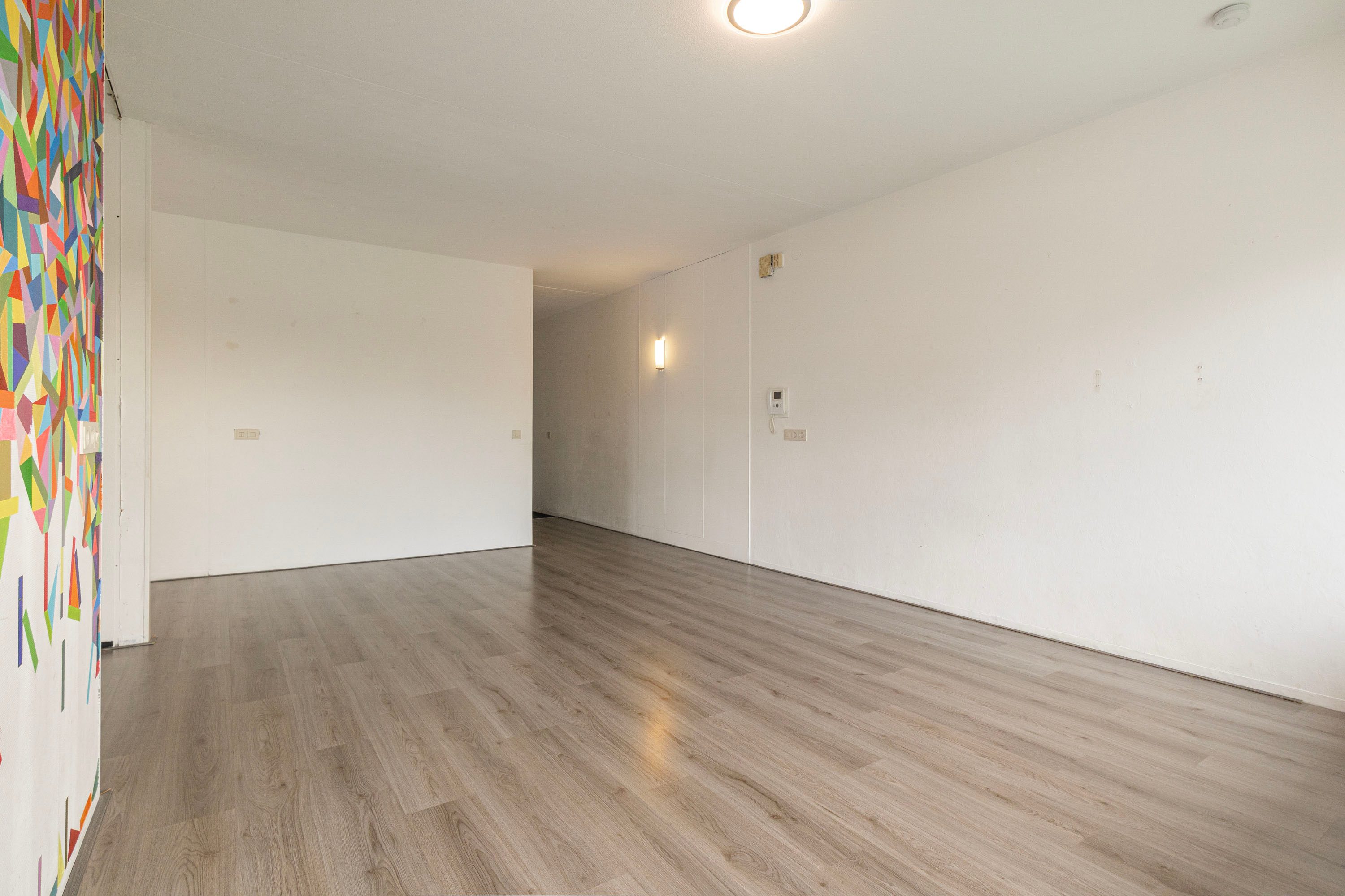 Het appartement is toegankelijk via een entree met hal, die leidt naar een ruime woonkamer en toegang biedt naar de badkamer. Bij binnenkomst in de woonkamer valt direct het fijne lichtinval en het uitzicht op, heerlijk groen en vrij. De woonkamer is voorzien van een nette laminaatvloer uit 2020. Vanuit de woonkamer beschik je over toegang naar het balkon, welke zich uitstrekt over de gehele breedte van het appartement en met een ligging op het oosten kan je hier genieten van het buitenleven. De open keuken beschikt over een keuken in rechte opstelling, uitgerust met inbouwapparatuur zoals een kookplaat, oven en vaatwasser. De keuken is in 2023 vernieuwd en door de hoekligging van het appartement beschik je hier over een extra raam.
