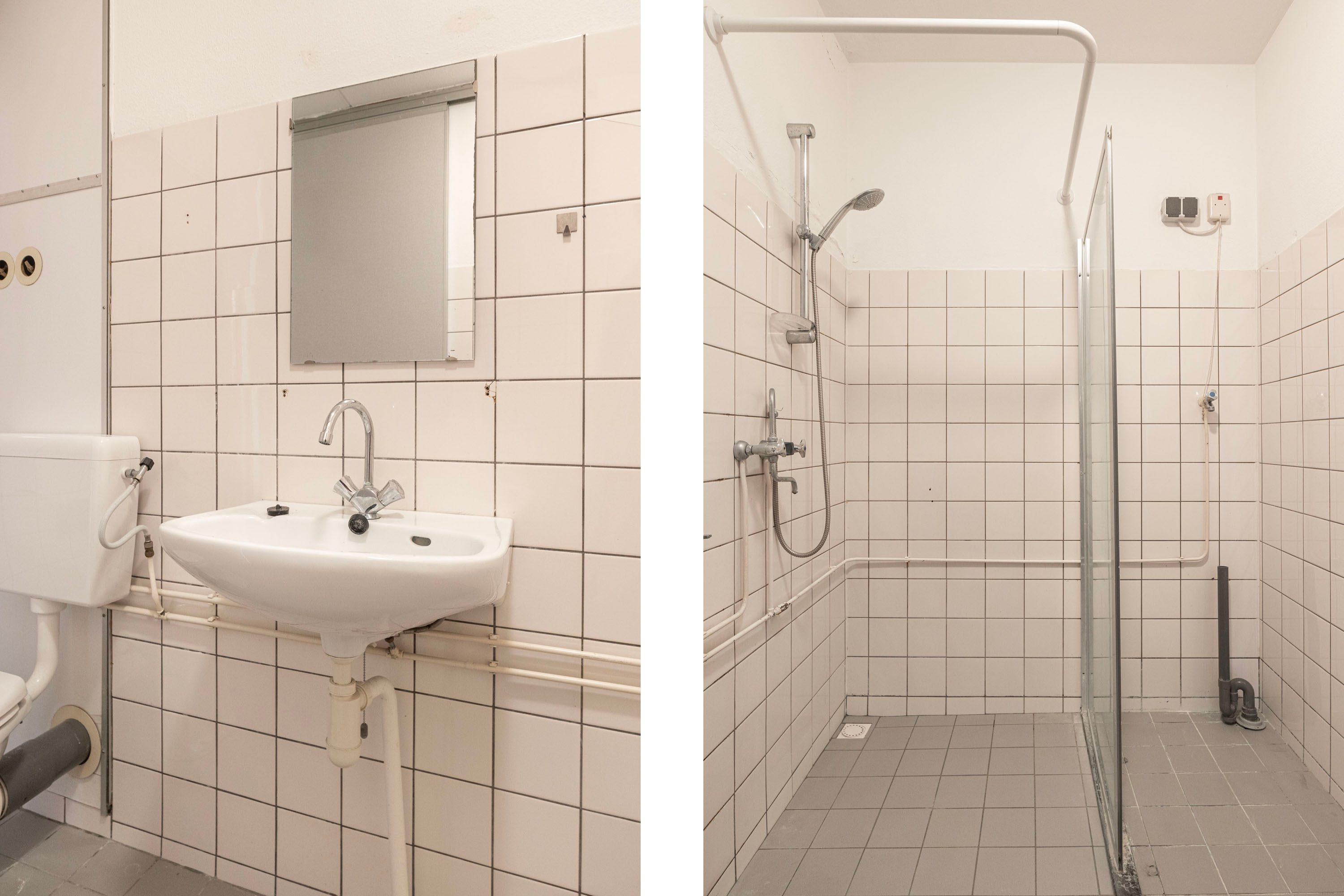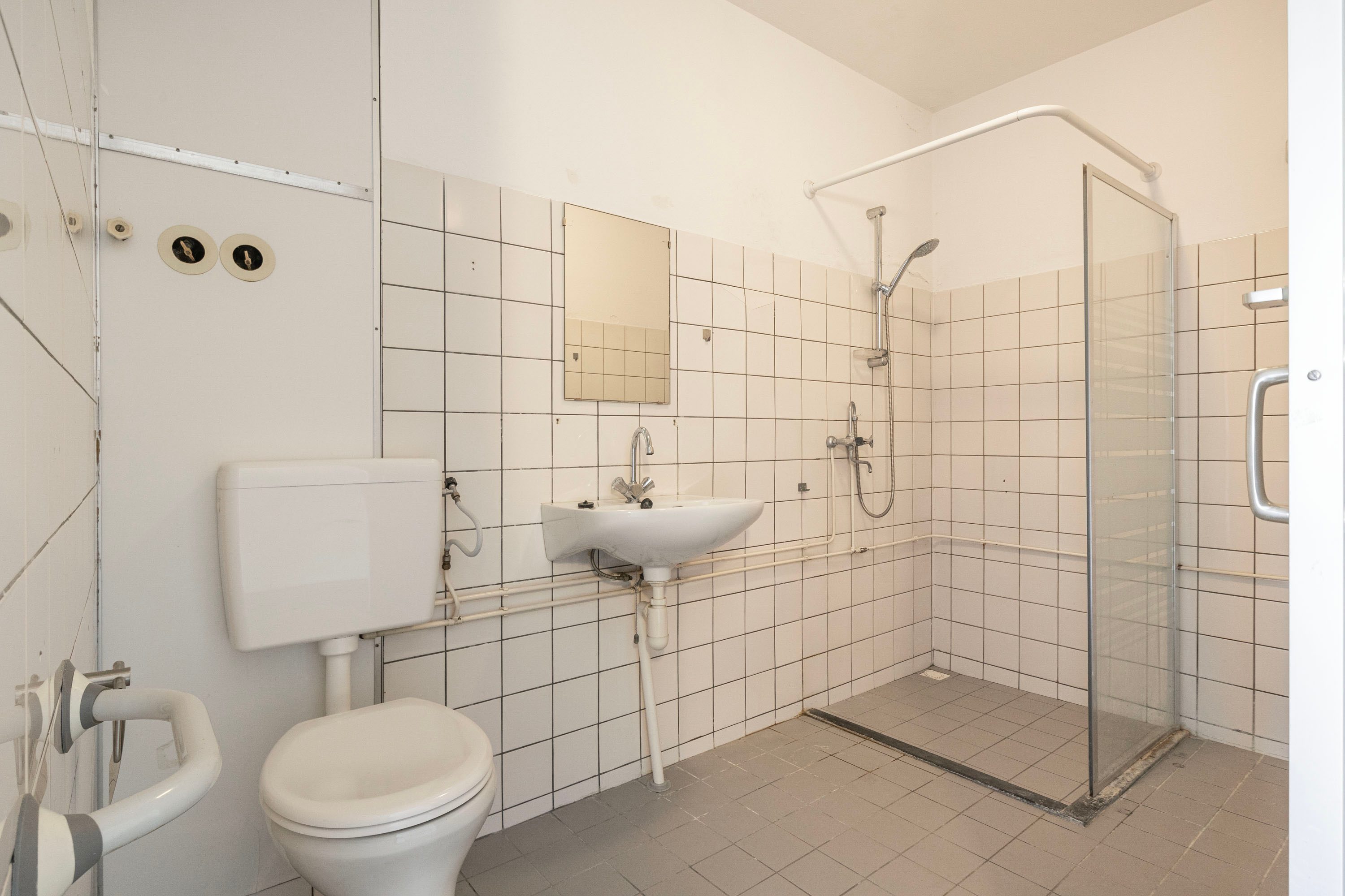 De badkamer heeft een inloopdouche, wastafel, toilet en beschikt over de aansluiting voor witgoedapparatuur.