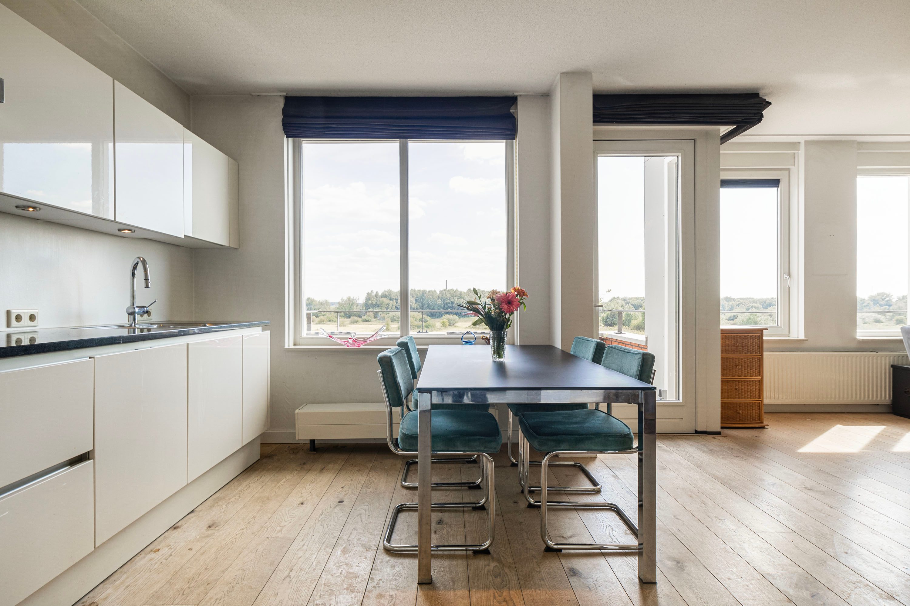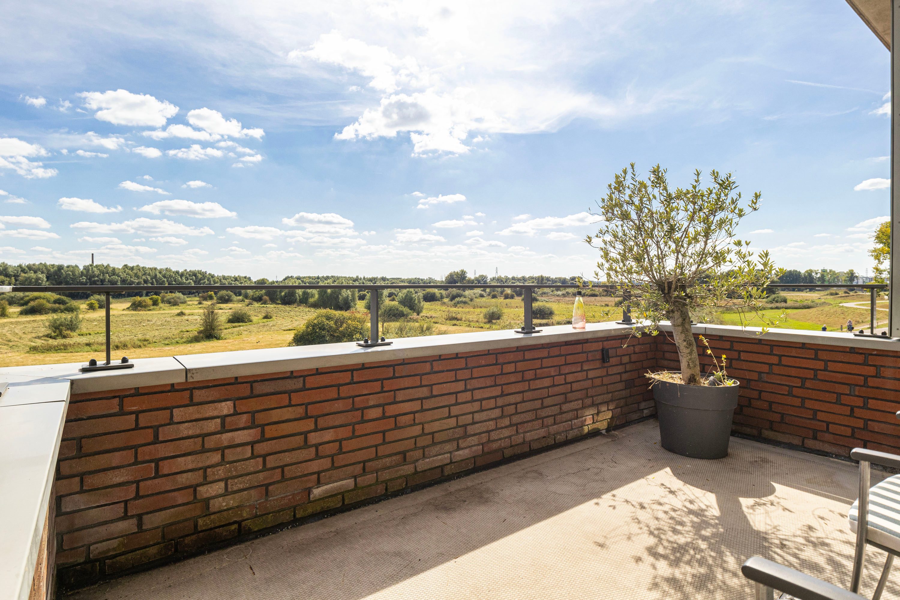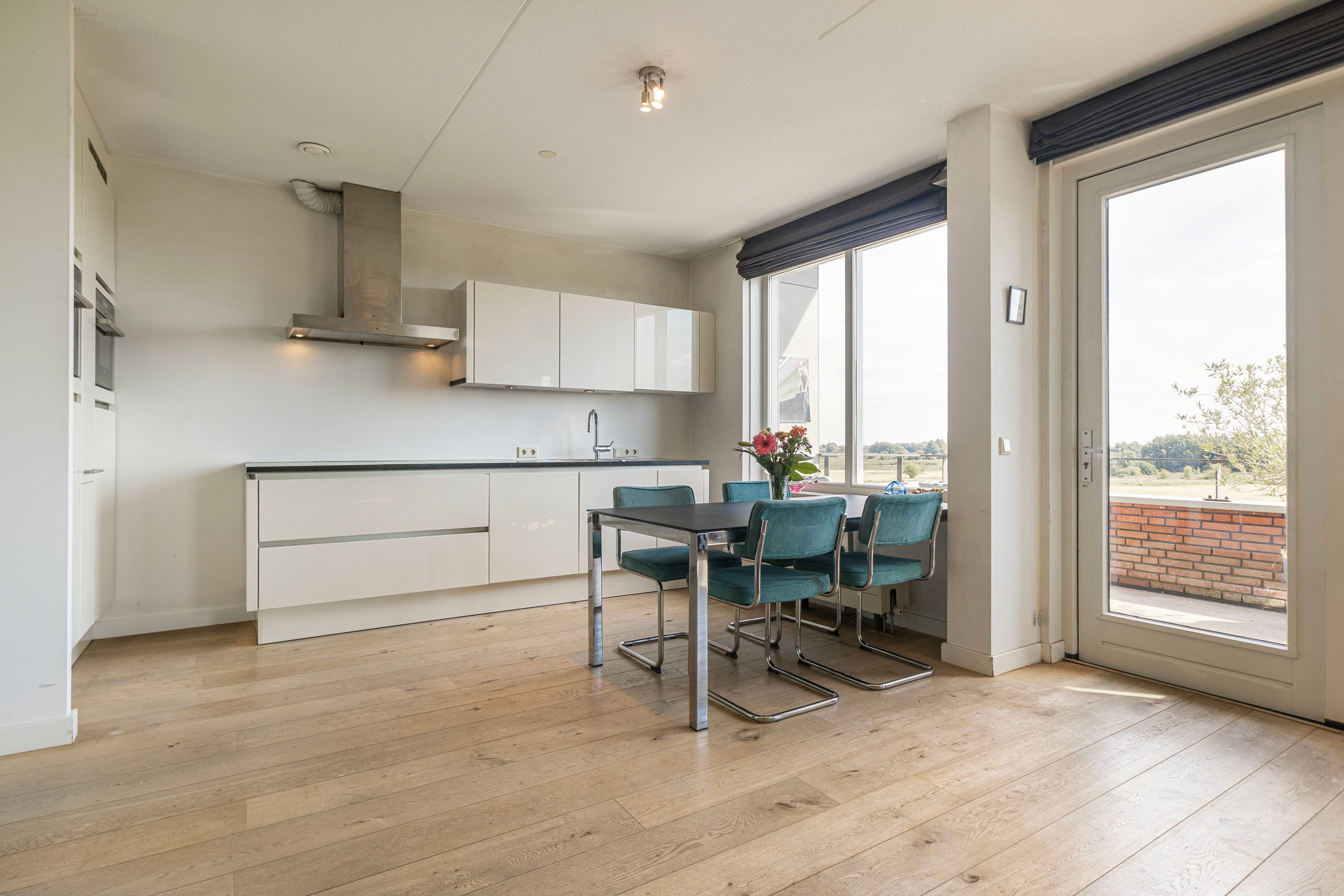 Het balkon van 9 m² op het zuiden biedt een prachtig uitzicht op de Rijn en de Grebbedijk. Hier kun je de hele dag genieten van de zon.
