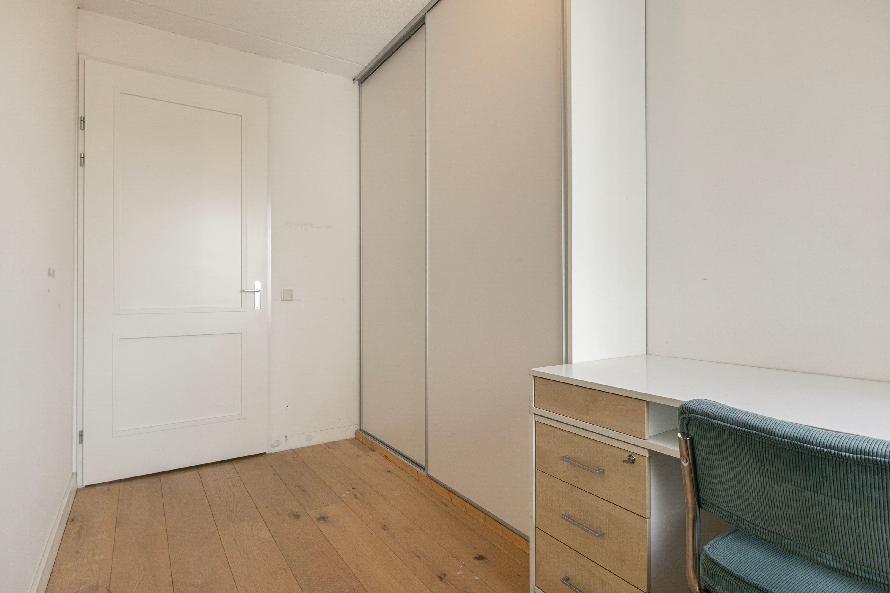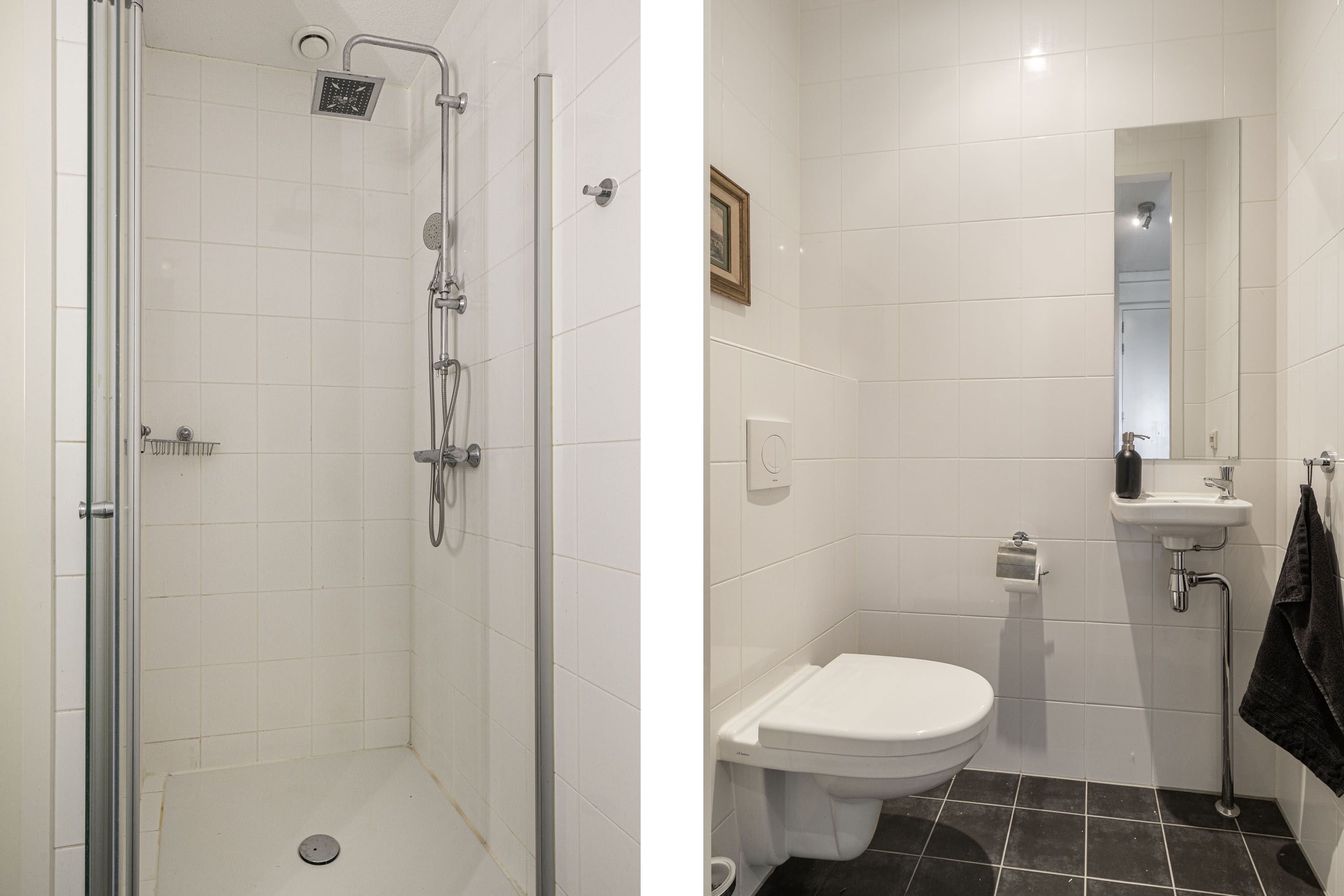 Verder zijn er twee slaapkamers van circa 11 m² en 7 m², beide voorzien van vaste kastenwanden. De badkamer is compleet ingericht met een ligbad, douche, toilet en wastafel. De interne berging biedt plek voor de cv-ketel (garantie hierop is nog aanwezig), de wasmachine en extra opslag.