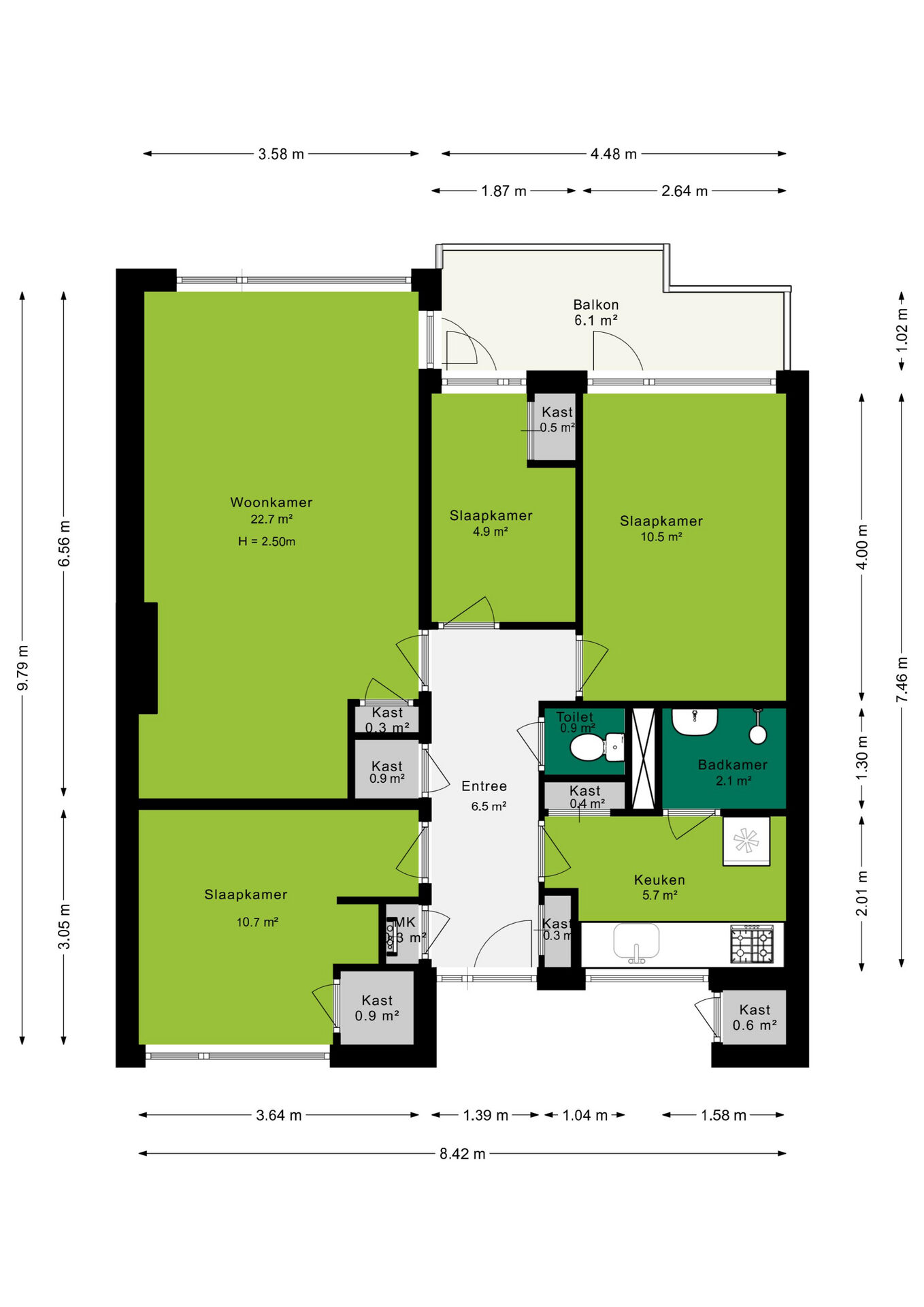 De wanden van het appartement zijn begin 2025 allemaal geschilderd. Aan de buitenzijde van het appartement bevindt zich een kast met mogelijkheid tot het aansluiten van de wasmachine alsmede de opstelplaats voor de CV ketel (2025).
